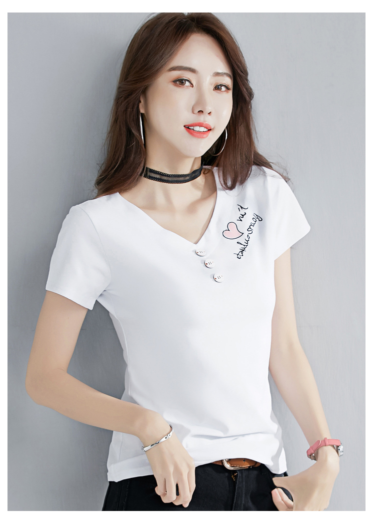 黑色t恤女短袖修身純棉2019新款夏裝韓范百搭V領半袖體恤上衣潮