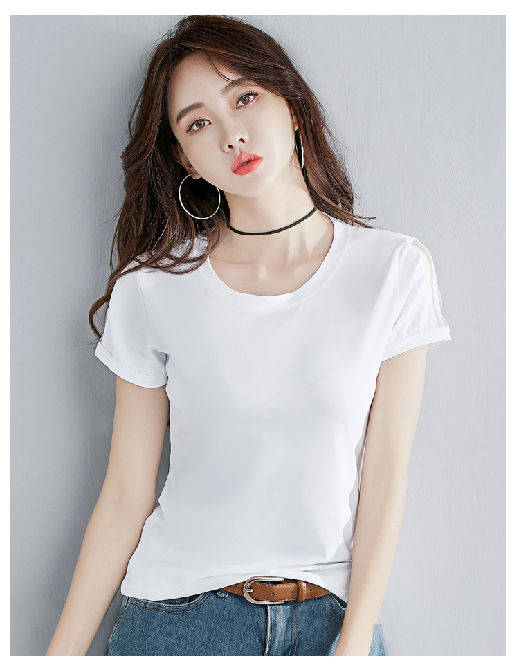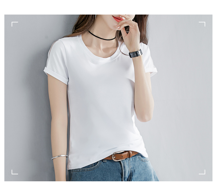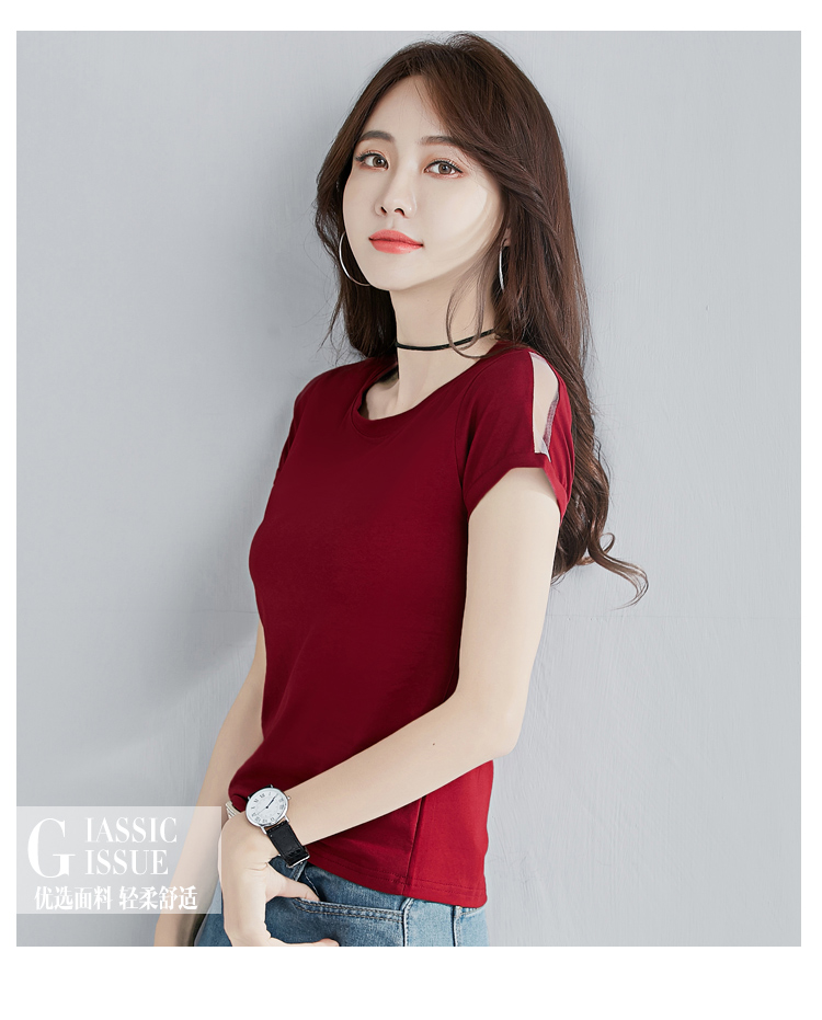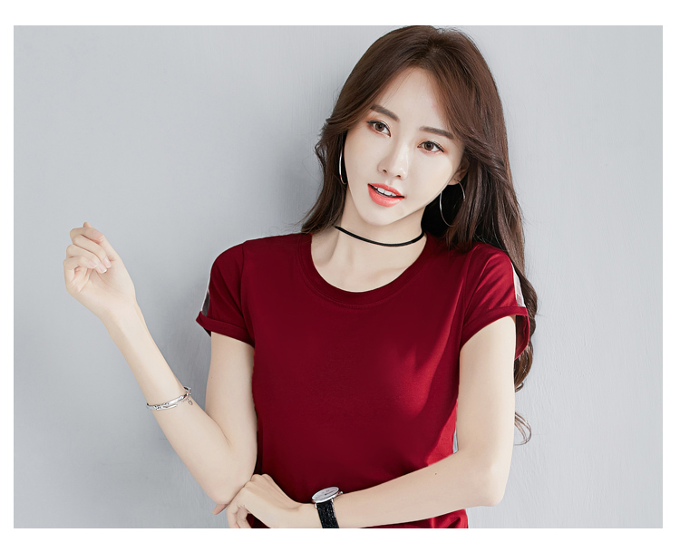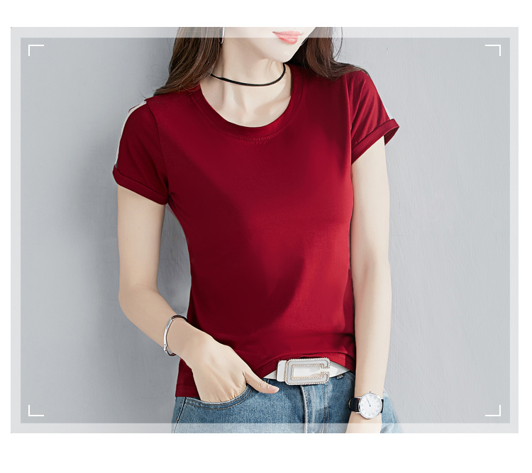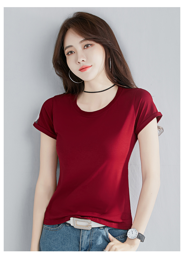 2019夏裝新款韓版純棉t恤女短袖修身紅色圓領純色體恤半袖上衣潮
