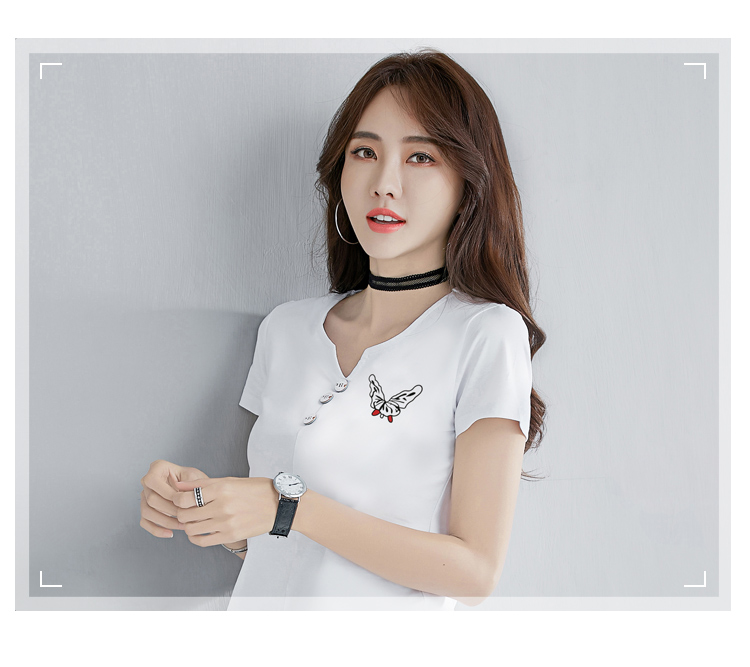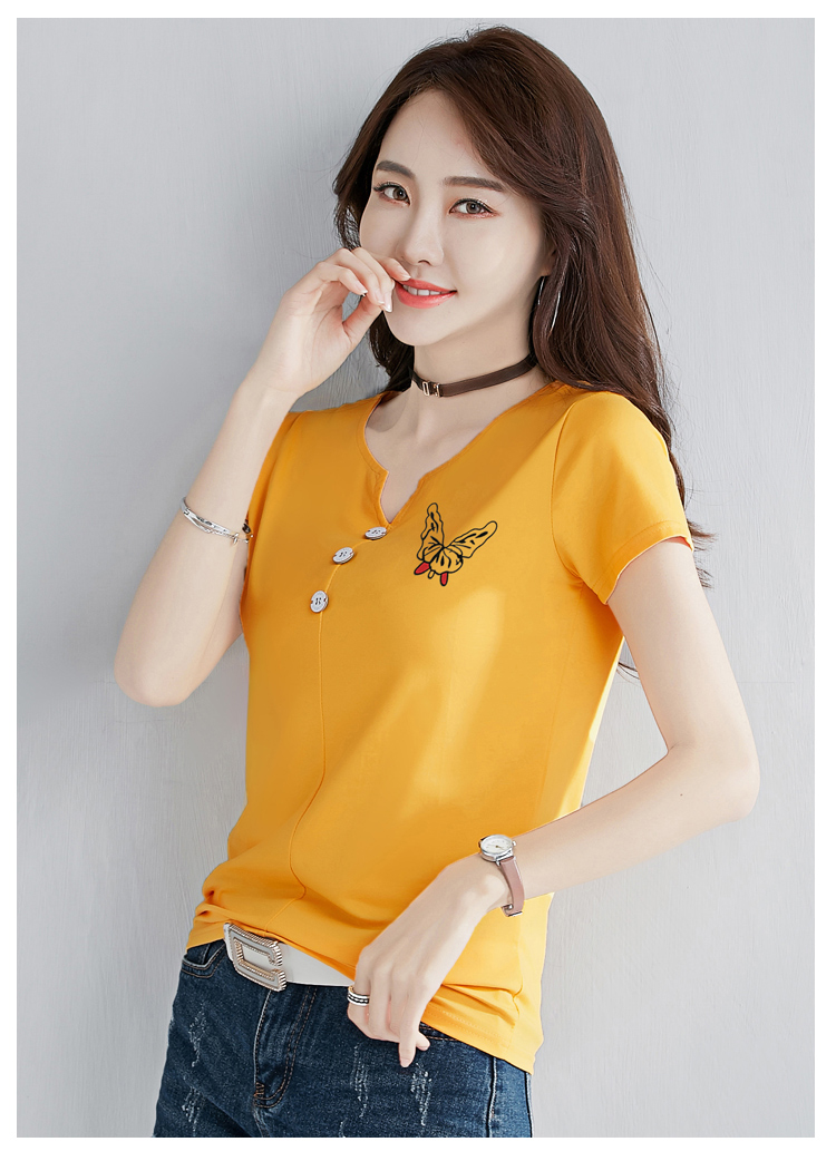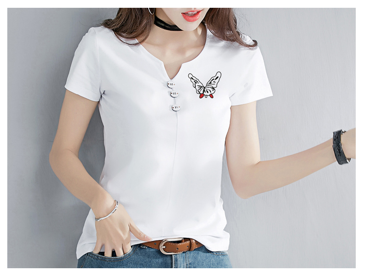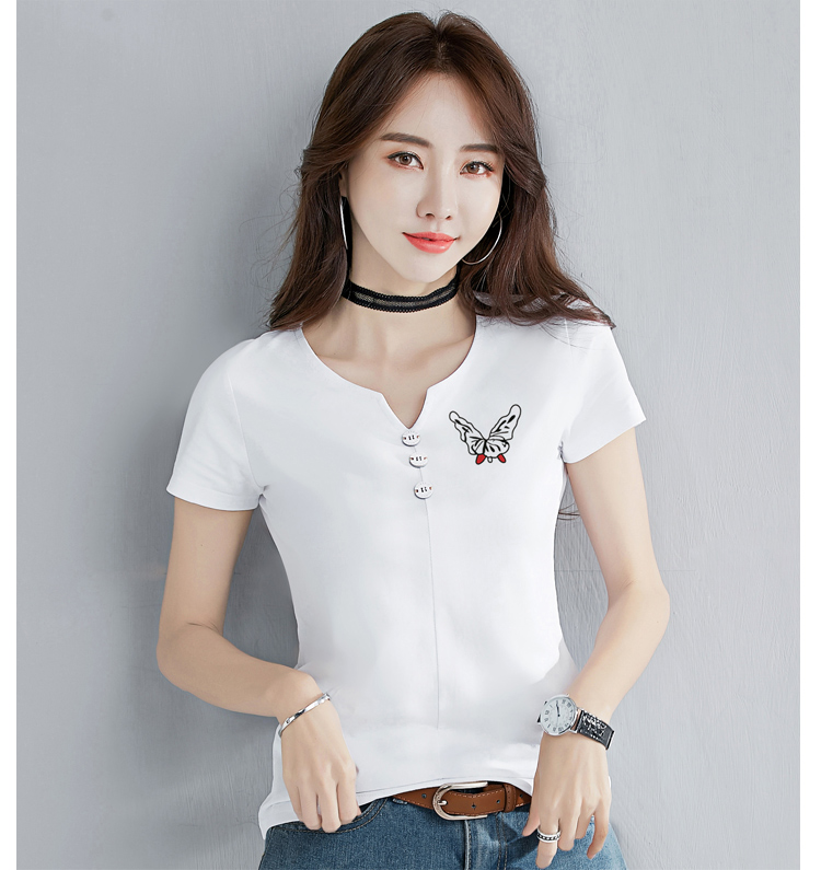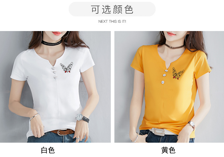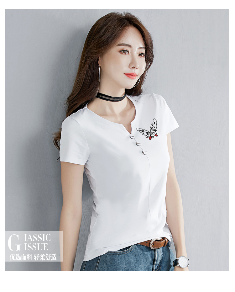 2019新款V領短袖t恤女修身顯瘦白色夏裝半袖韓范純棉上衣體恤潮