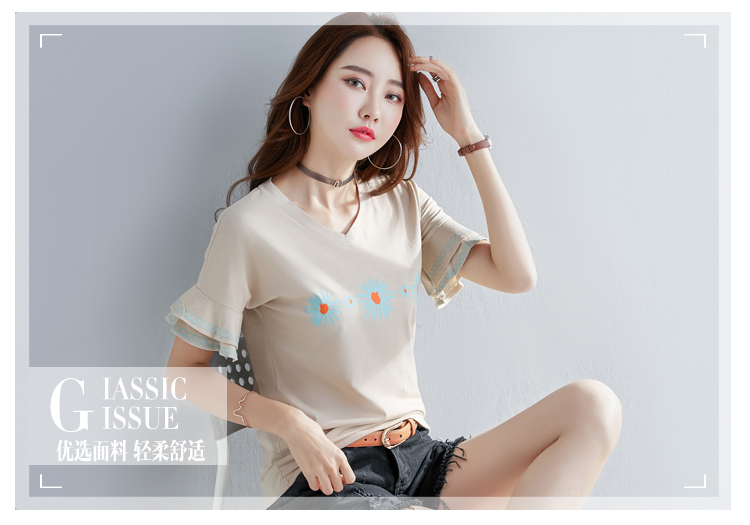 飛飛袖上衣服純棉白色T恤女短袖夏裝2019新款寬松女裝體恤ins潮