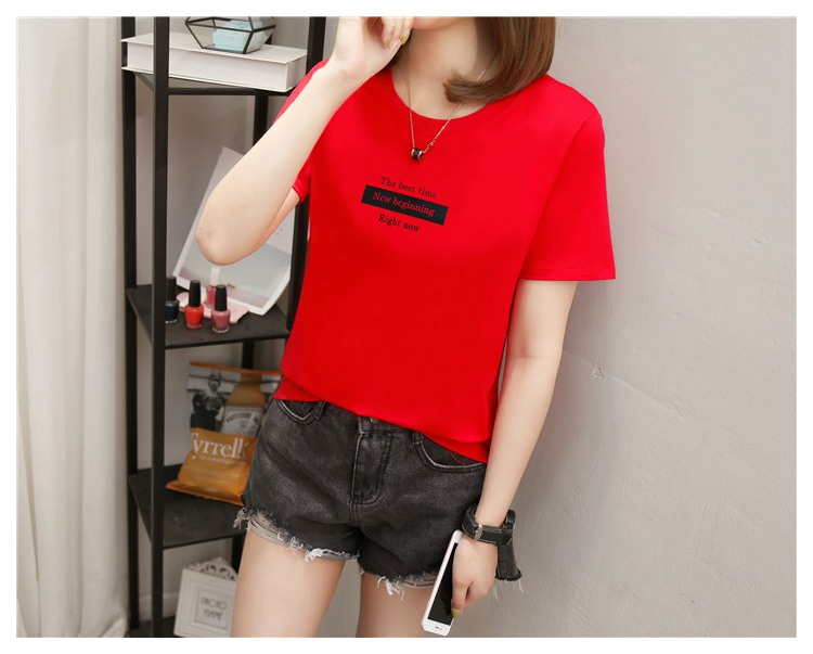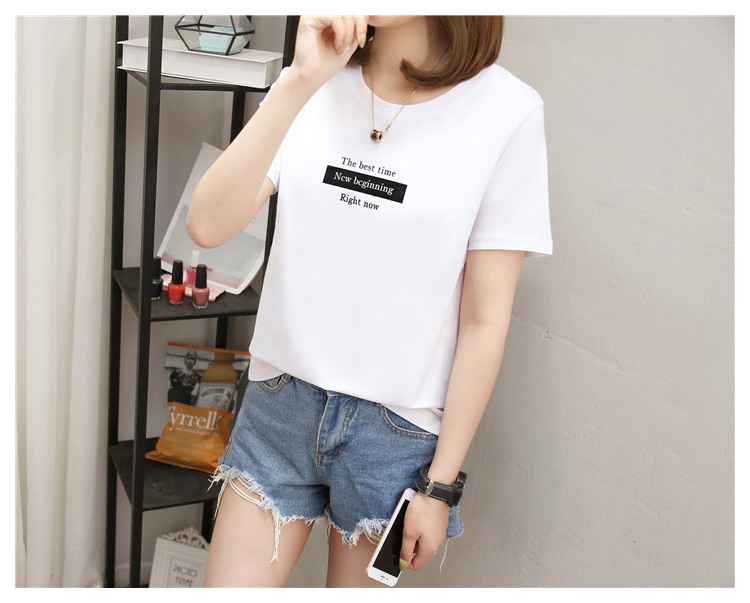 [2]純棉t恤女短袖寬松2019新款韓版百搭韓范學生白色字母半袖上衣