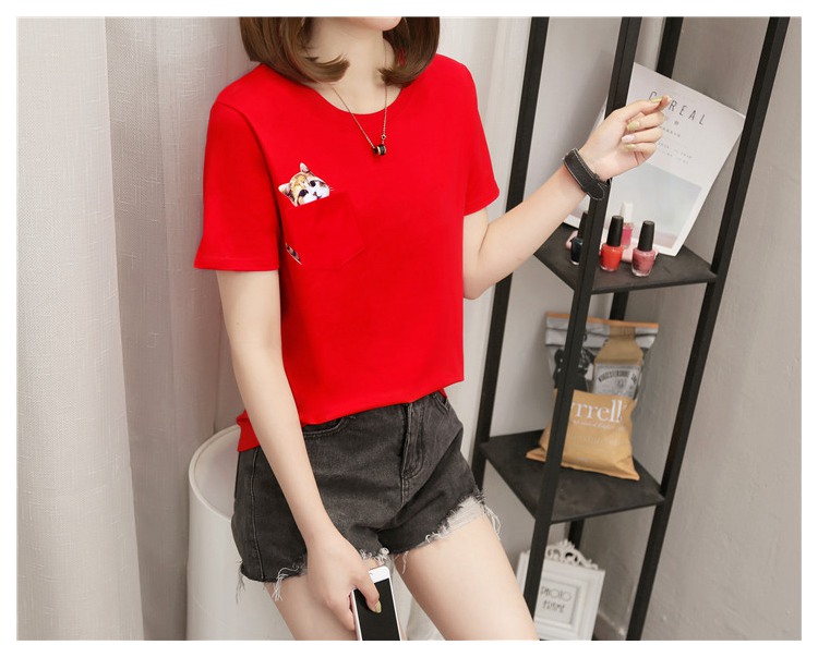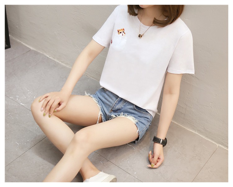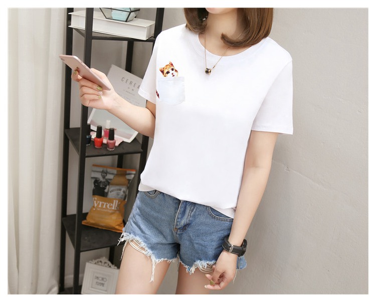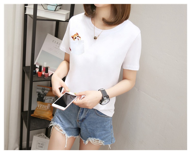 [2]純棉t恤女短袖寬松韓版百搭2019新款韓范學生白色口袋半袖上衣