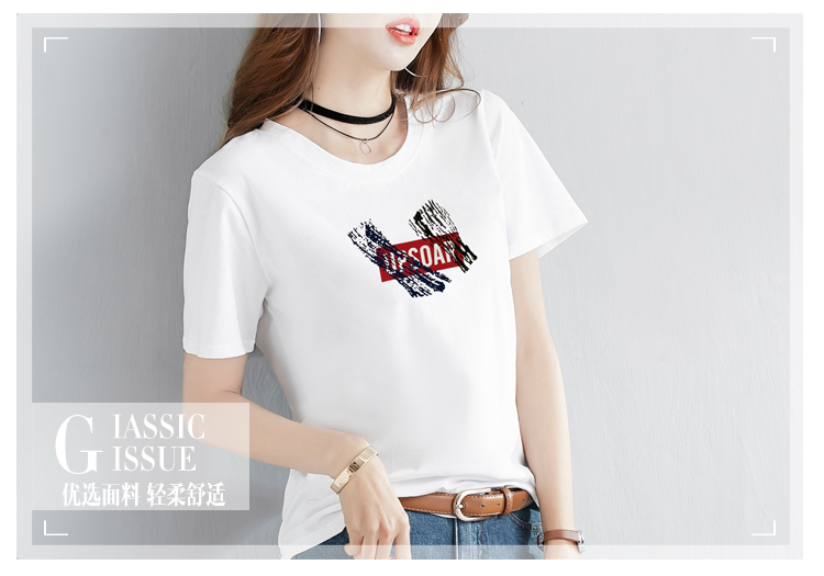 2019夏裝新款韓版體恤休閑打底純棉寬松字母印花短袖T恤女韓范