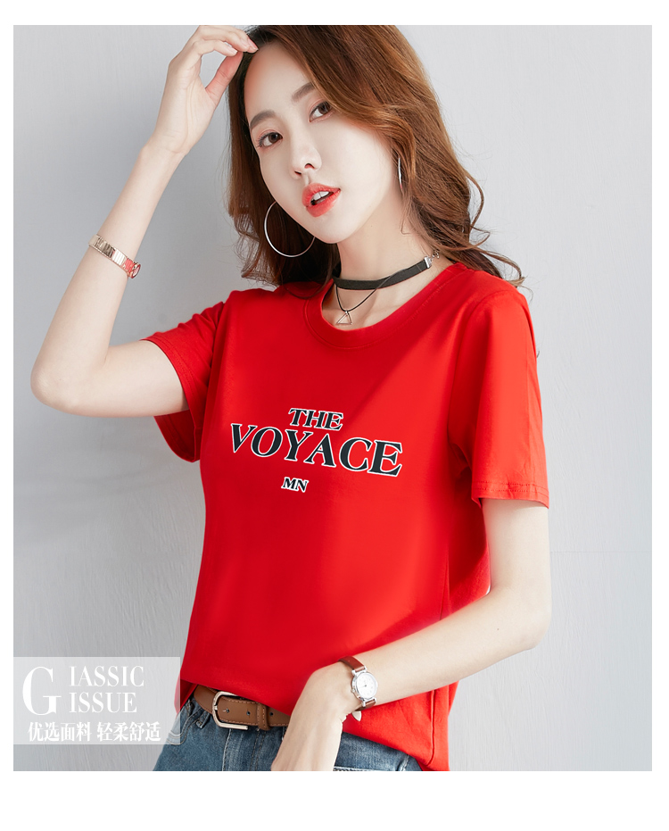 2019夏季新款韓版半袖體恤女字母韓范純棉寬松ins紅色t恤女短袖