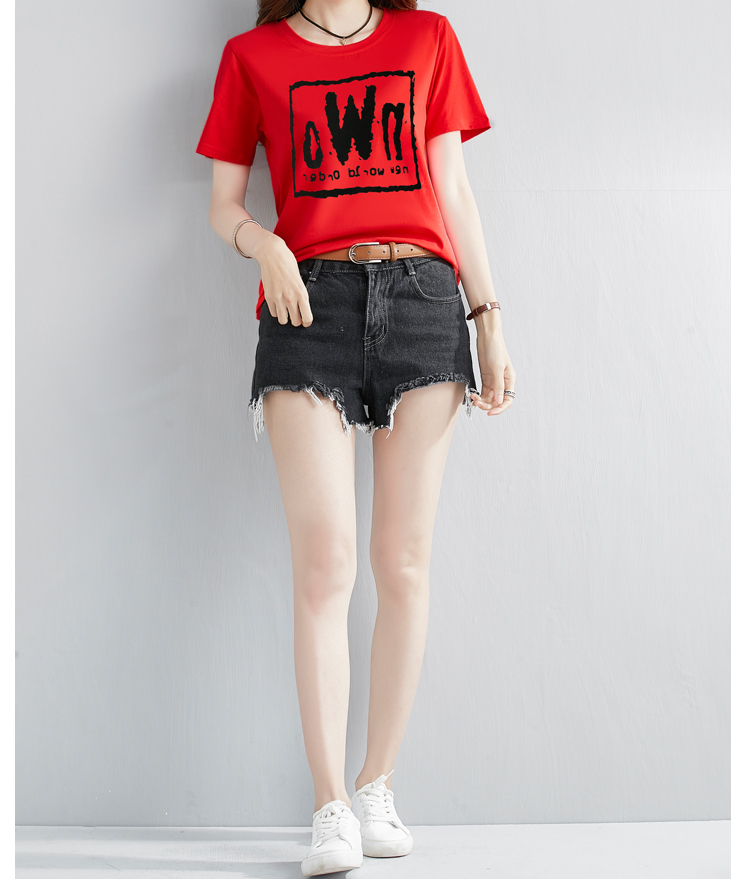 2019夏裝新款韓版半袖體恤上衣基礎純色純棉寬松字母T恤女短袖