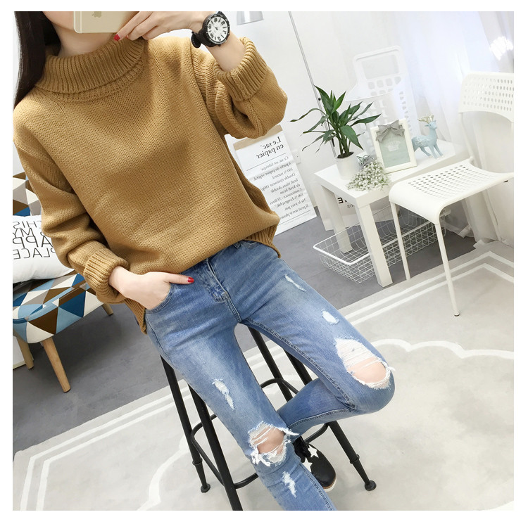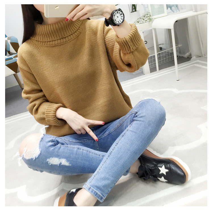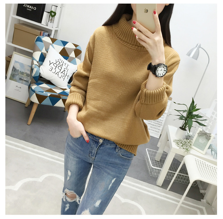 2019秋冬新款套頭毛衣女打底衫針織衫上衣韓版百搭寬松顯瘦高領潮