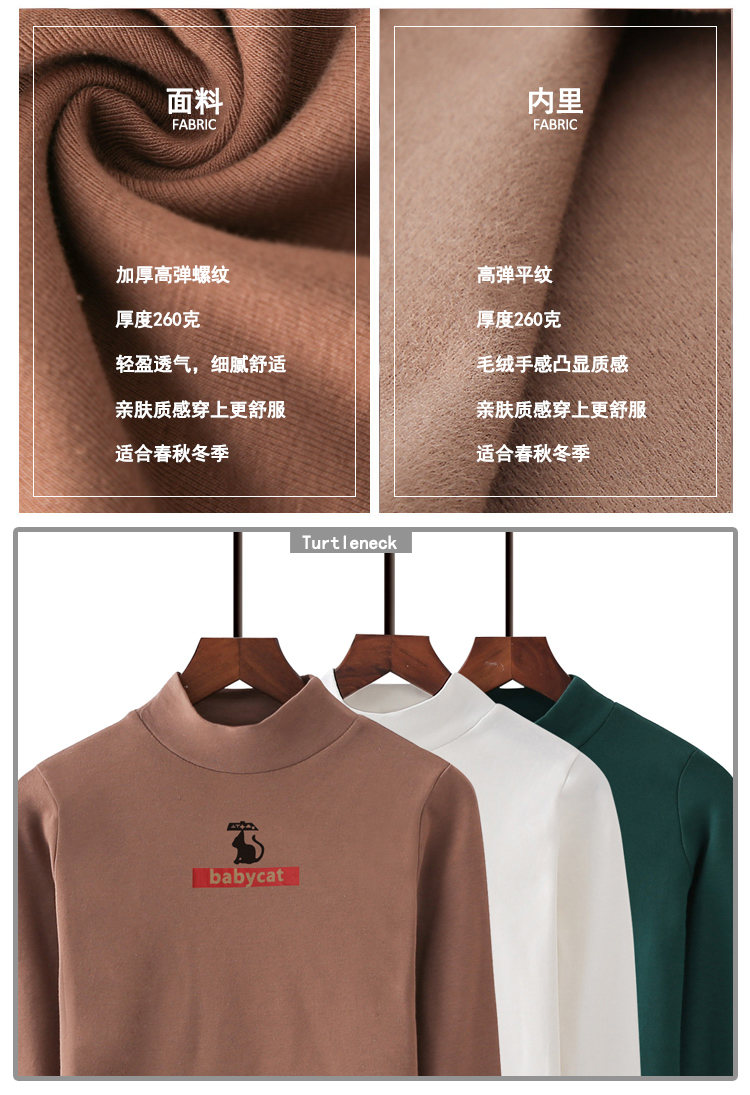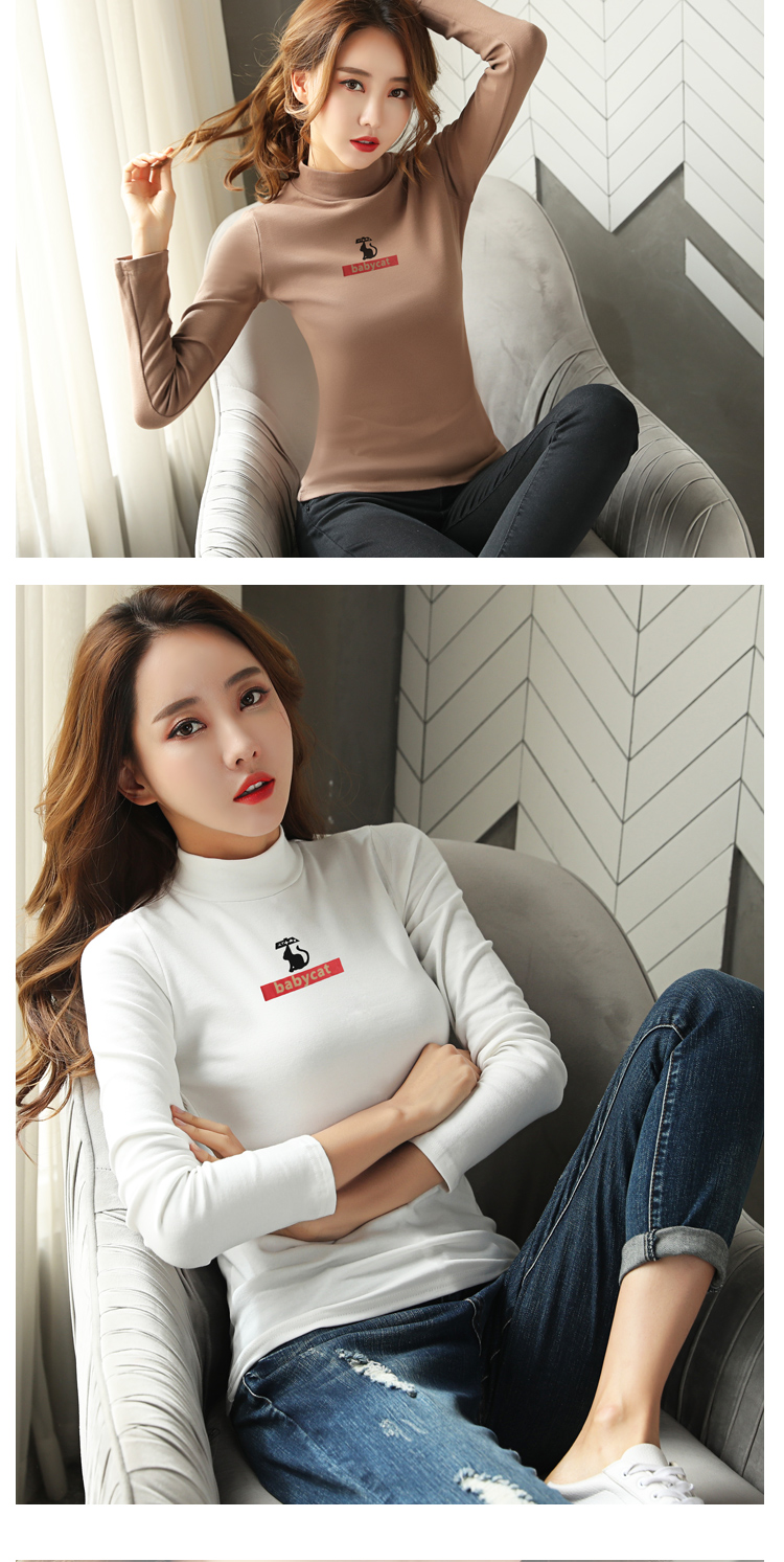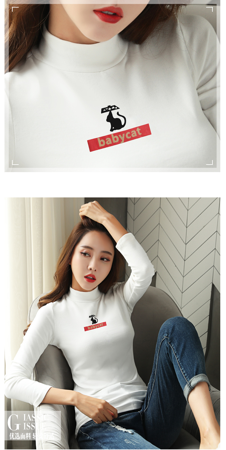 2019新款秋裝白色純棉高領長袖t恤女內搭韓版小衫修身顯瘦打底衫