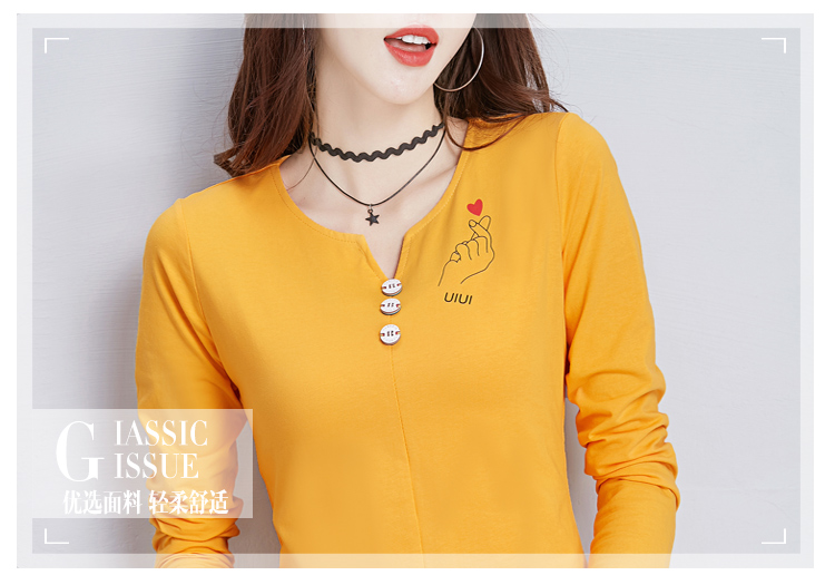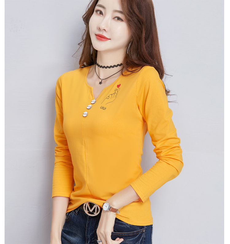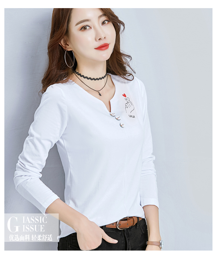 2019秋裝新款比心打底衫女V領純棉長袖t恤修身字母韓版百搭上衣女