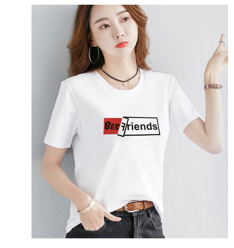 韓范寬松顯瘦t恤女短袖白色半袖夏季簡約字母體恤上衣大碼潮百搭