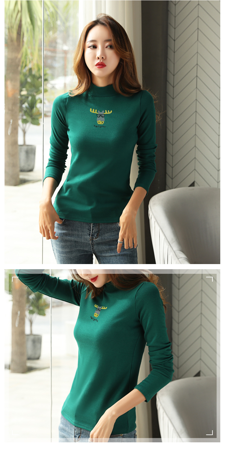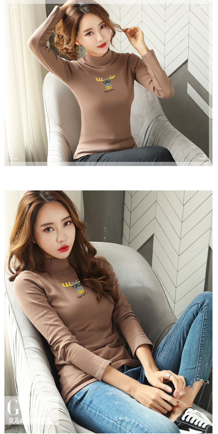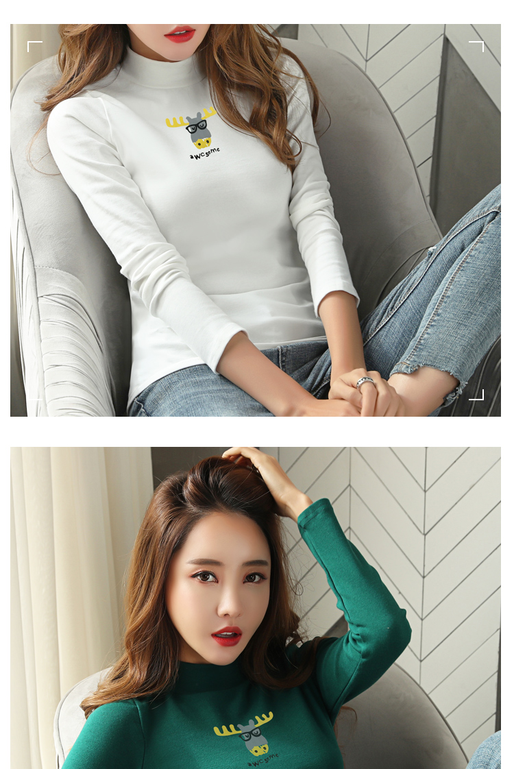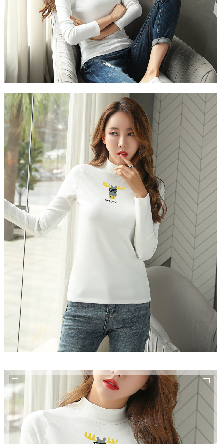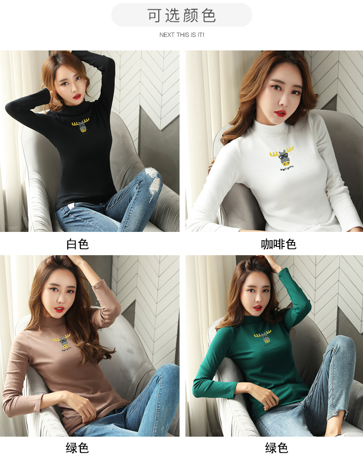 高領秋天上衣2019新款秋裝韓版百搭小衫純棉長袖t恤女內搭打底衫