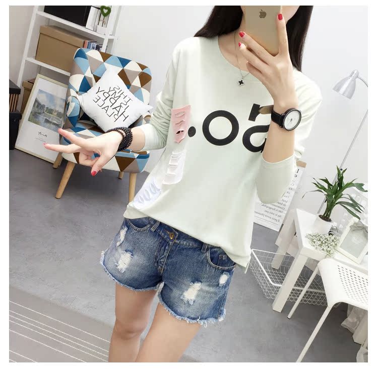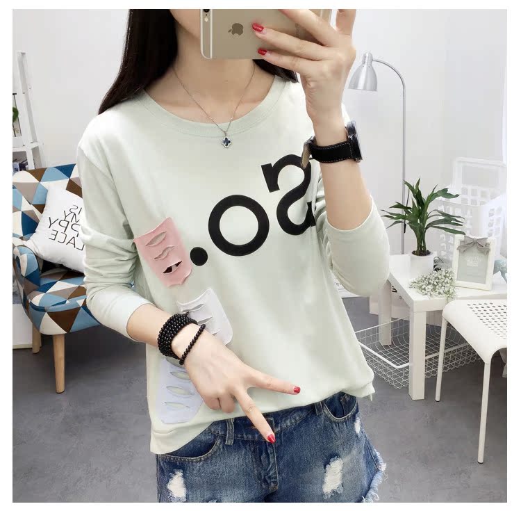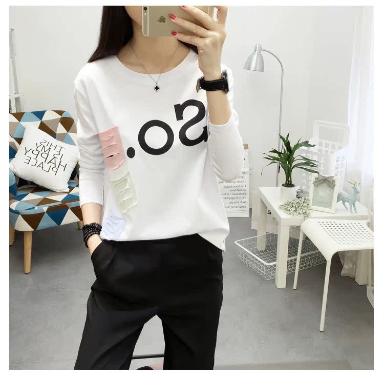長袖t恤女秋季秋裝韓國大碼顯瘦寬松學生韓版簡約軹打底衫上衣潮