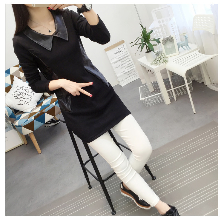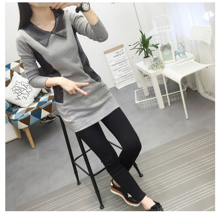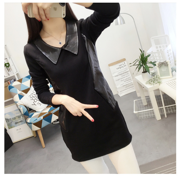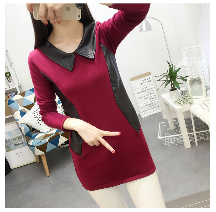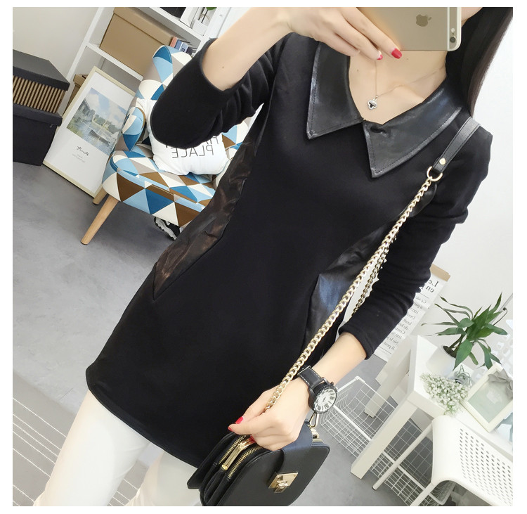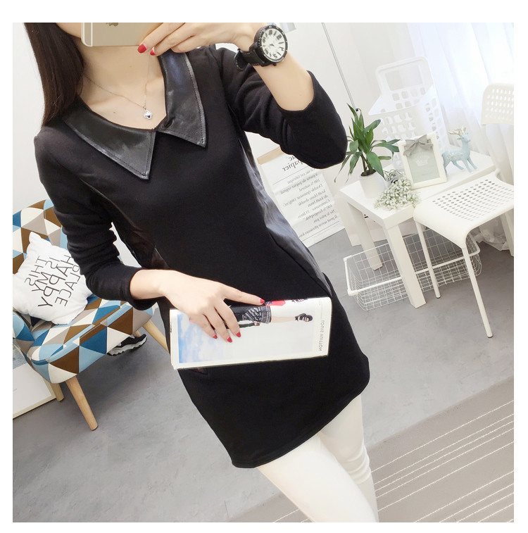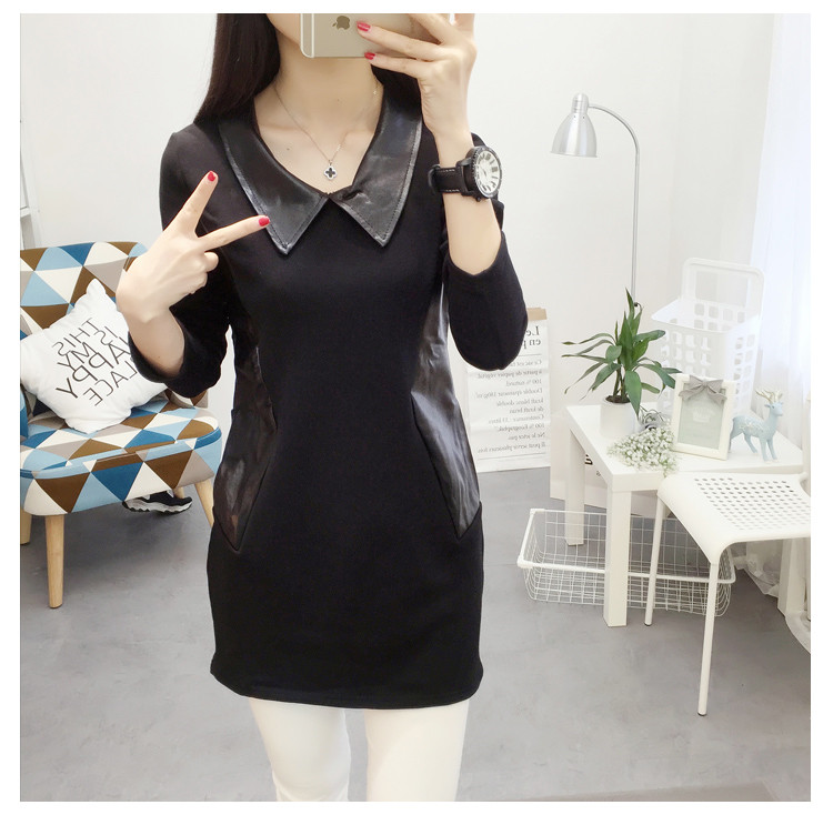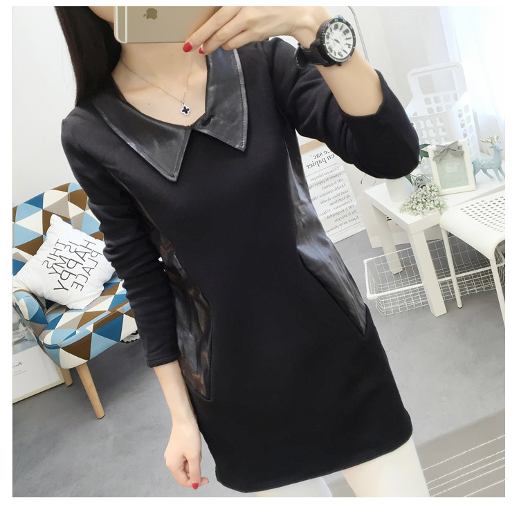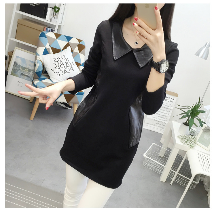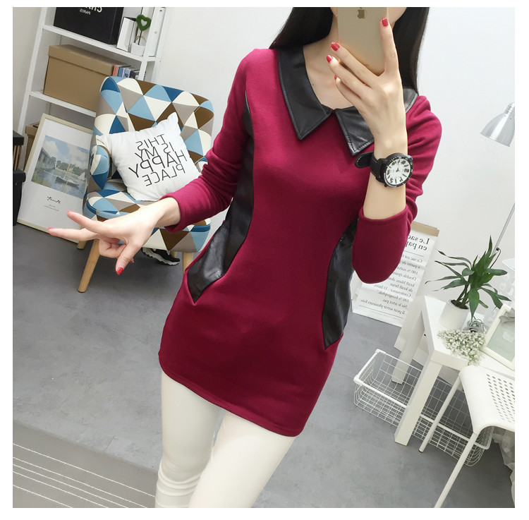 襯衫領打底衫女士長袖秋冬裝春裝新款保暖上衣服女加厚加絨中長款
