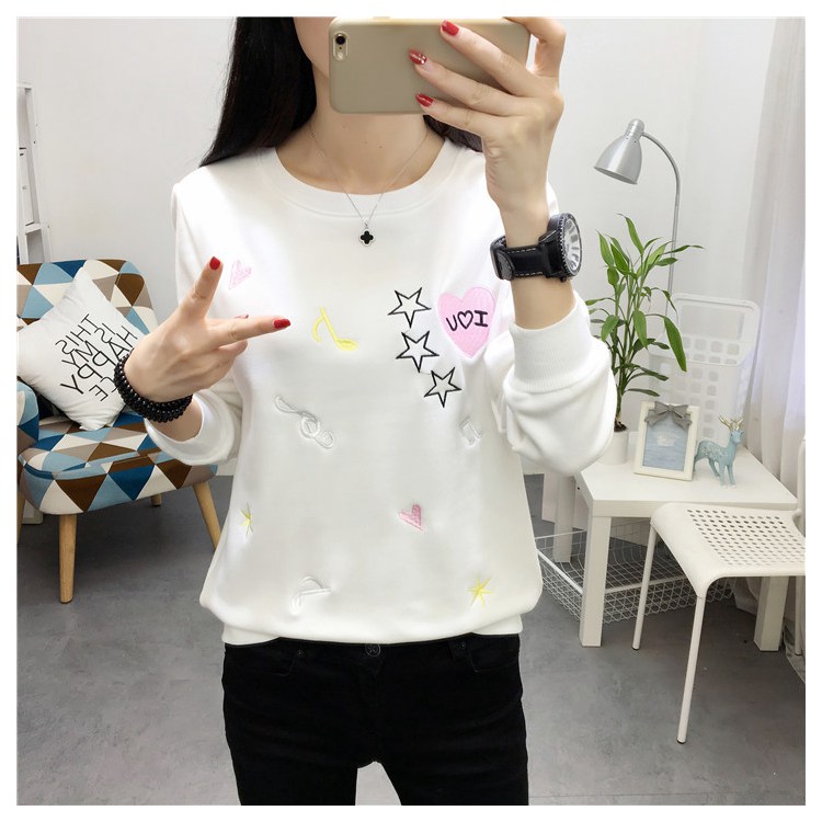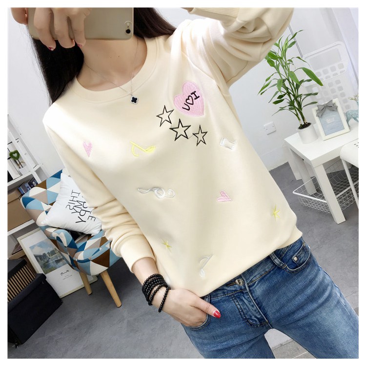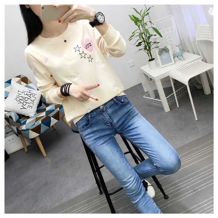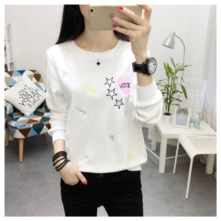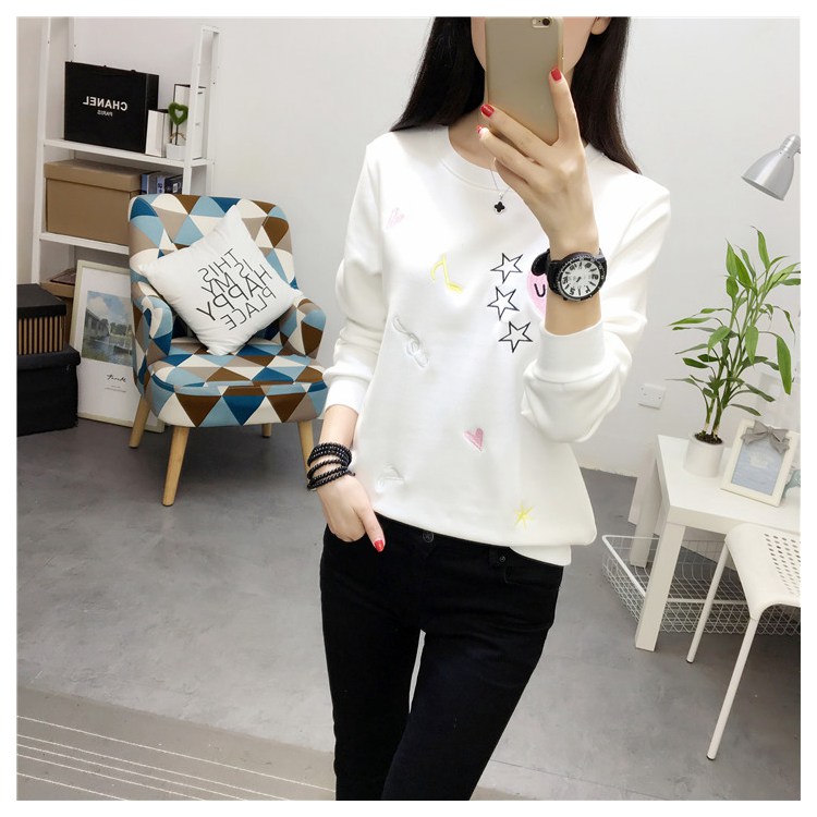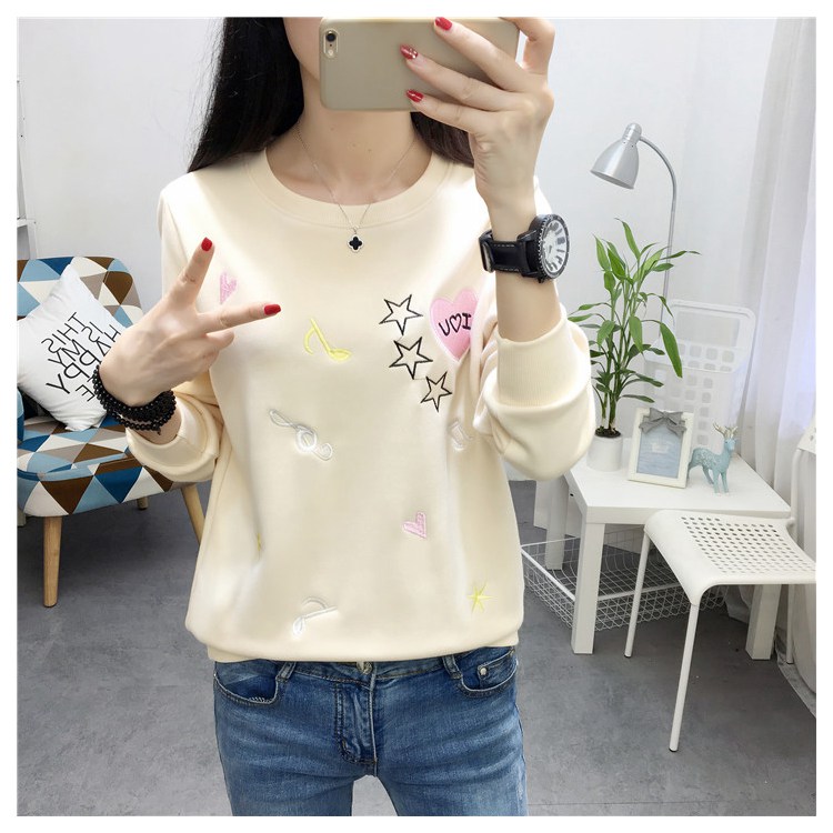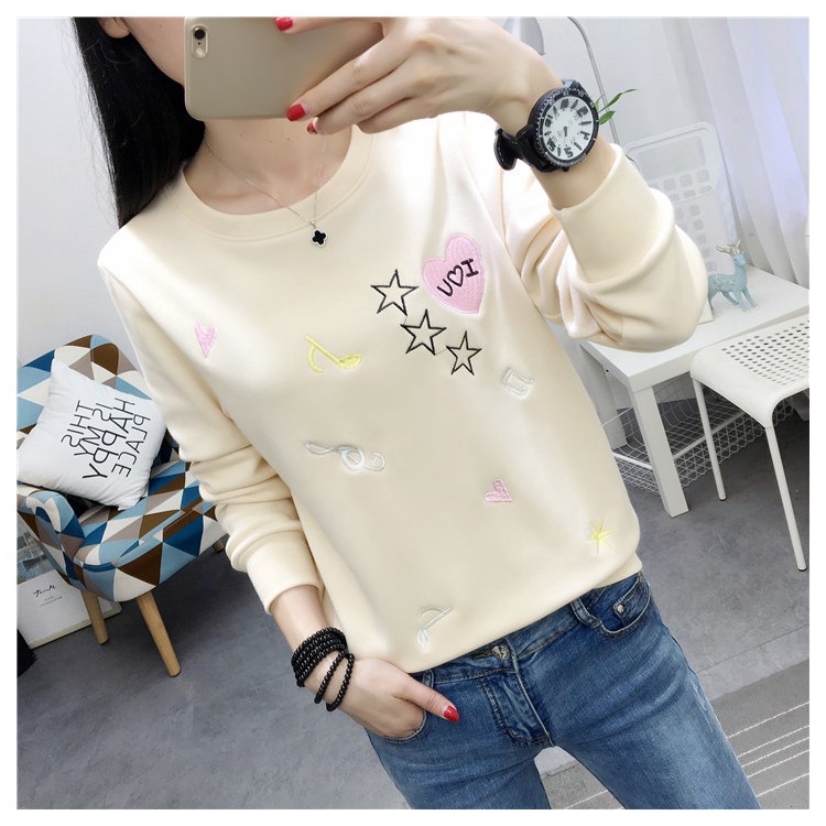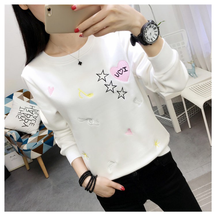 2019新款女裝春季套頭刺繡長袖打底衫韓版衛衣女秋冬加絨t恤上衣