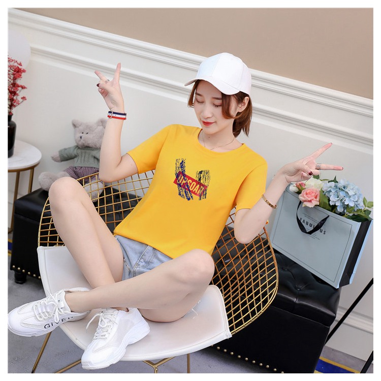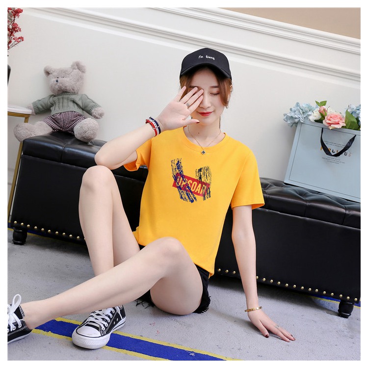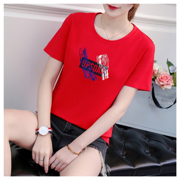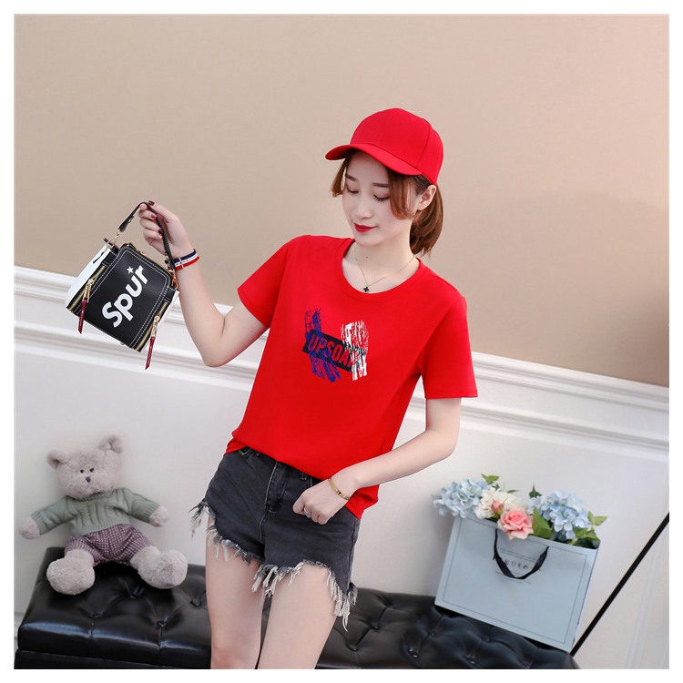 2019夏裝新款純棉紅色t恤女短袖寬松韓版學生百搭半袖上衣休閑潮