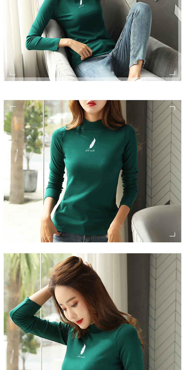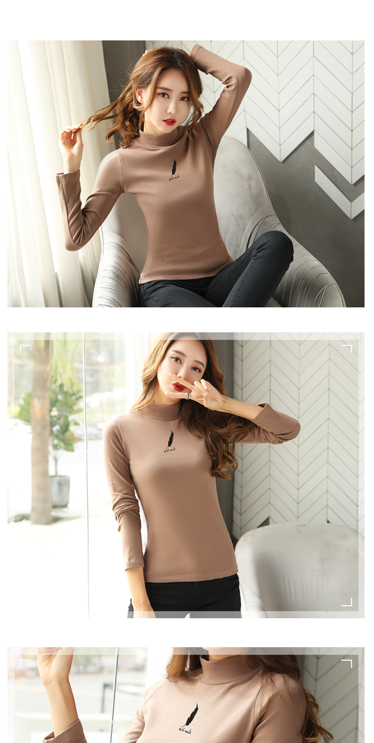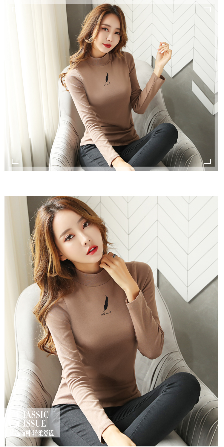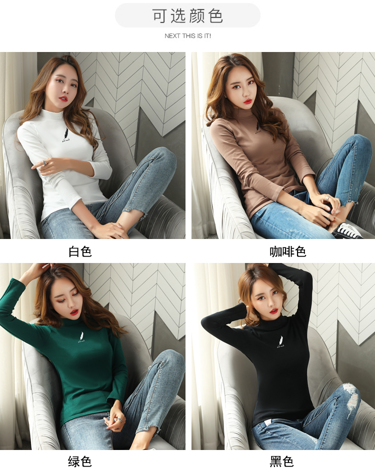 2019新款秋裝加厚高領白色長袖t恤女純棉韓版百搭打底衫秋冬上衣
