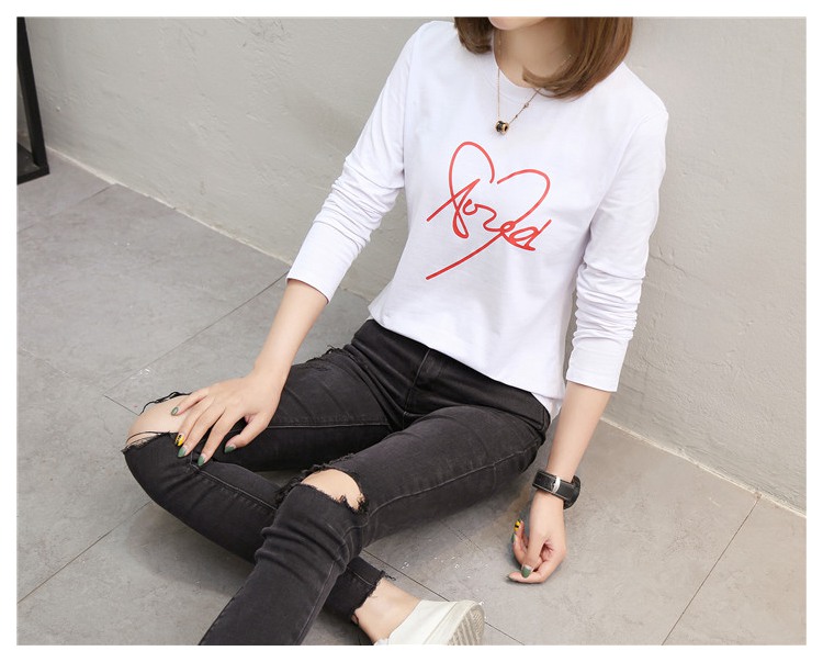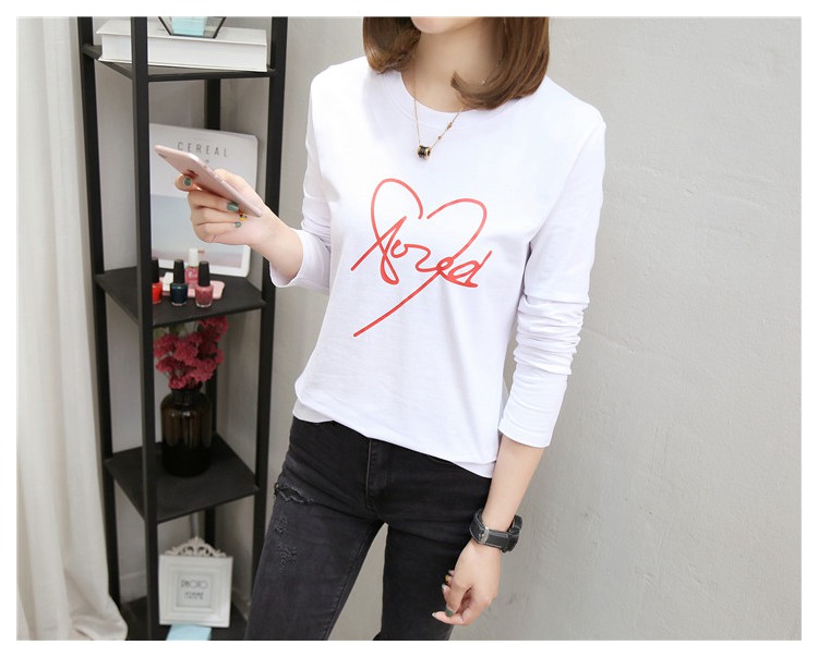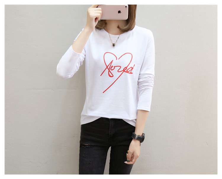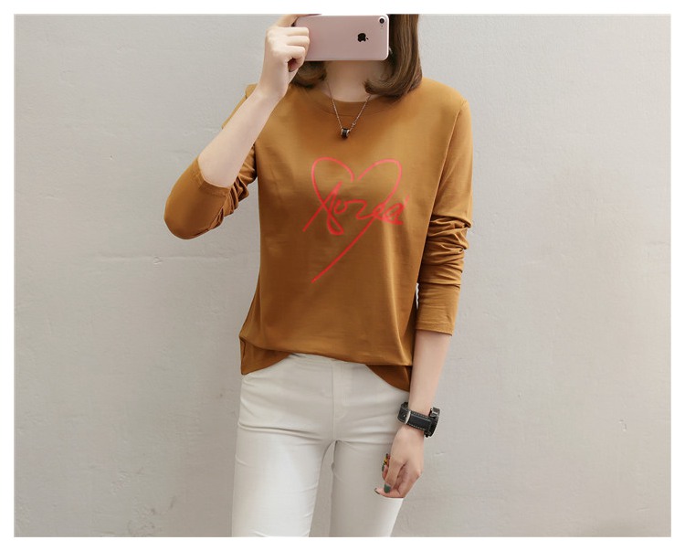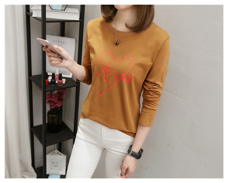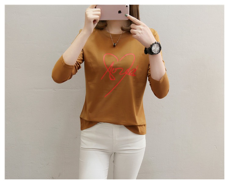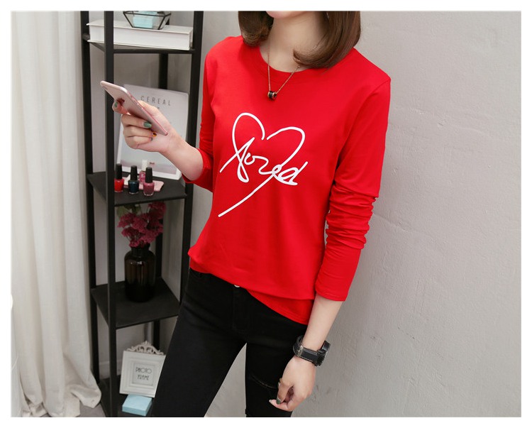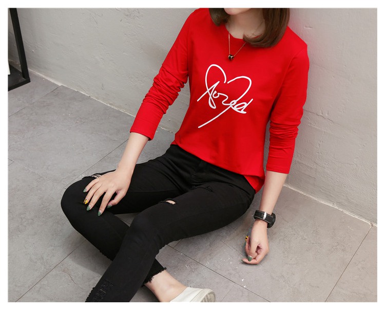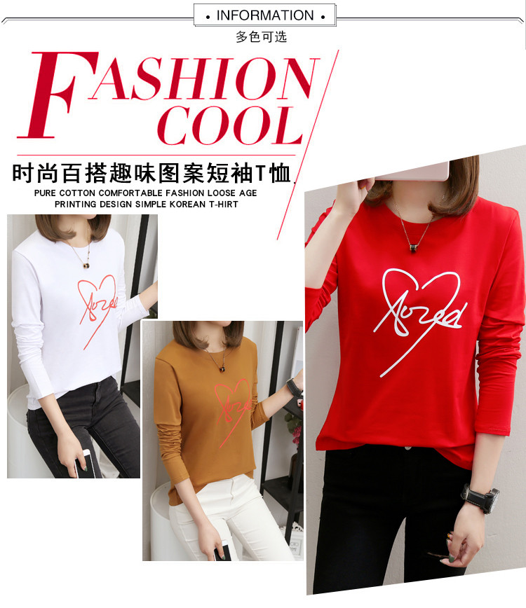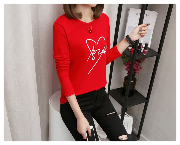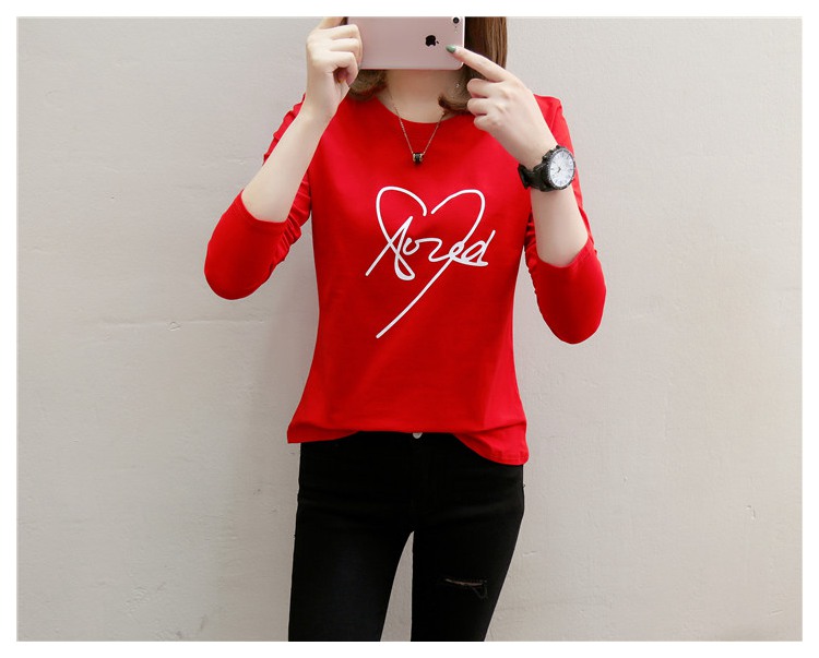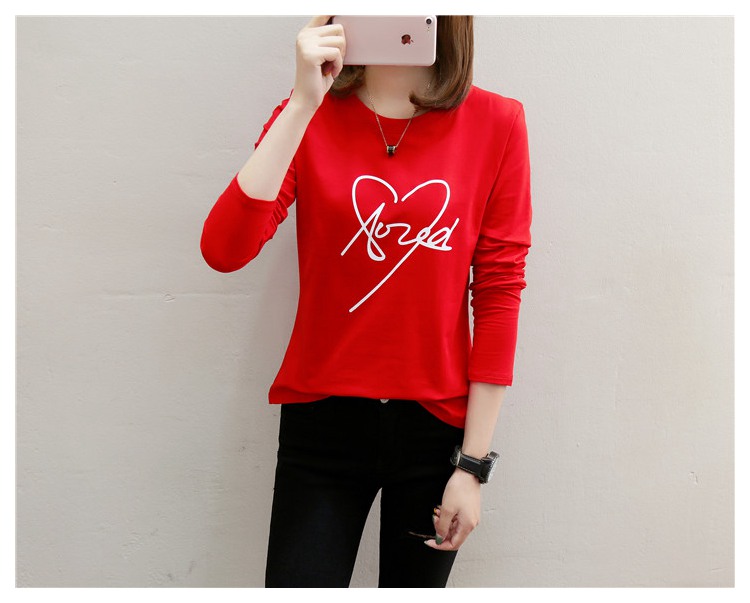 2019新款秋裝修身純棉長袖t恤女韓版百搭內搭學生紅色打底衫上衣