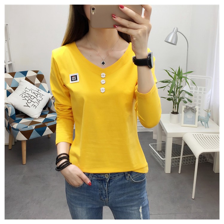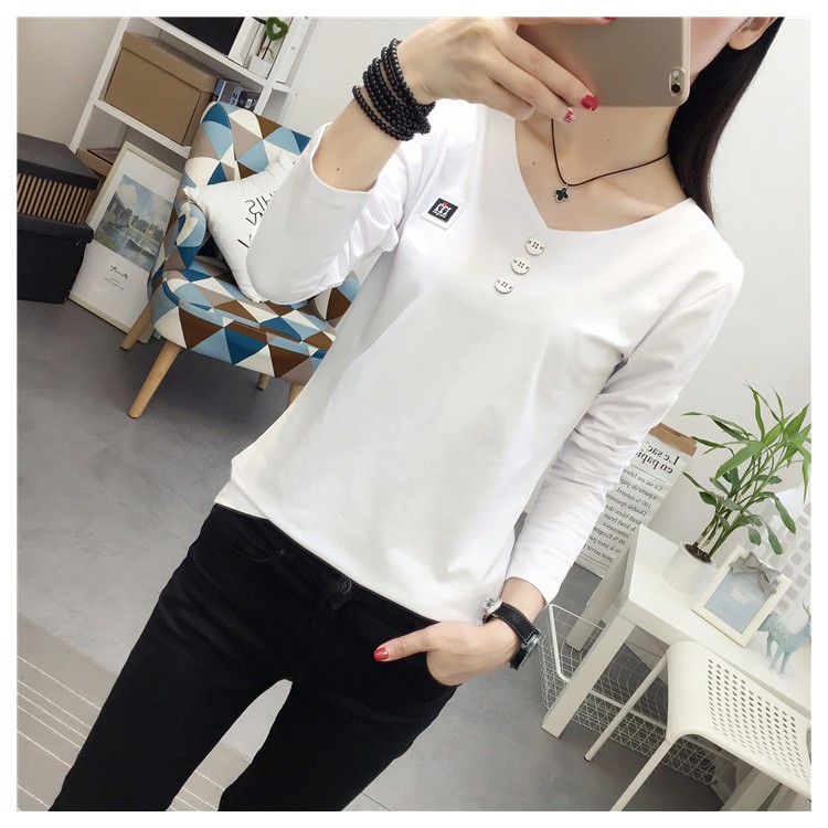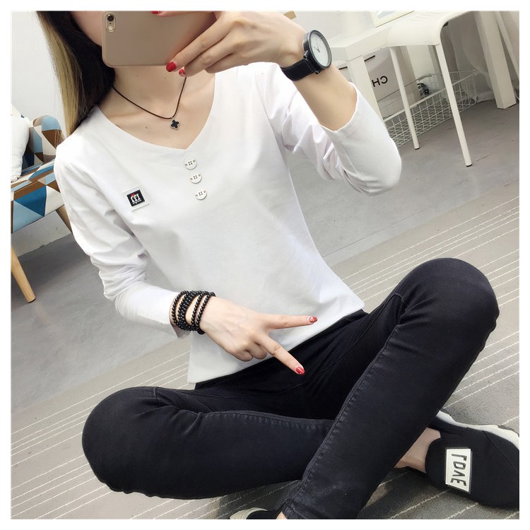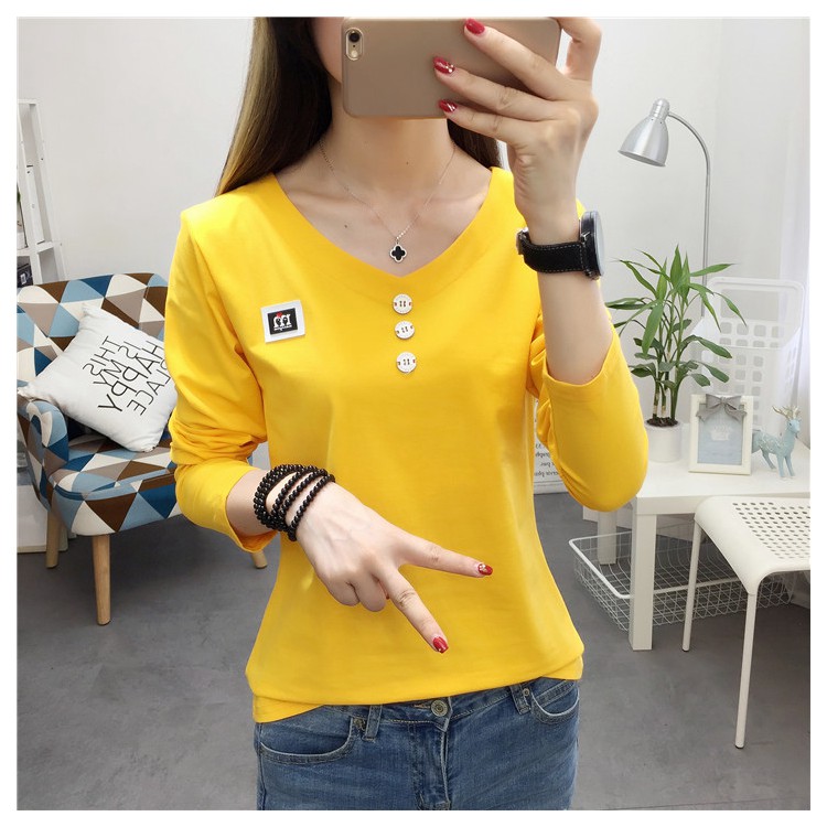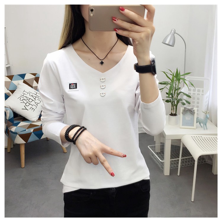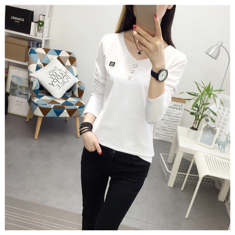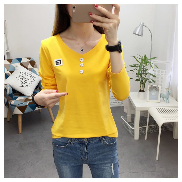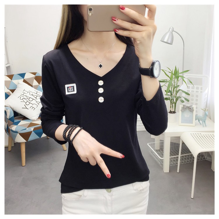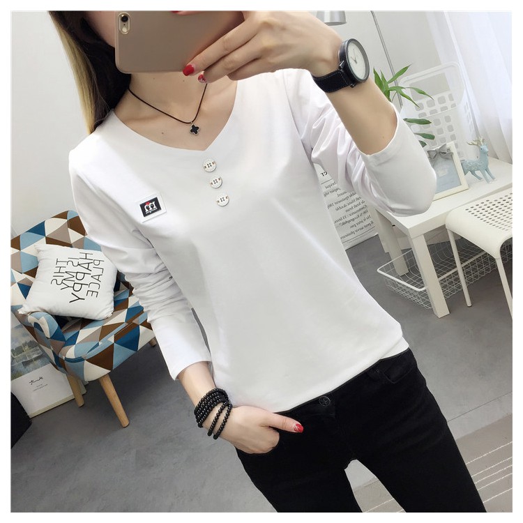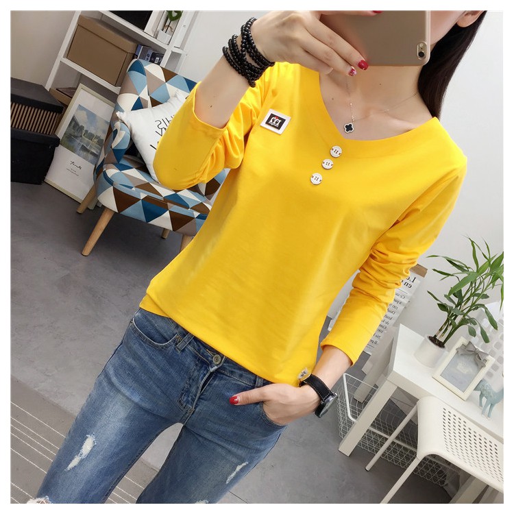 2019秋裝新款韓版長袖t恤女裝純棉修身顯瘦百搭學生上衣打底衫