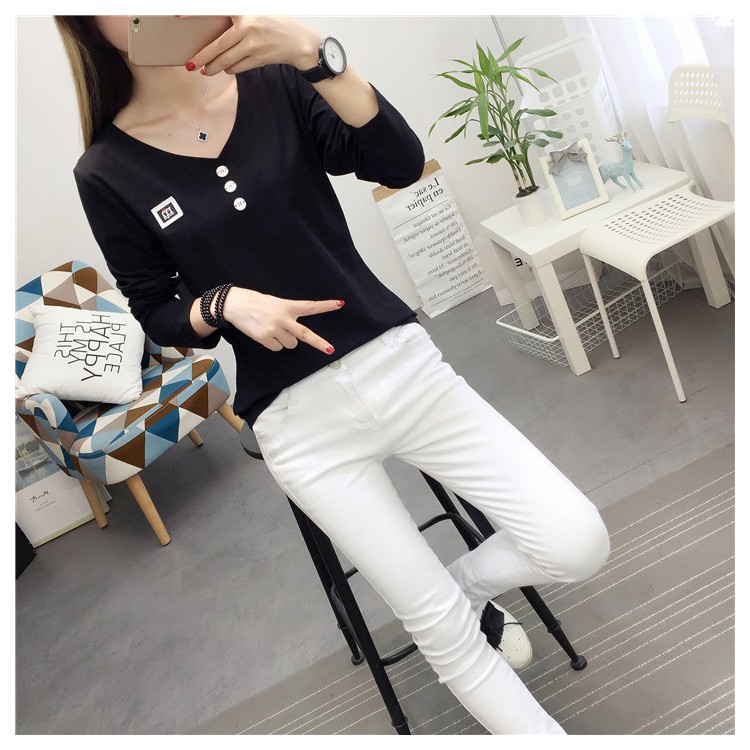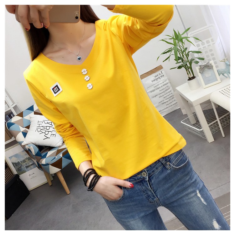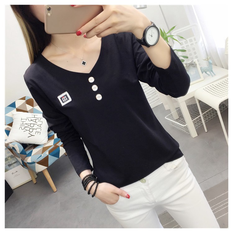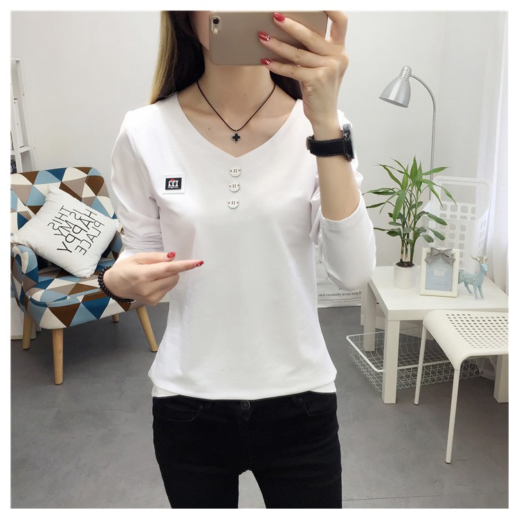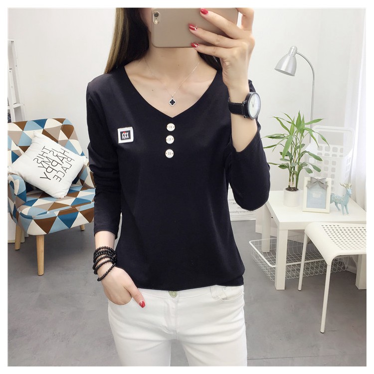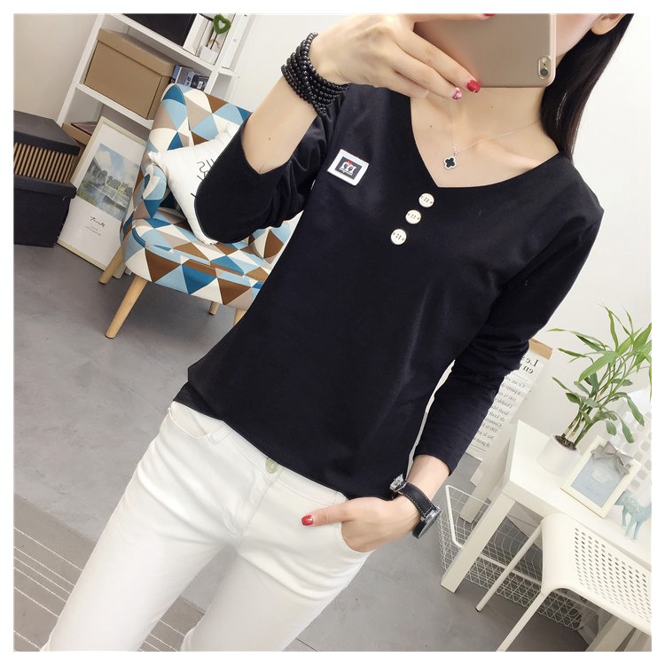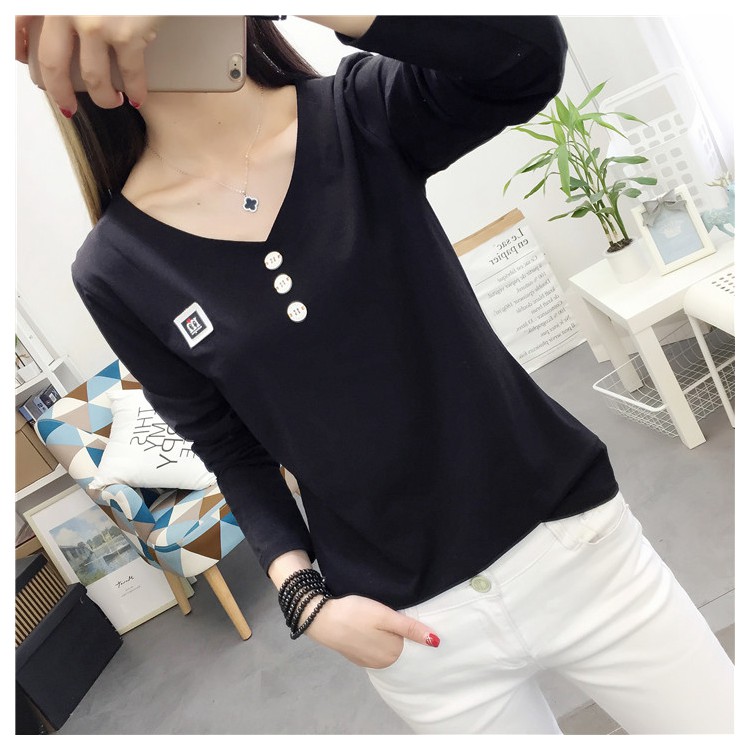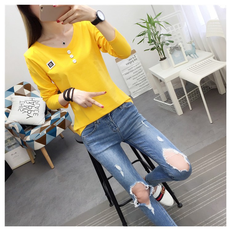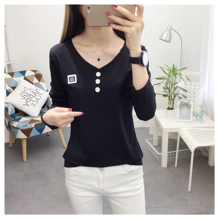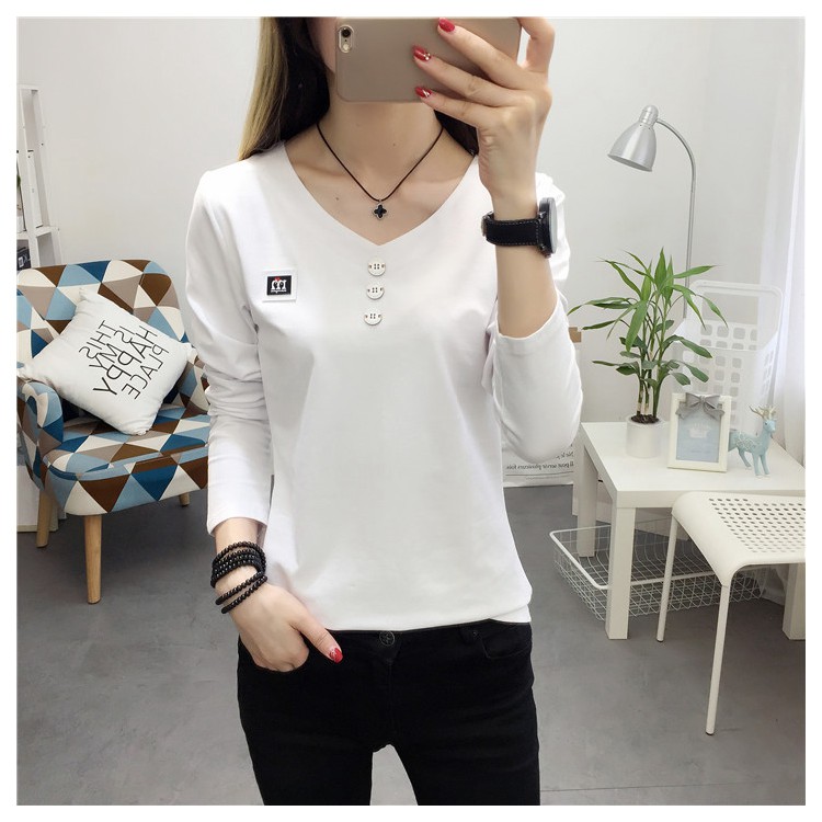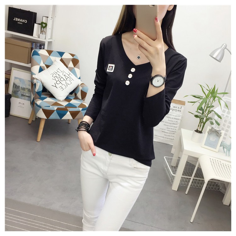 2019秋裝新款韓版長袖t恤女裝純棉修身顯瘦百搭學生上衣打底衫