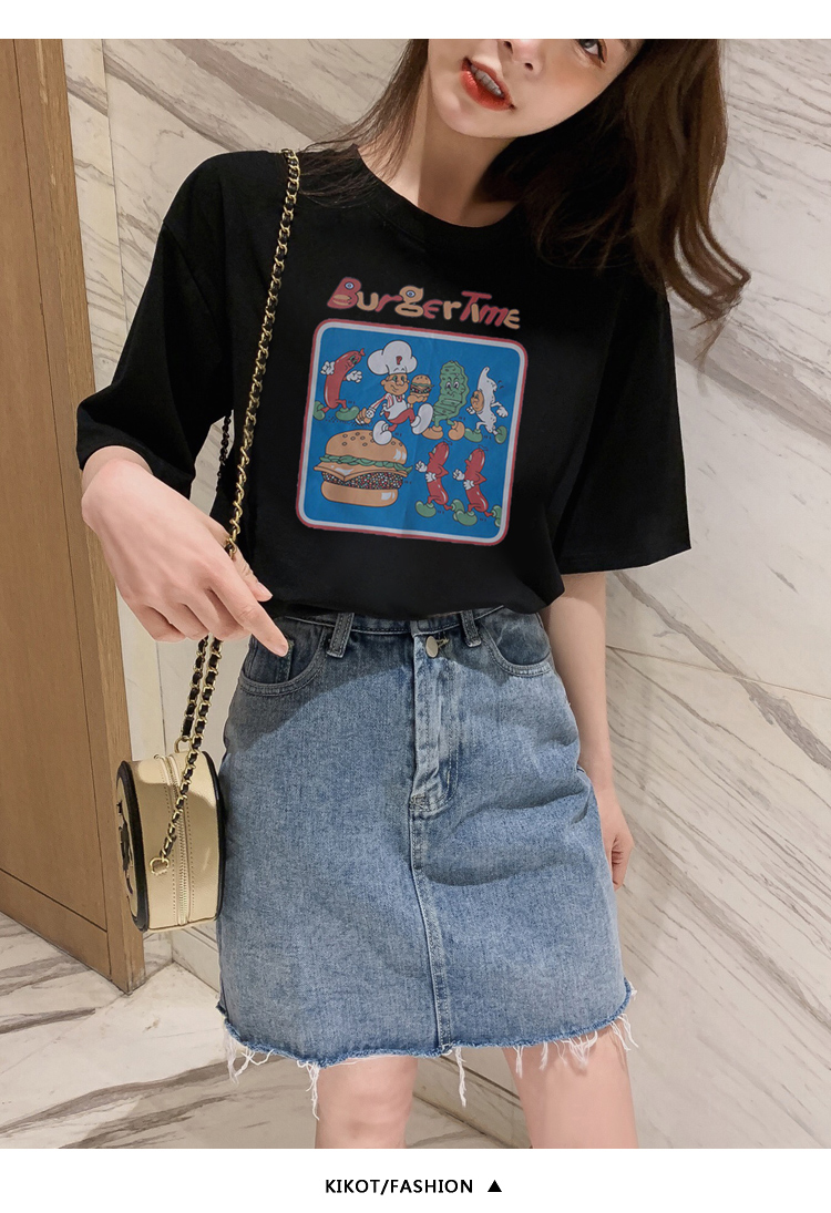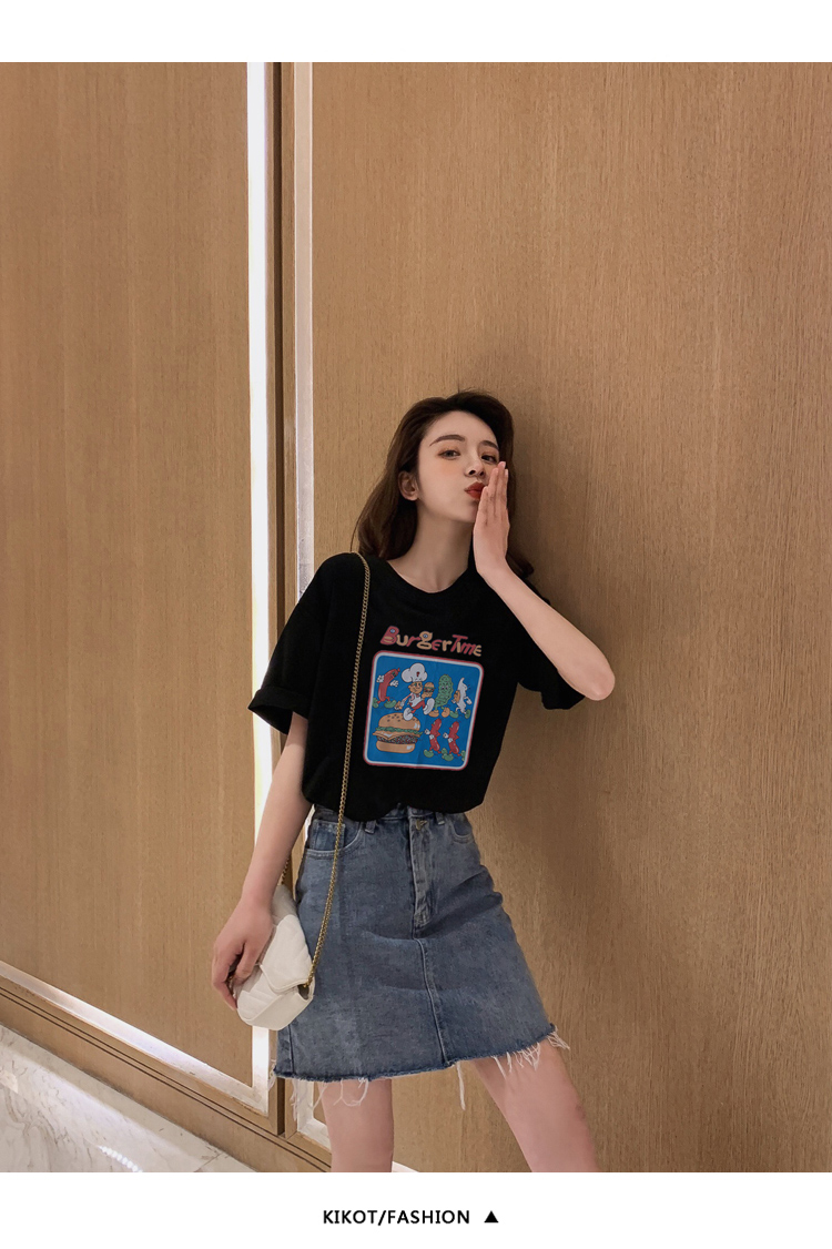 2019新款短袖T恤女夏裝黑色寬松字母韓版潮牌純棉ins超火網紅