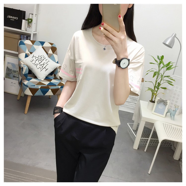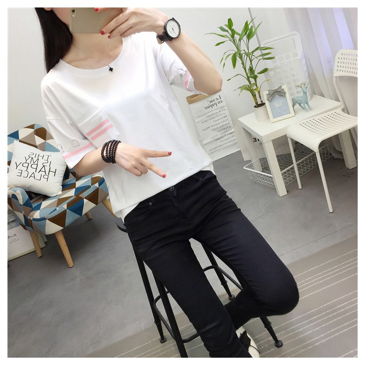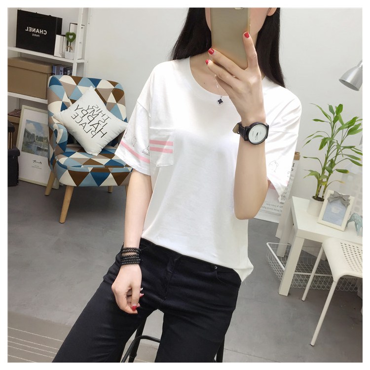 2019新款夏季白色韓版寬松學生百搭短袖t恤女大碼簡約純棉上衣服