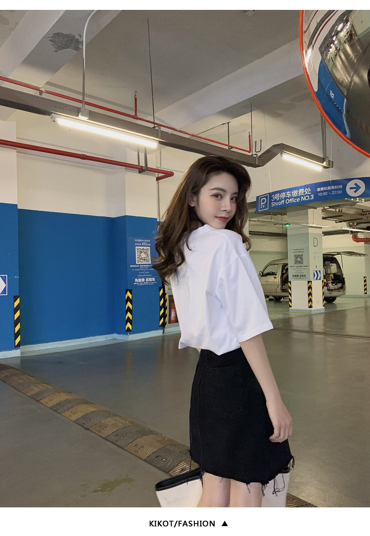 2019夏新款短袖T恤女韓版寬松時尚字母純棉黑色學生純棉潮流T