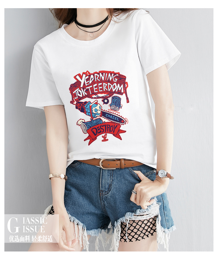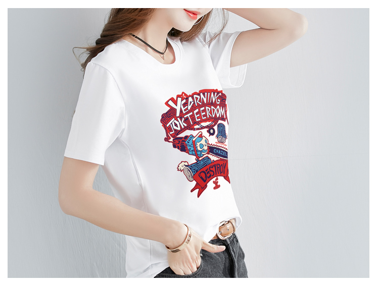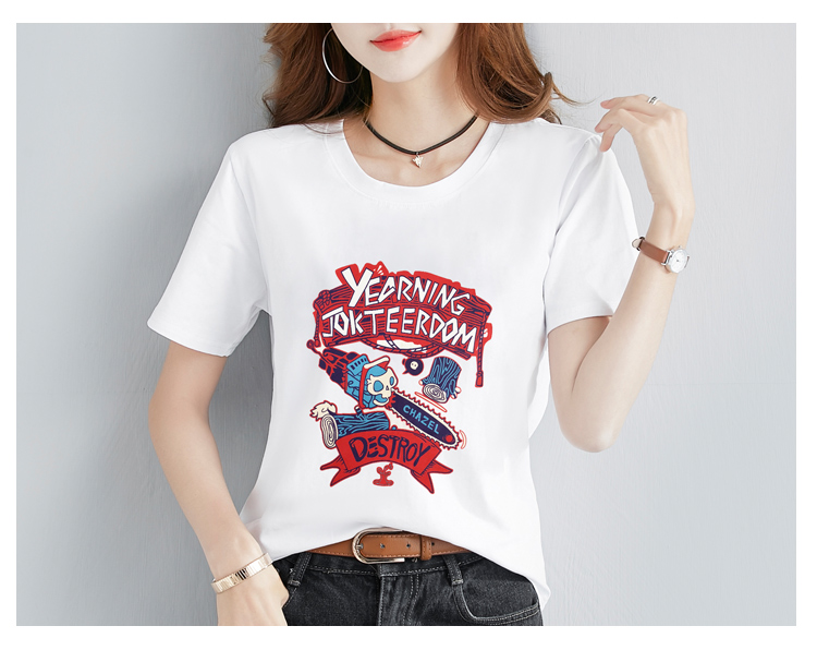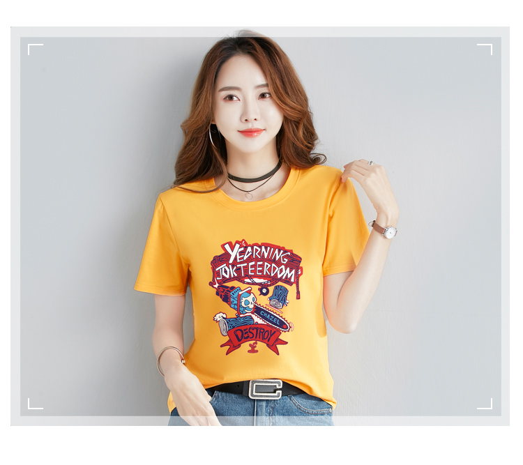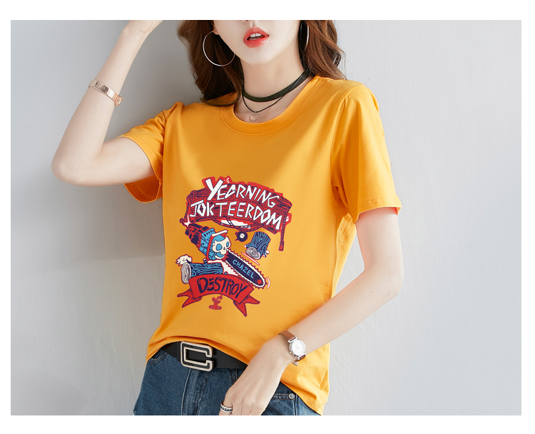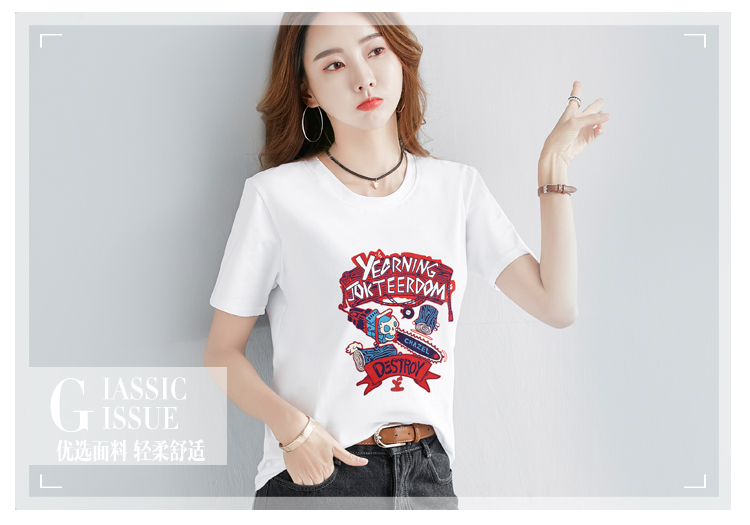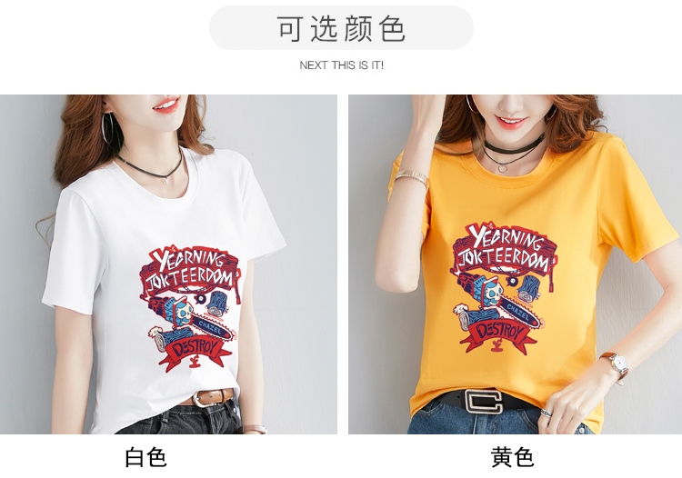 2019新款夏季打底衫女圓領純棉短袖T恤女寬松內搭印花韓版半袖
