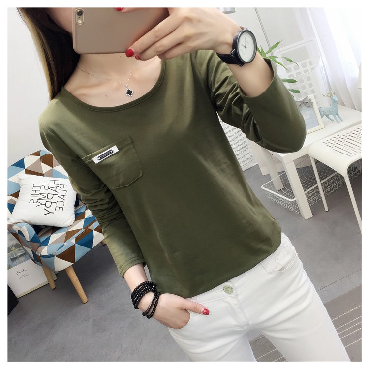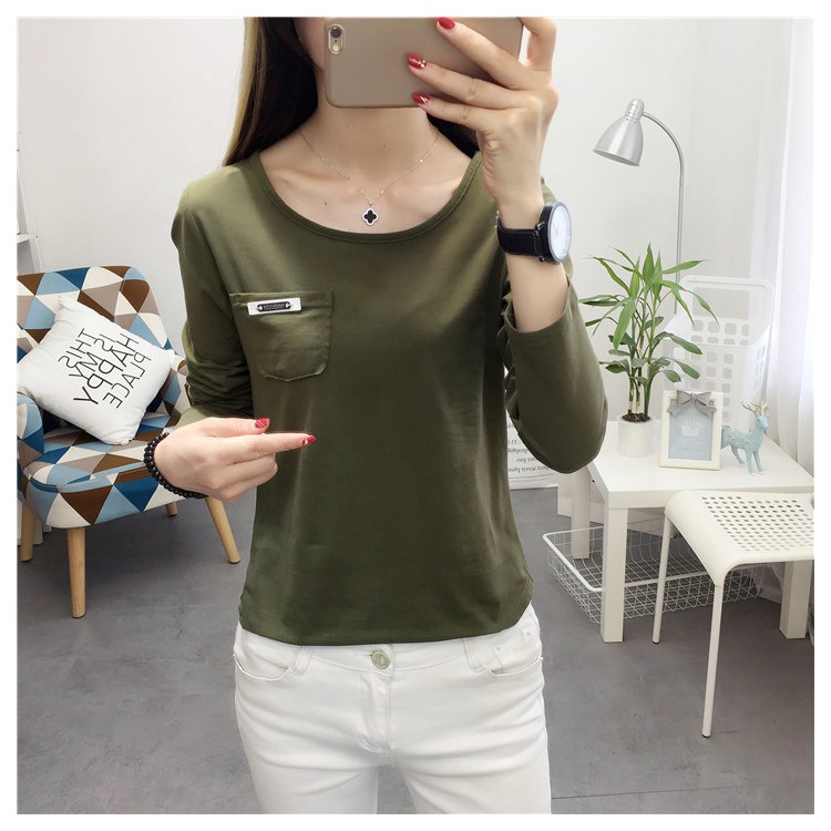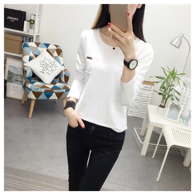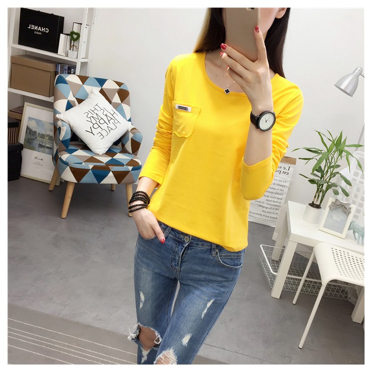 長袖上衣春秋季修身顯瘦純棉學生韓版內搭女士春裝打底衫女t恤潮
