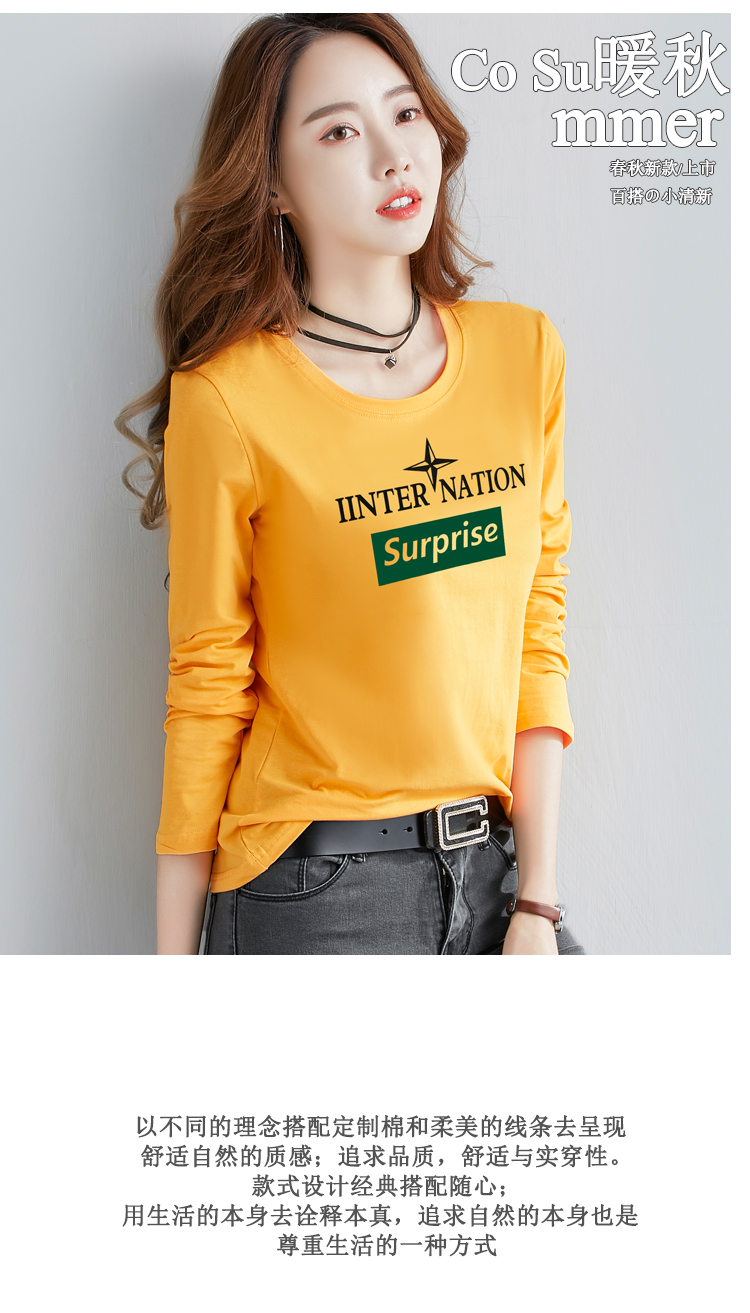 2019春秋女裝上衣體恤衫韓版修身百搭內搭打底衫純棉長袖T恤女潮