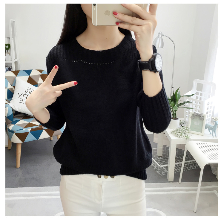 2019春裝新款針織衫女韓版圓領學生寬松百搭打底衫套頭毛衣冬潮