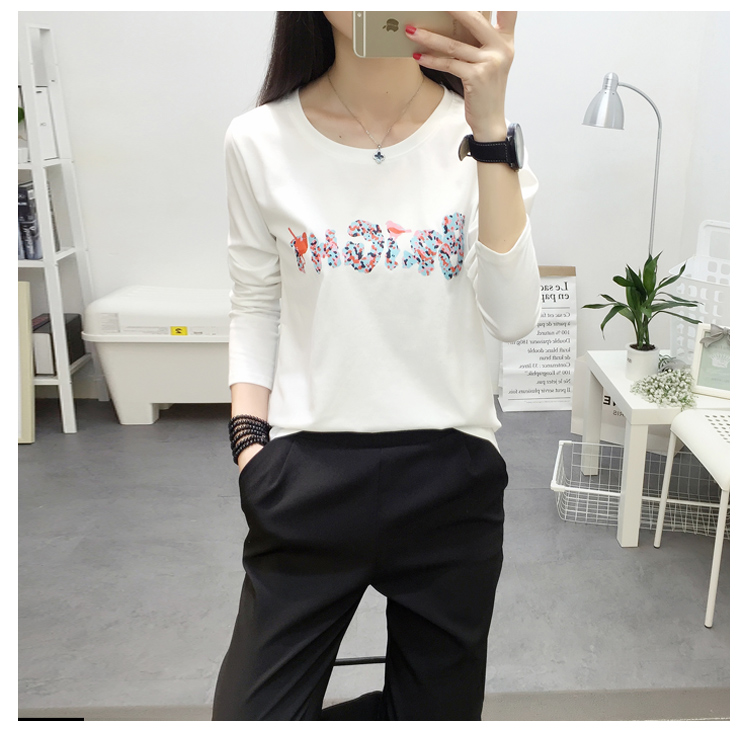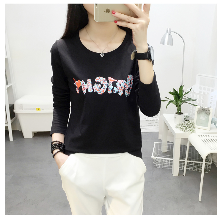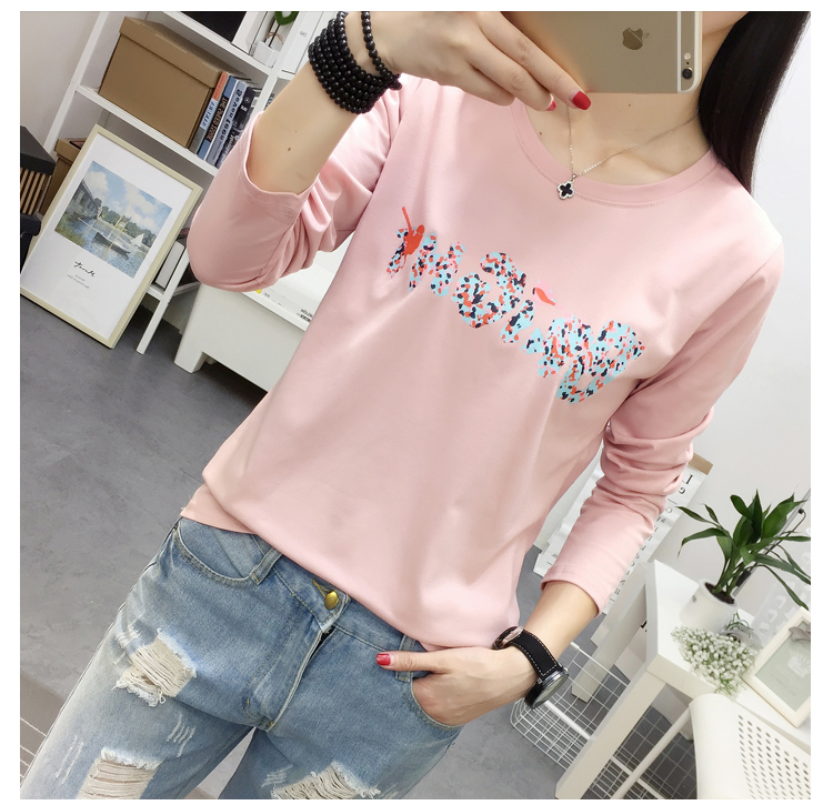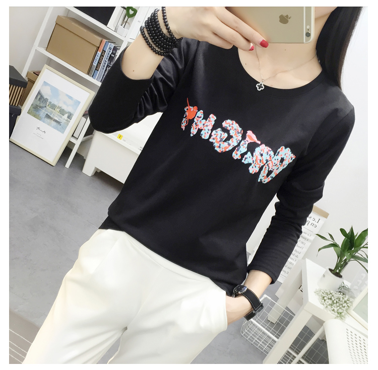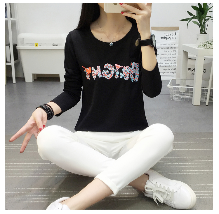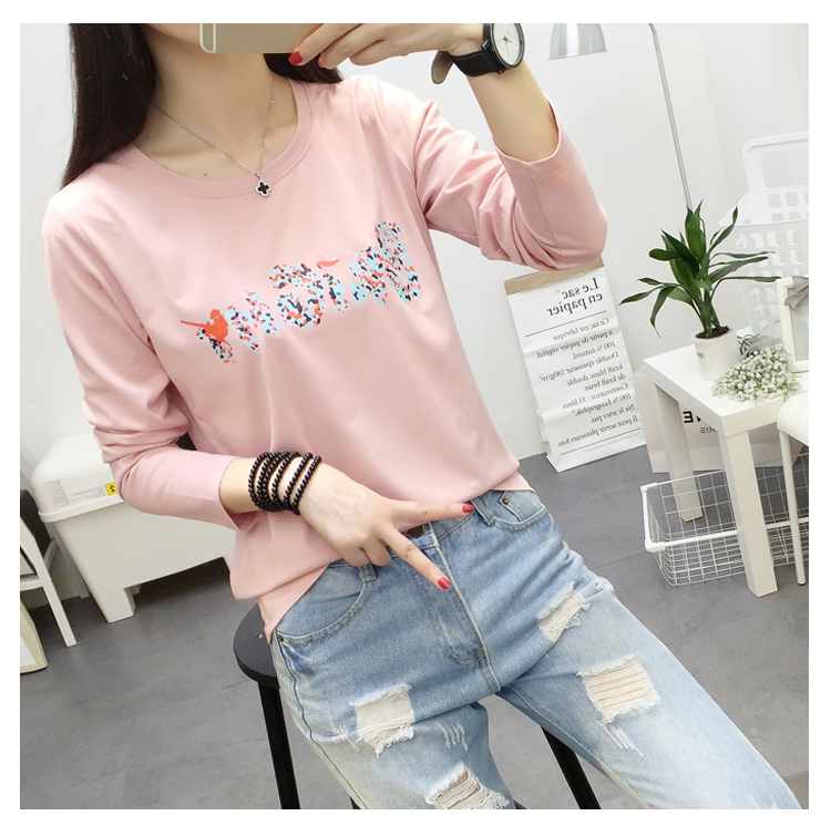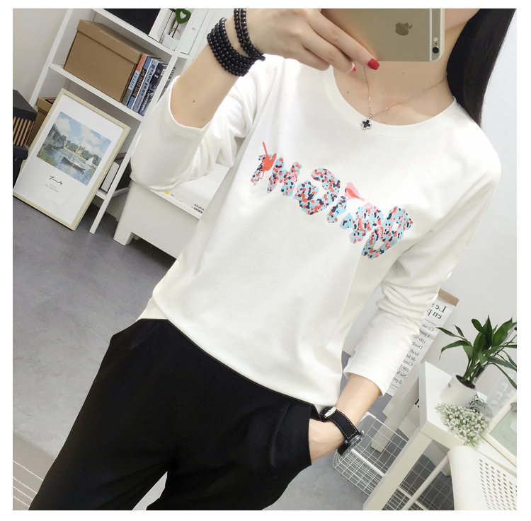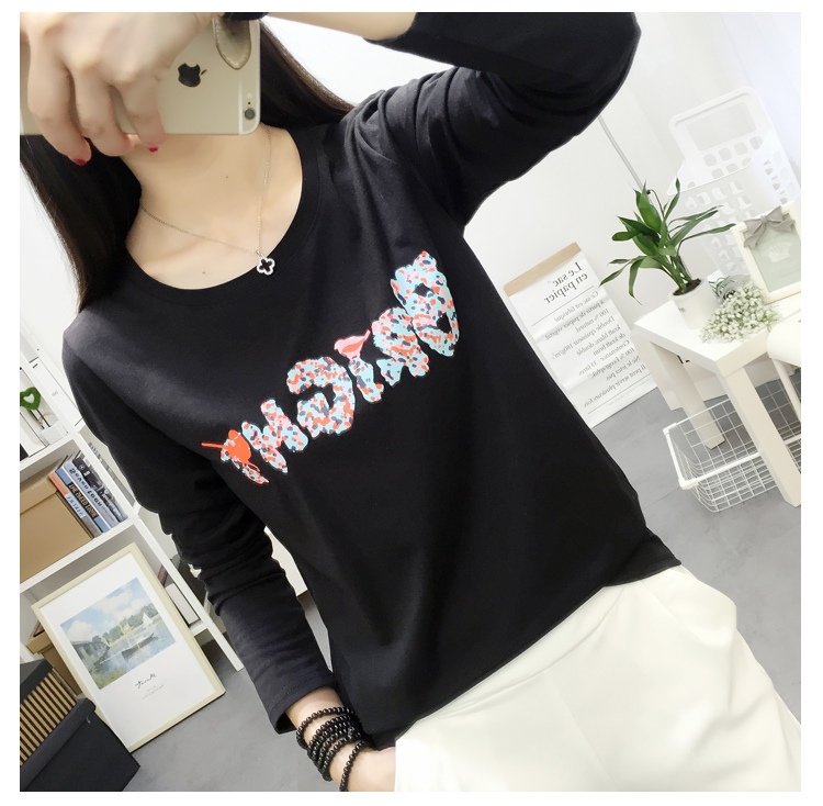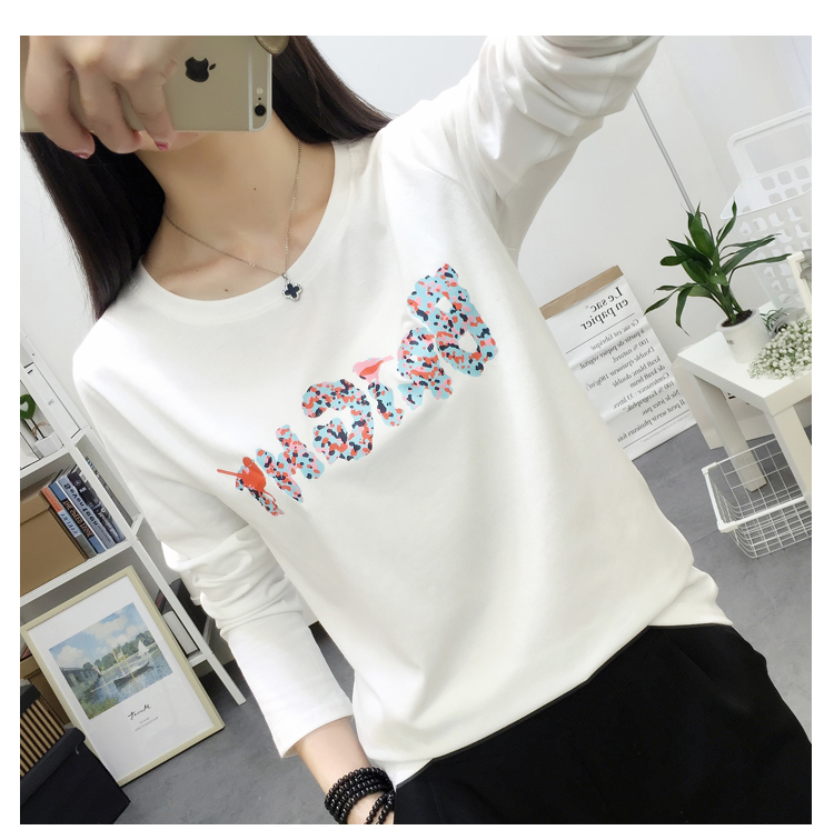2019春裝新款寬松大碼韓版百搭長袖女T恤打底衫復字母休閑上衣潮