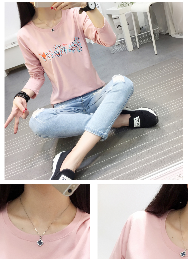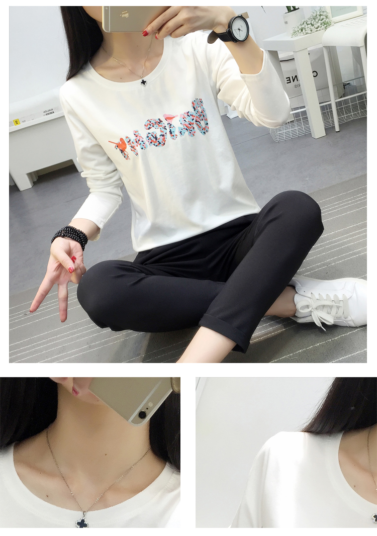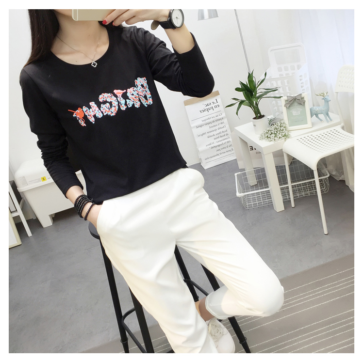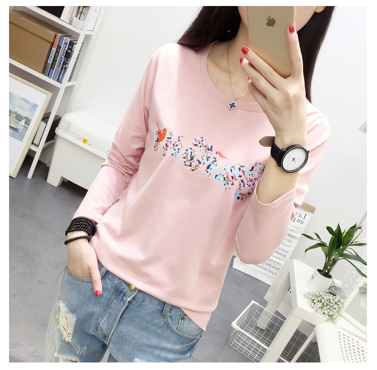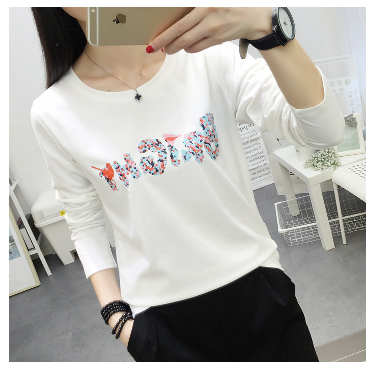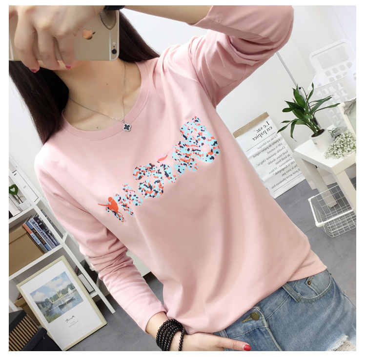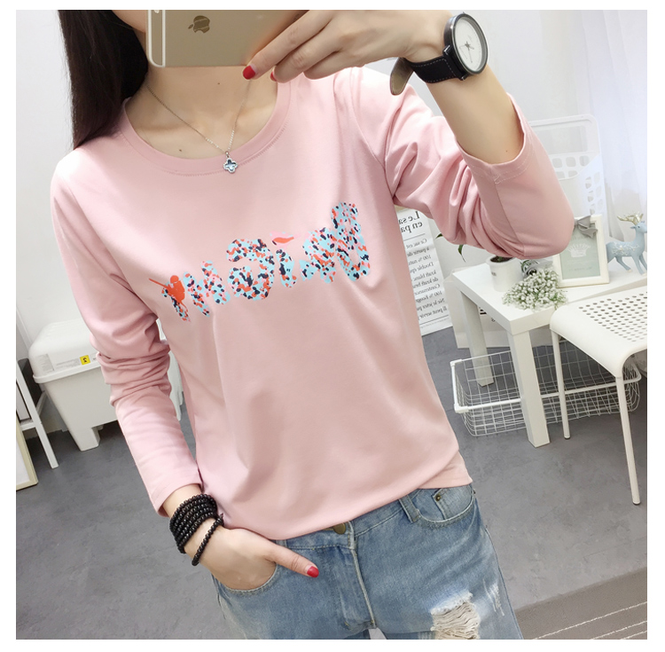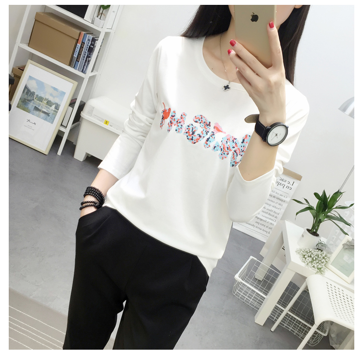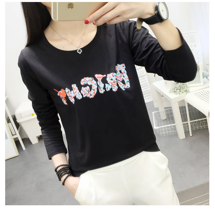 2019春裝新款寬松大碼韓版百搭長袖女T恤打底衫復字母休閑上衣潮