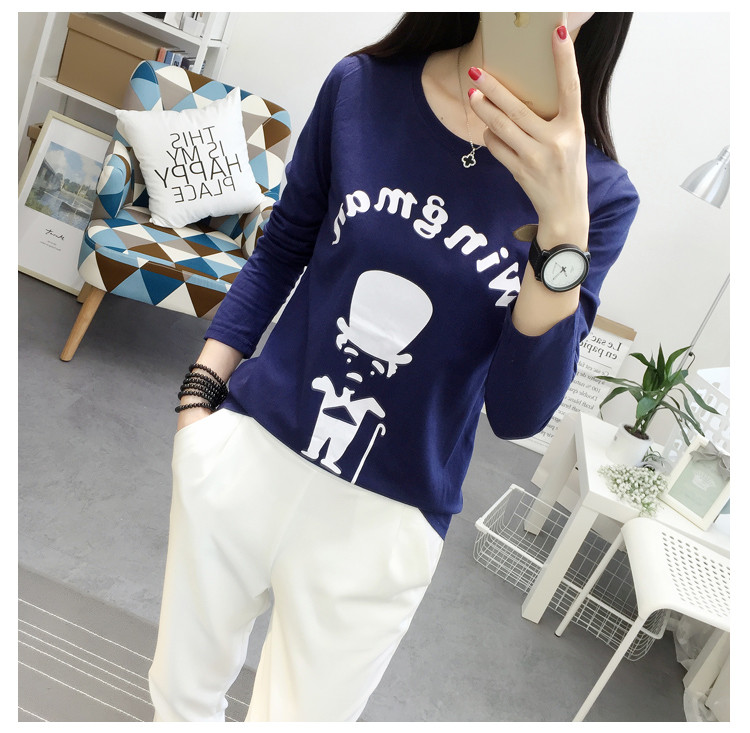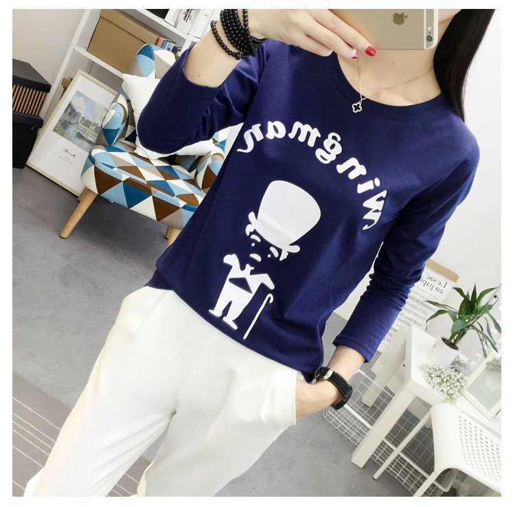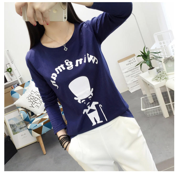 長袖t恤女秋裝寬松大碼卡通印花學生韓版百搭上衣打底衫秋衣外穿