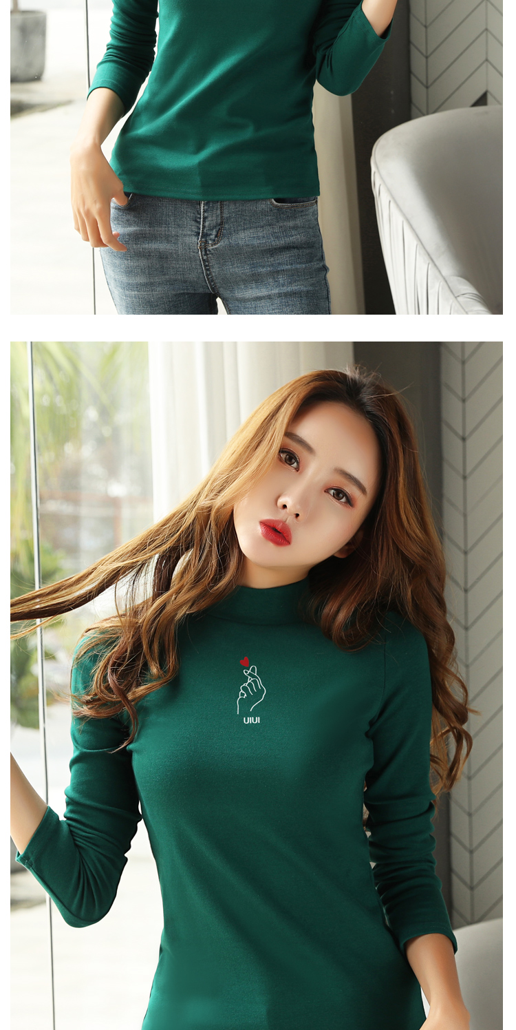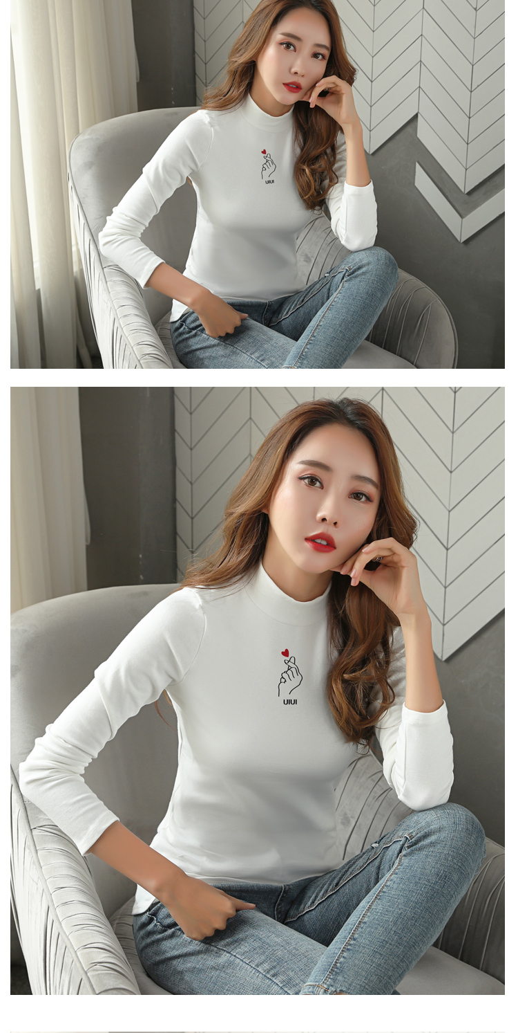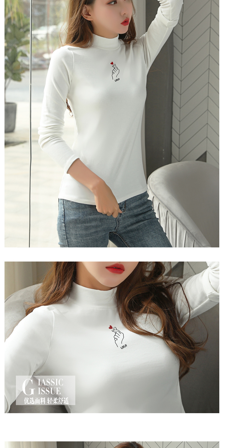 2019新款冬裝加厚高領白色長袖t恤女純棉修身內搭打底衫秋冬上衣