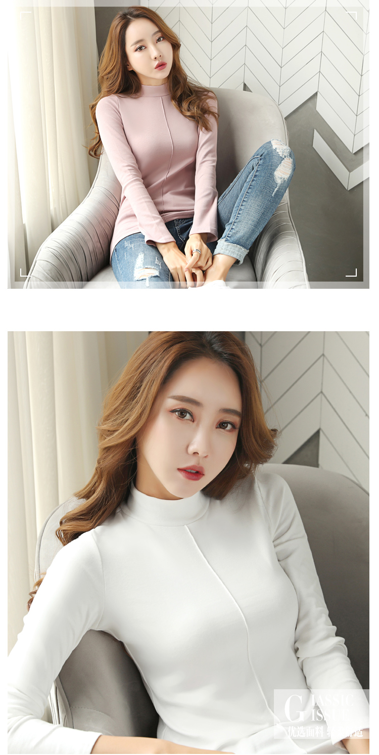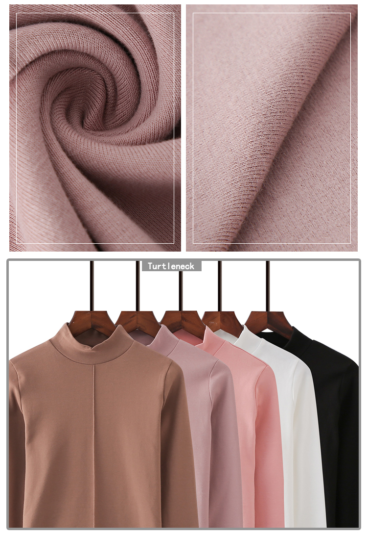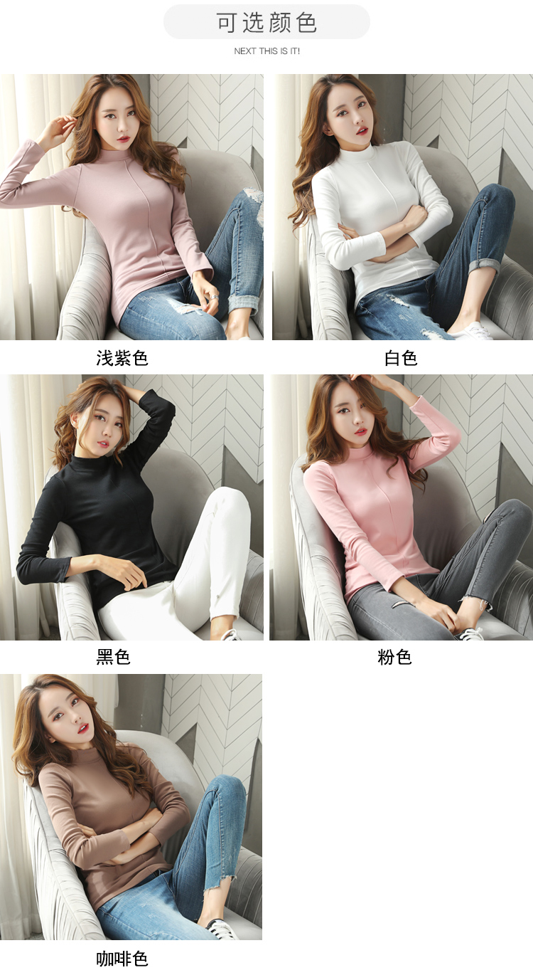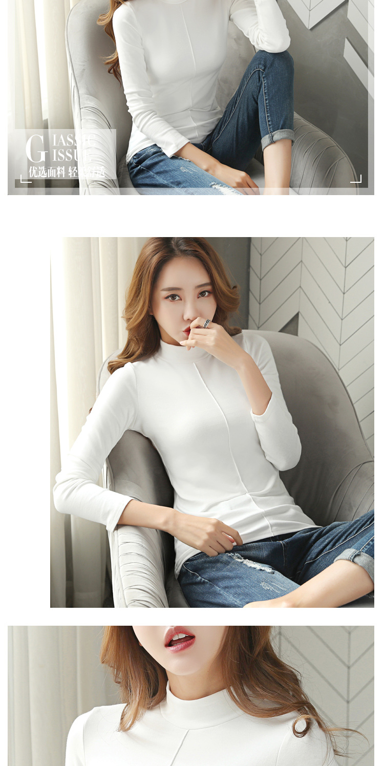 高領長袖t恤女修身顯瘦2019新款春裝純色內搭打底衫純棉春天上衣