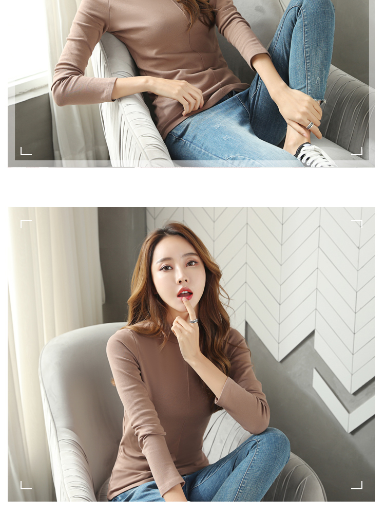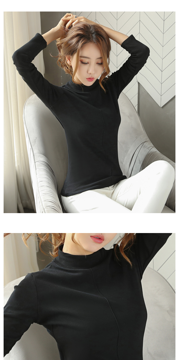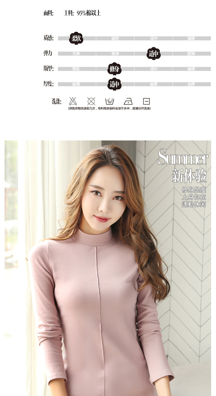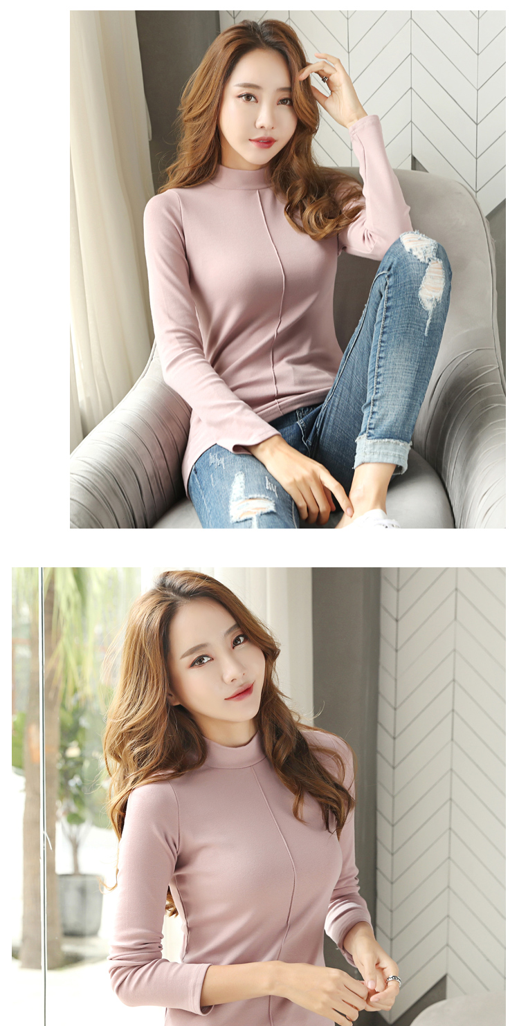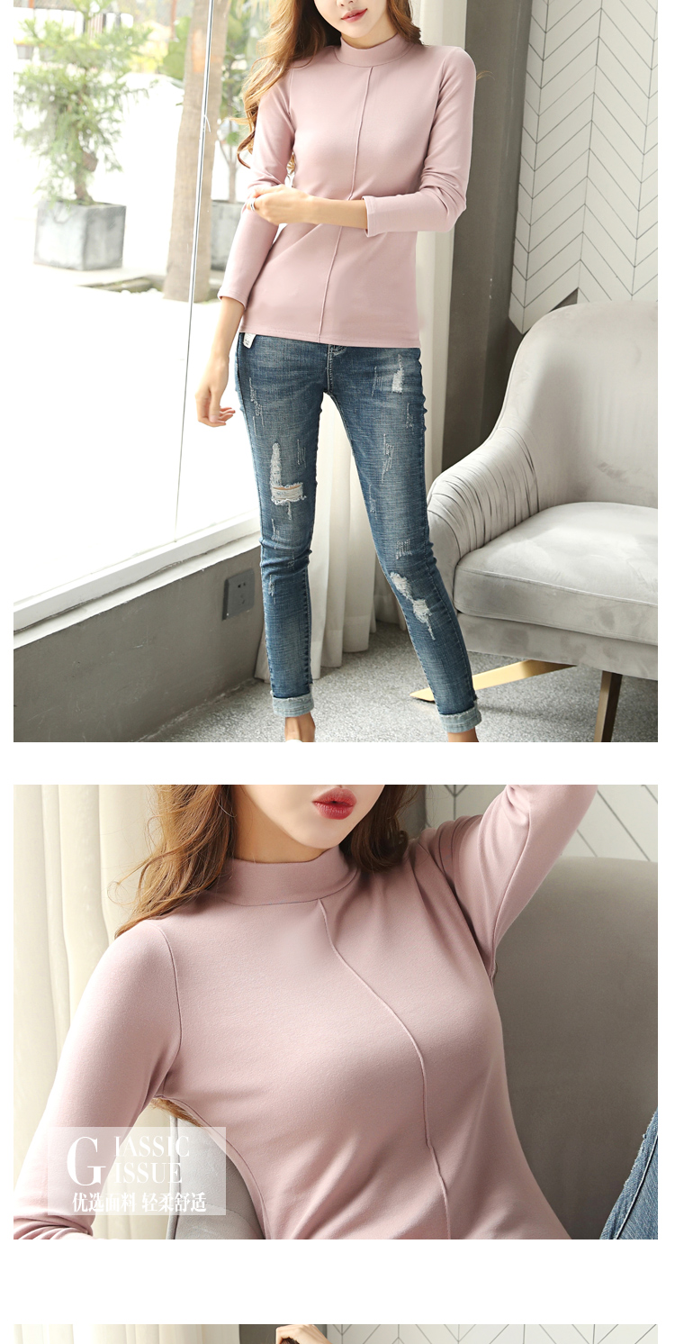 高領長袖t恤女修身顯瘦2019新款春裝純色內搭打底衫純棉春天上衣