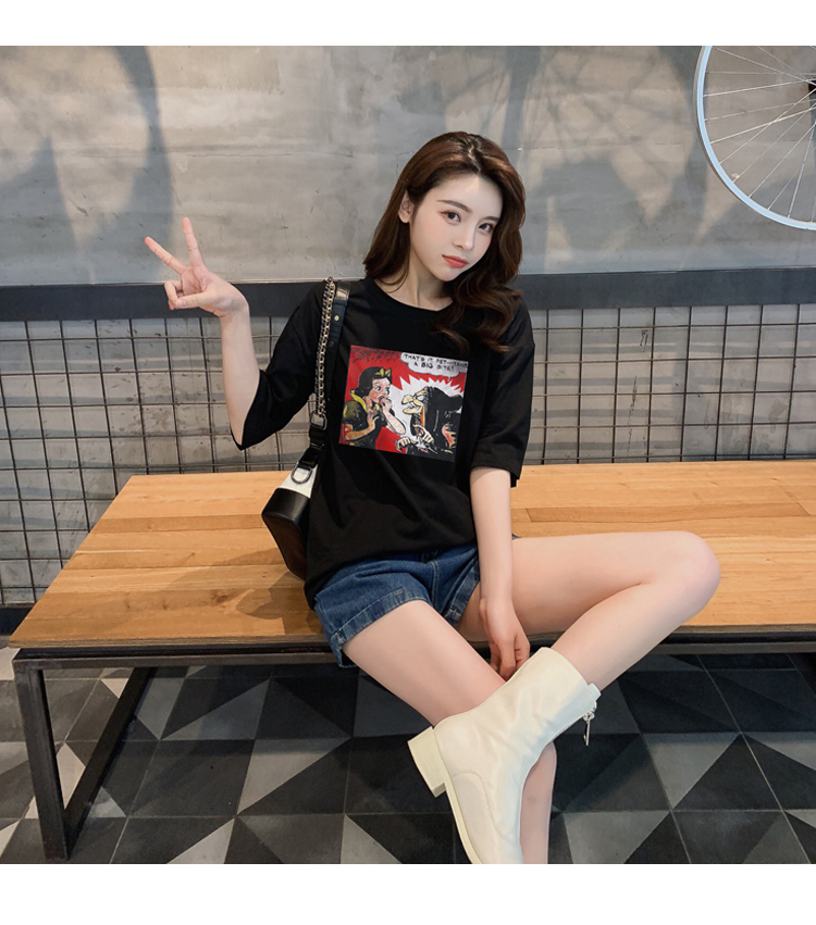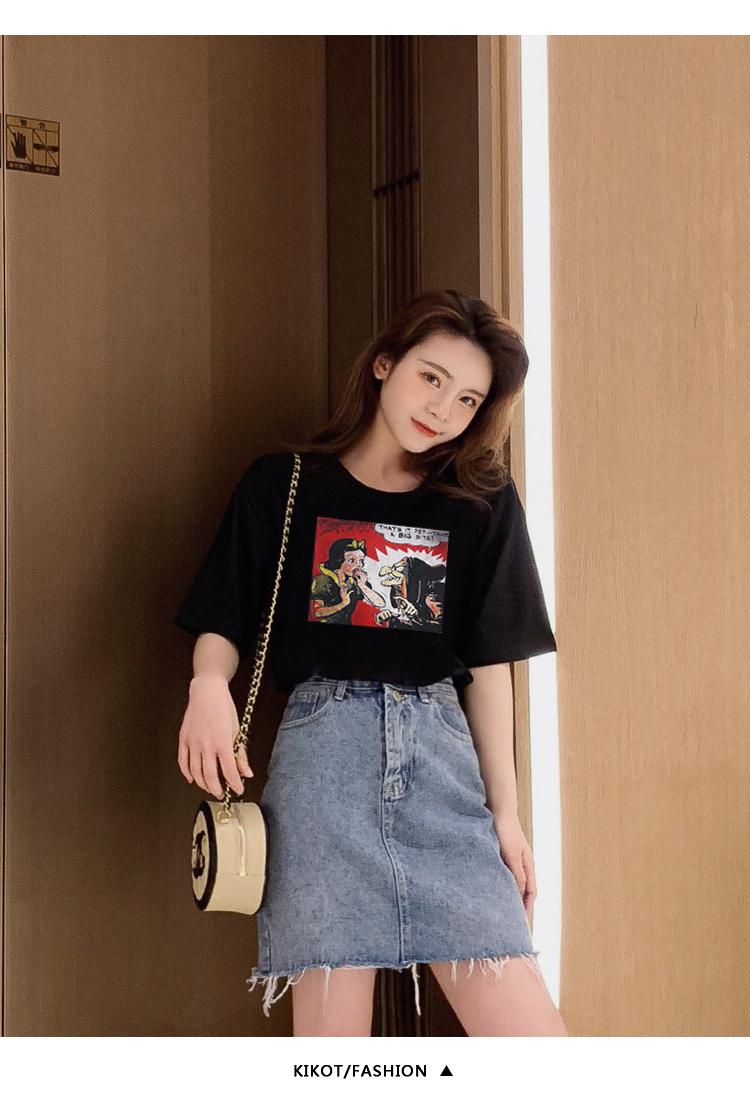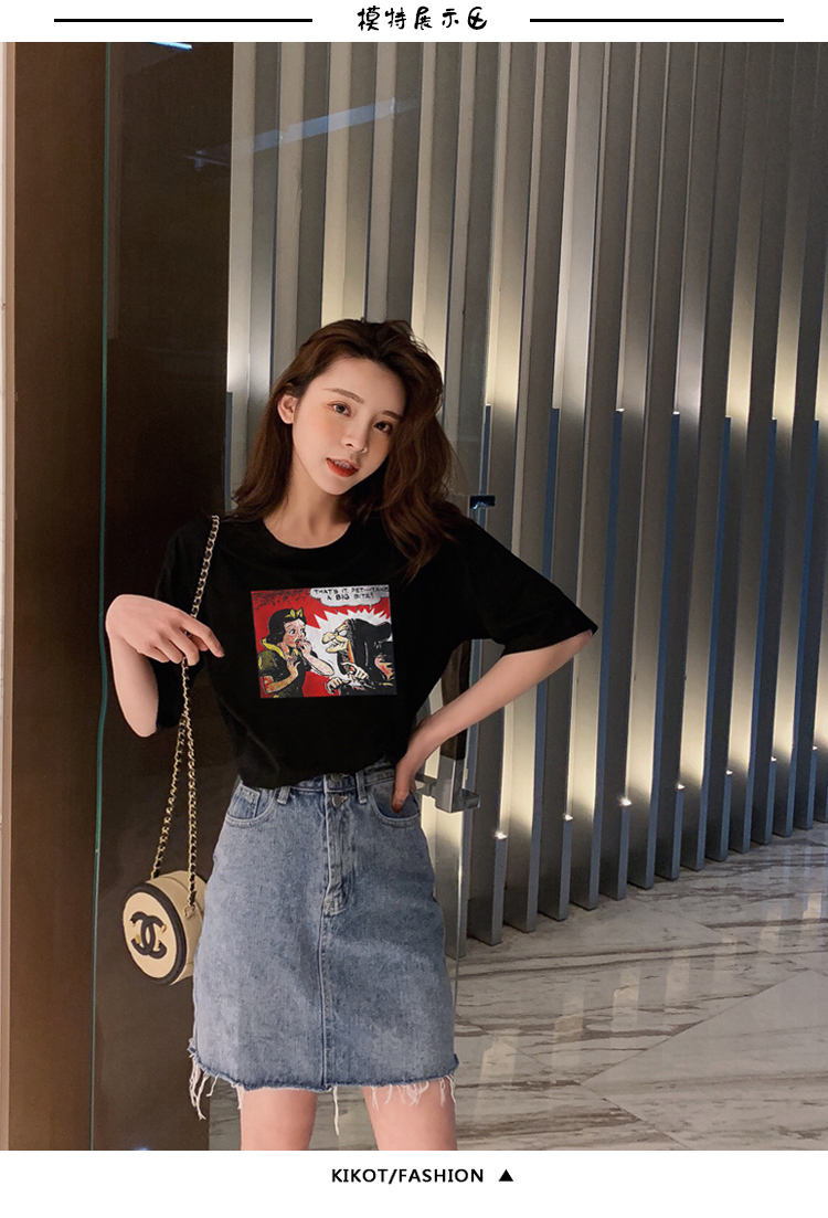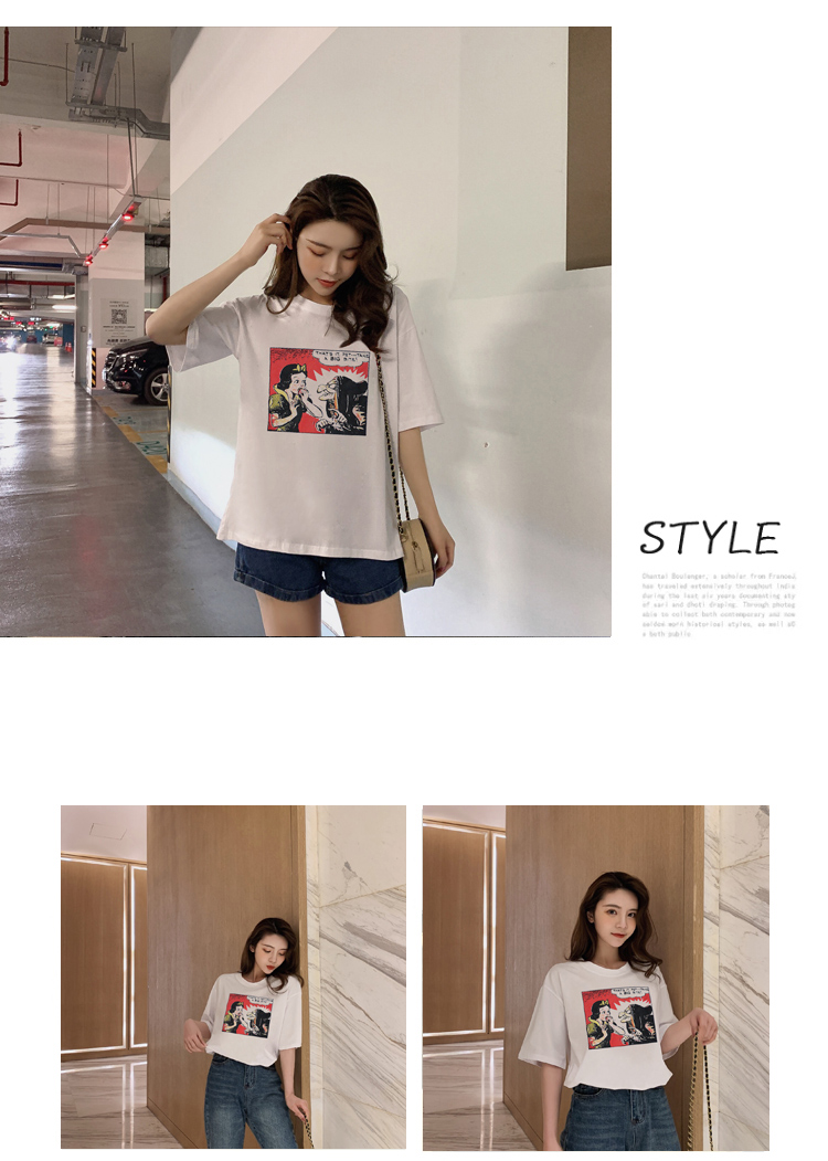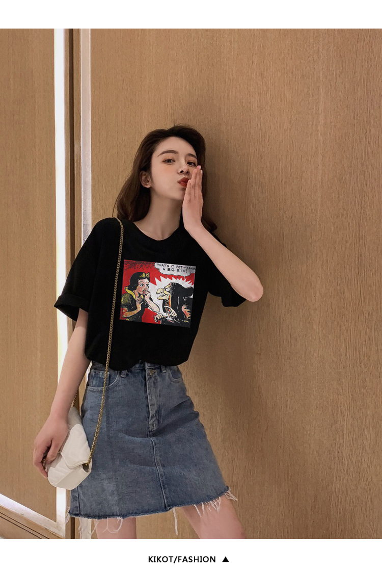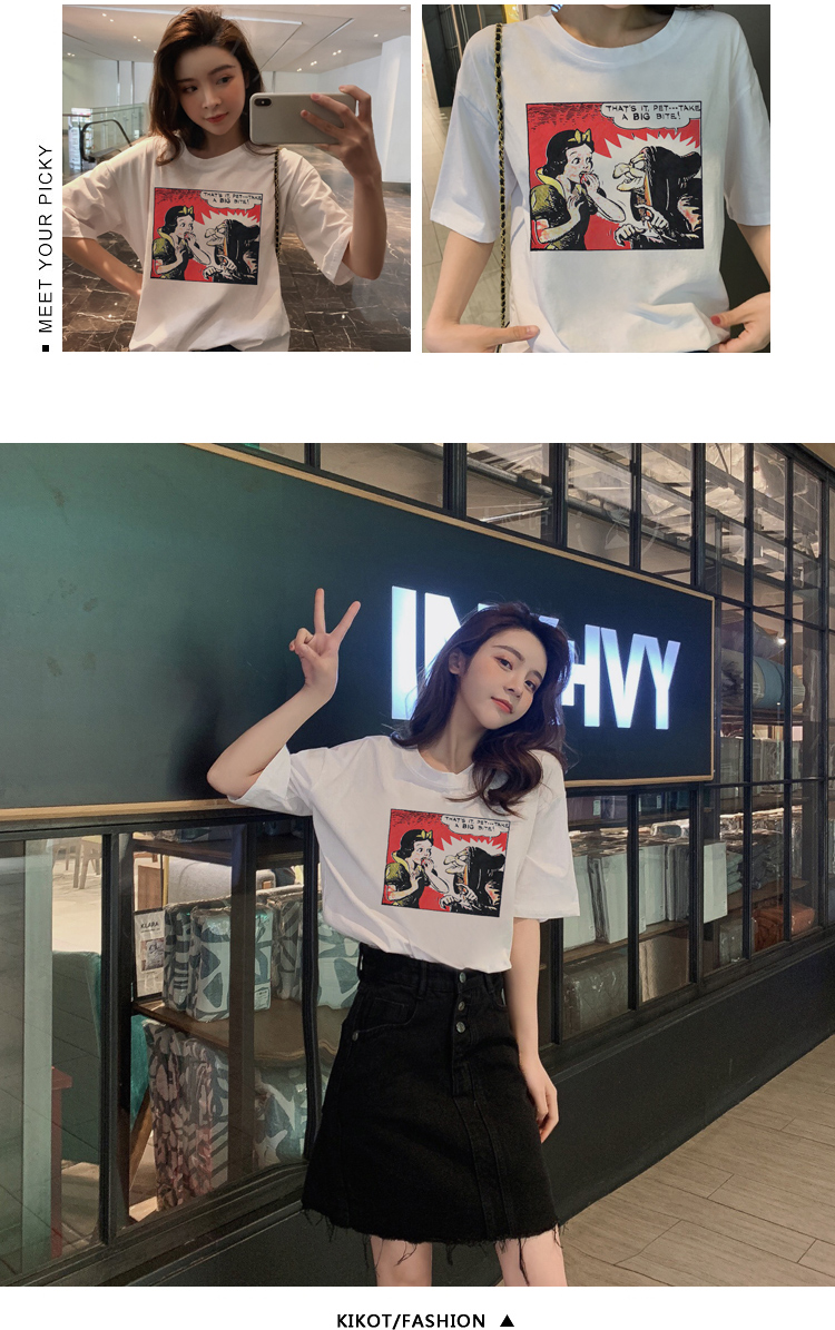 超火cec寬松短袖t恤女裝純棉2019夏裝新款網紅上衣服女ins潮白色
