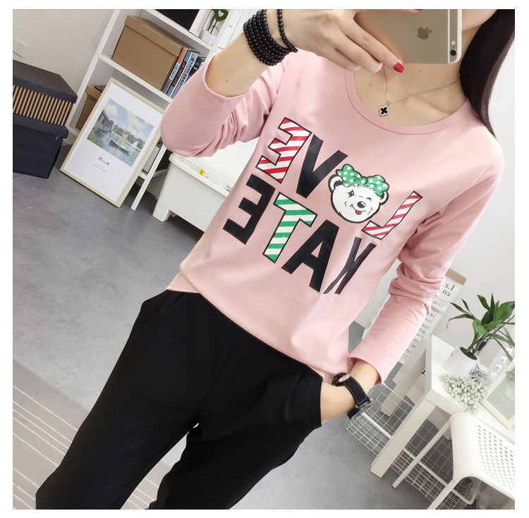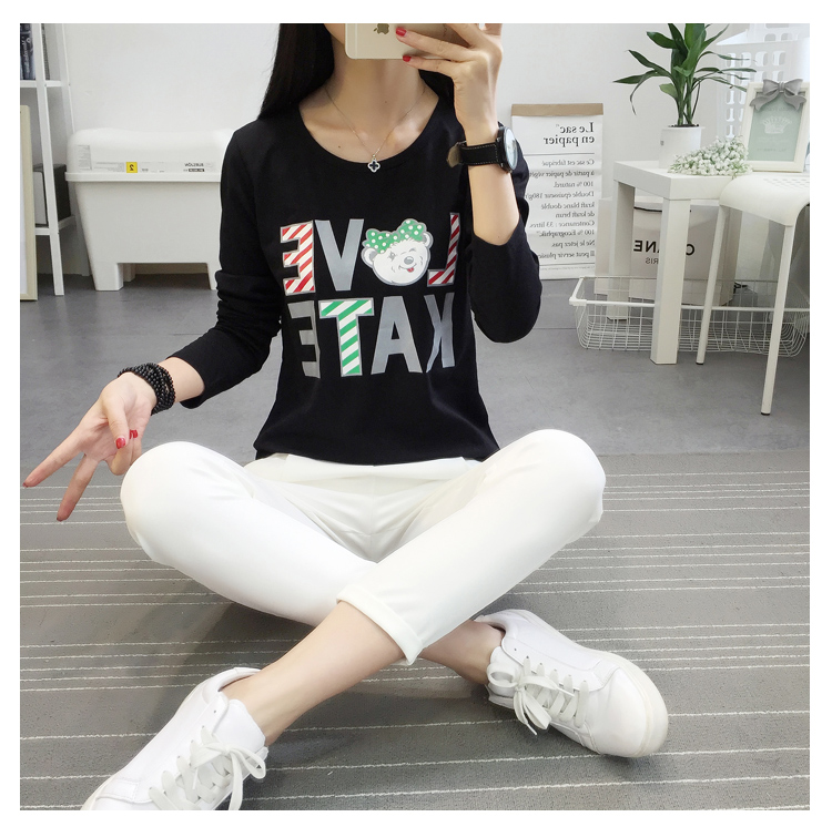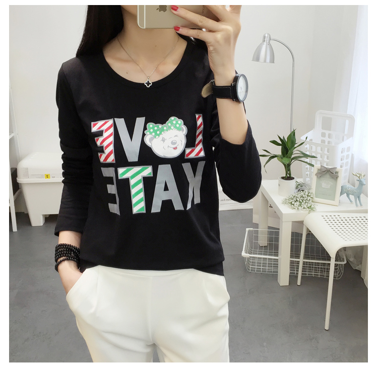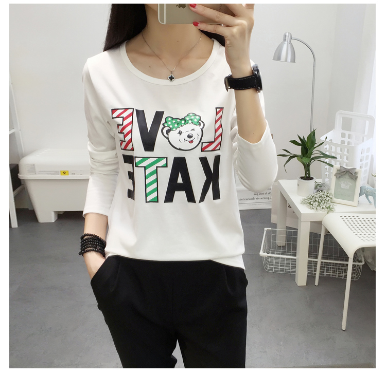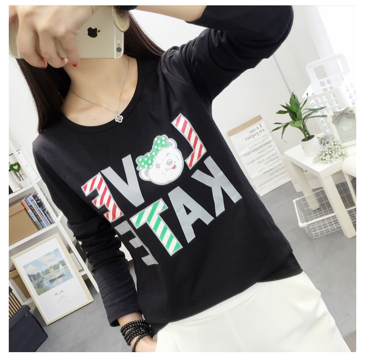 長袖t恤女春款韓國大碼寬松學生韓版上衣2019新款字母卡通打底衫