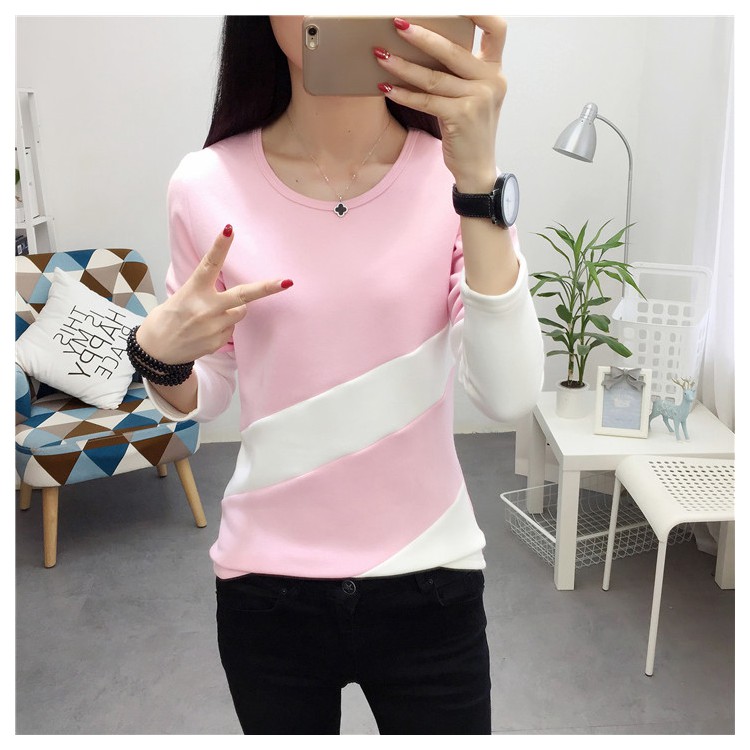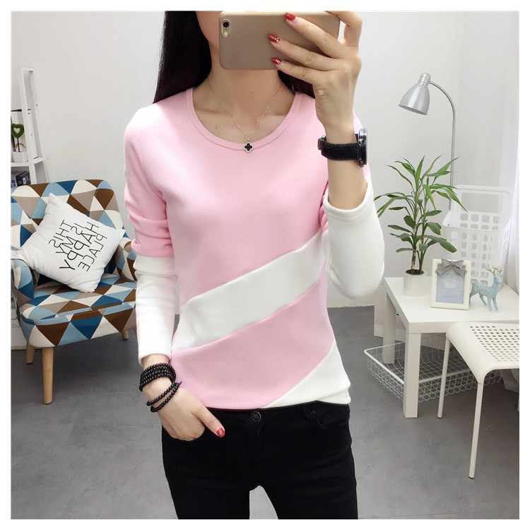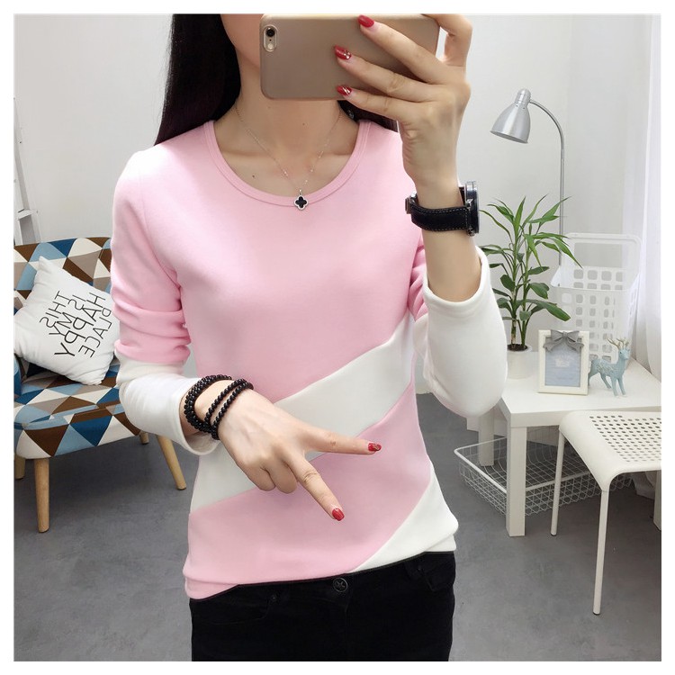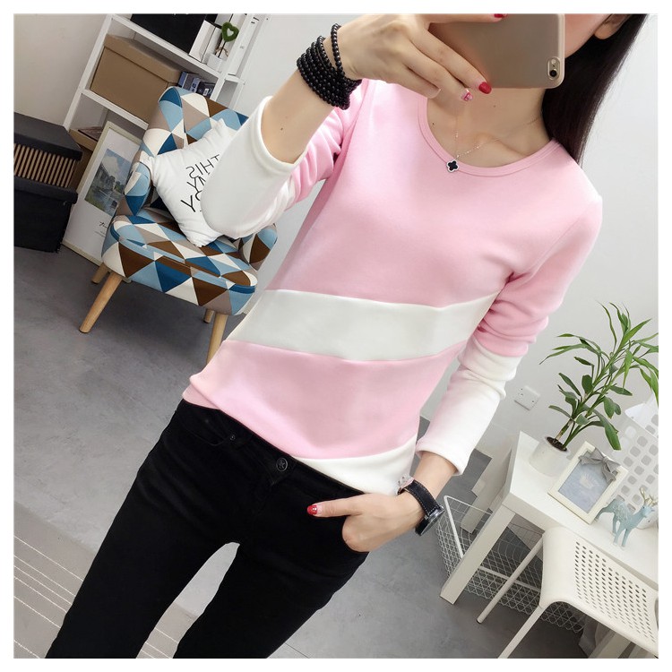 2019新款t恤女裝韓版修身百搭修身緊身上衣加絨加厚長袖打底衫女