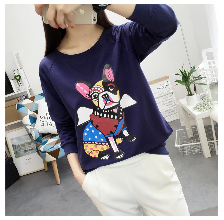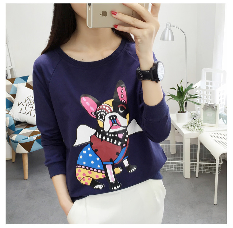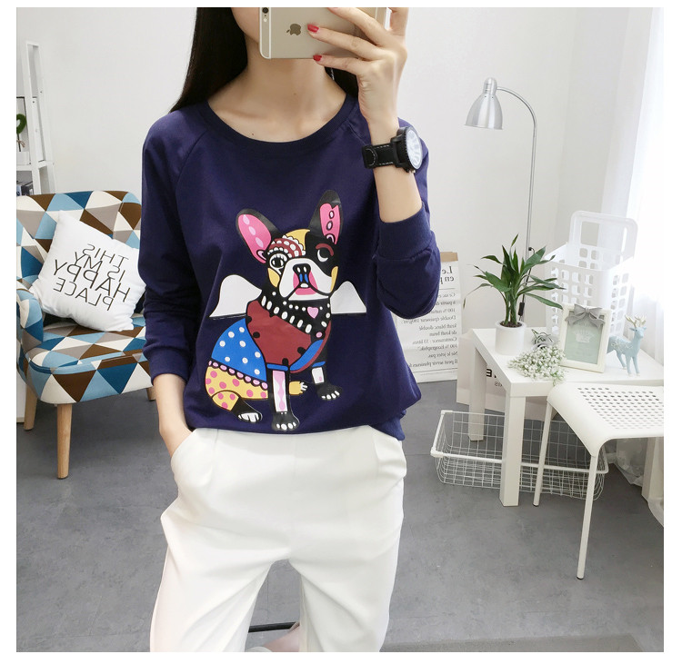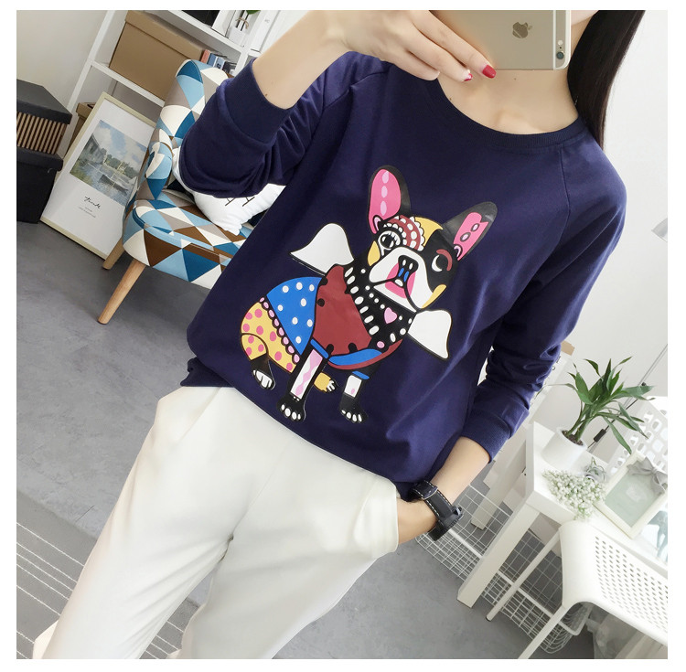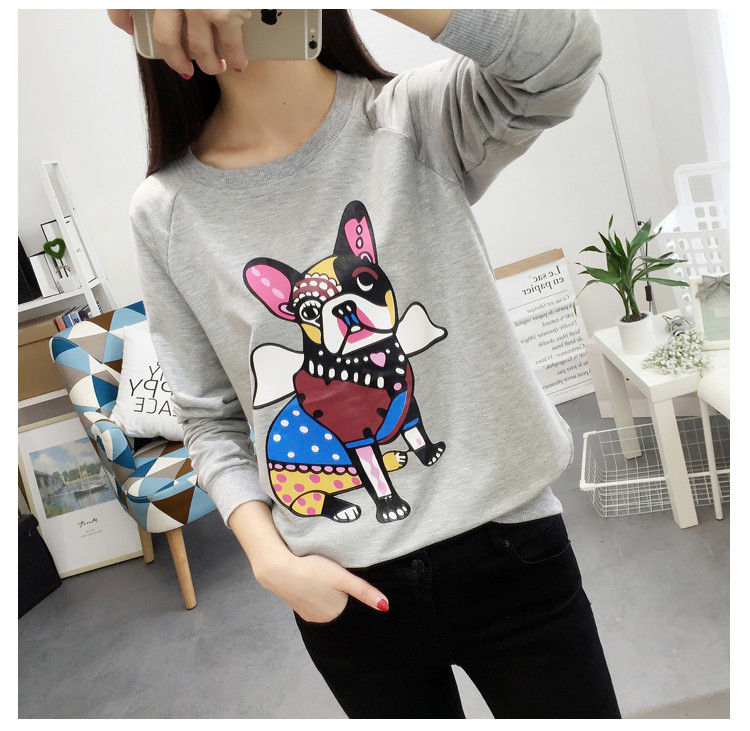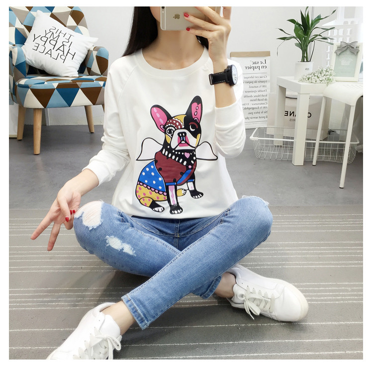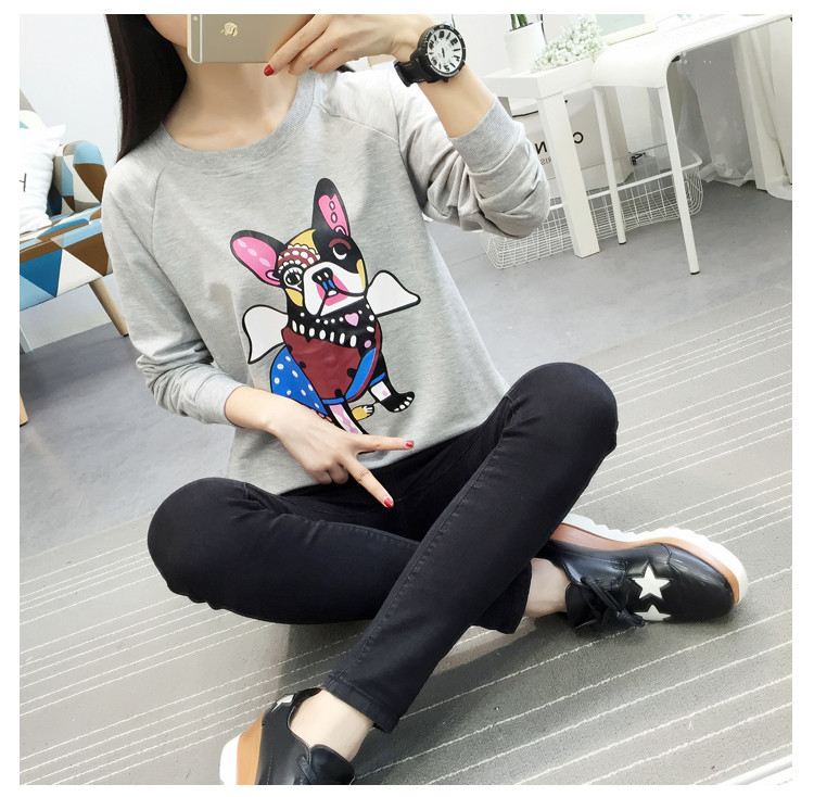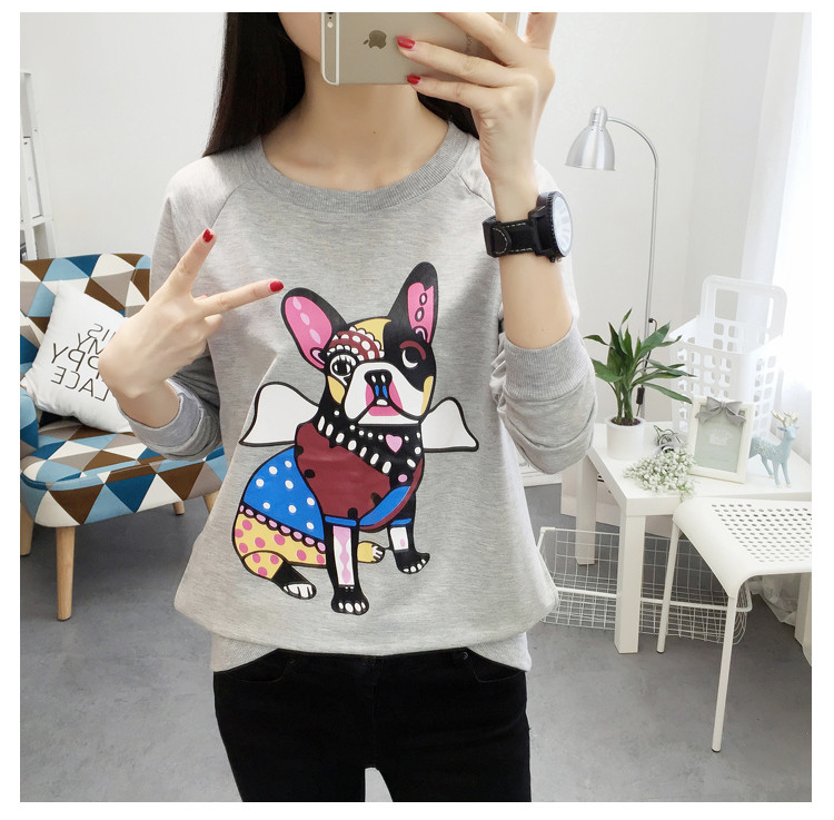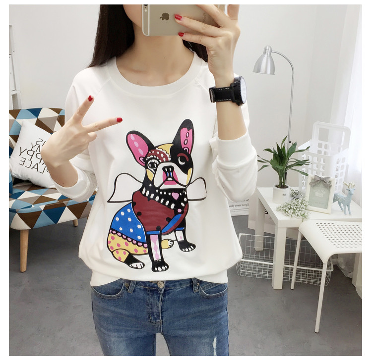 2018新款秋天寬松圓領套頭衛衣女韓版學生圖案上衣秋冬薄款長袖