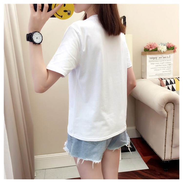 2019新款純棉t恤女短袖夏裝韓版寬松大碼學生韓范半袖白色上衣服