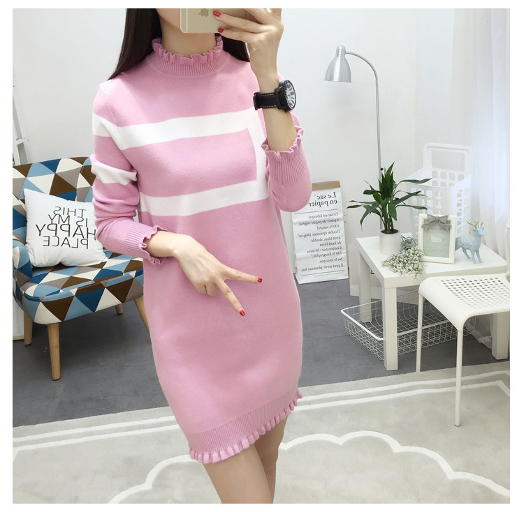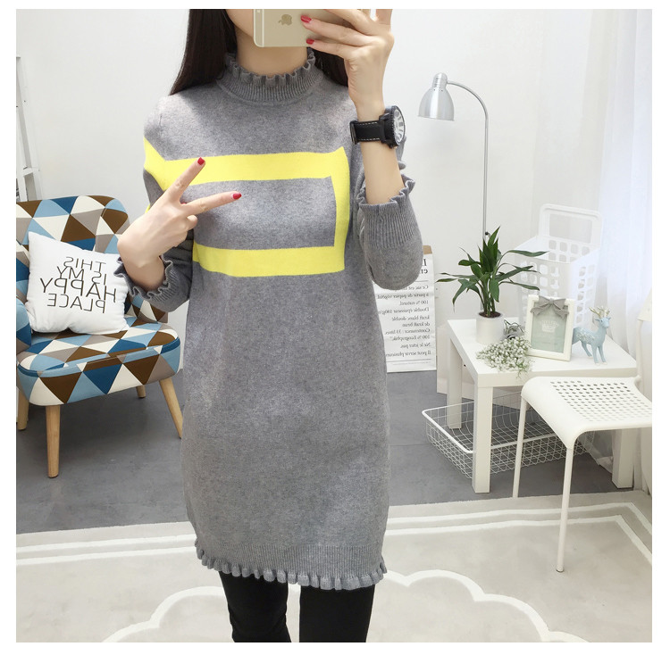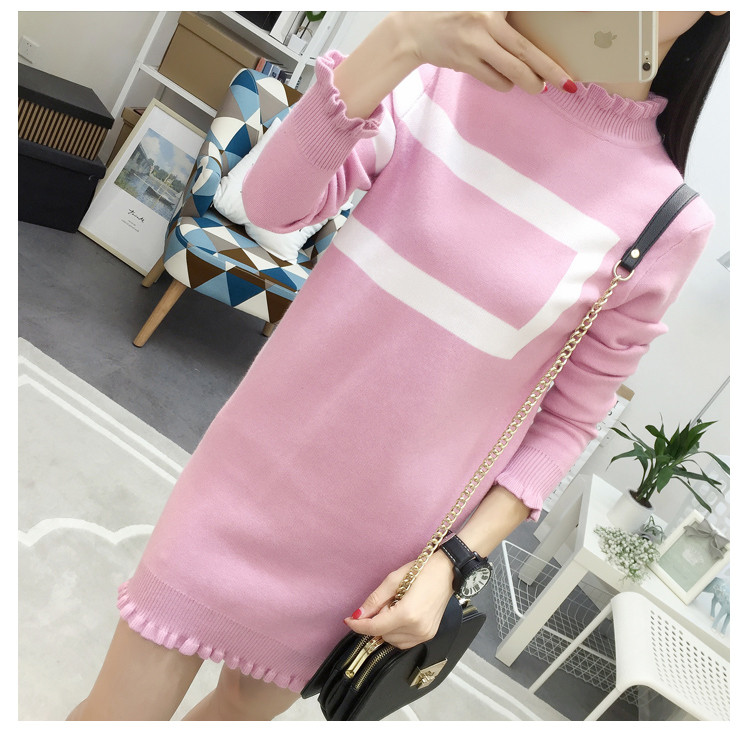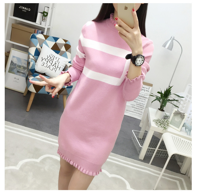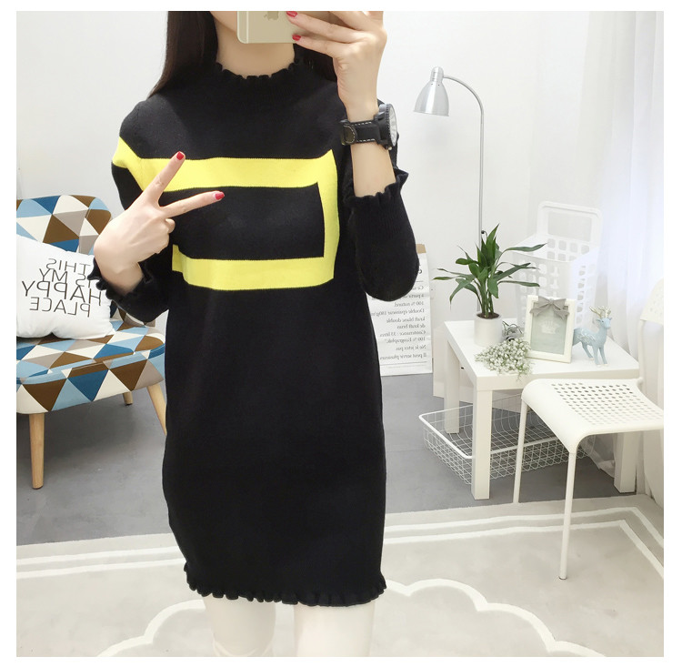 針織衫連衣裙長袖女裝春裝2019新款潮中長款修身打底衫毛衣女裙