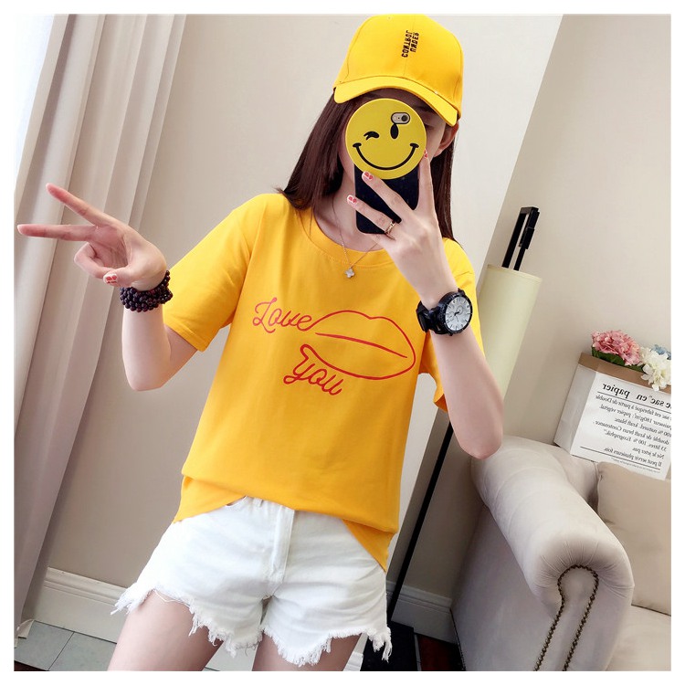 2019新款夏裝韓版百搭寬松學生t恤女短袖韓范半袖純棉字母上衣服