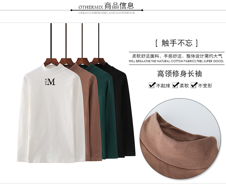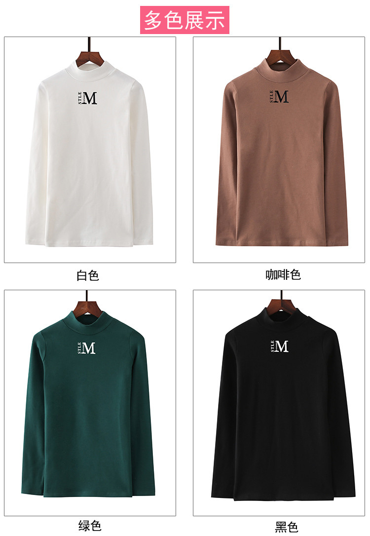 2019新款純棉保暖韓版百搭上衣秋冬高領打底衫女長袖t恤加厚修身