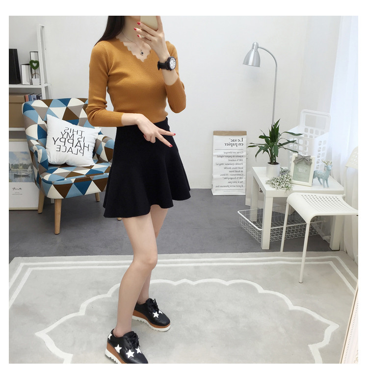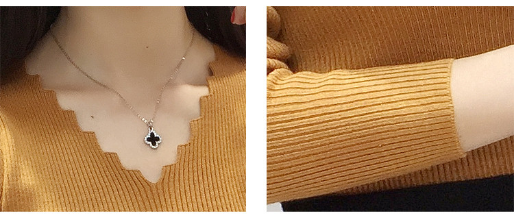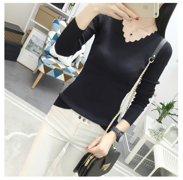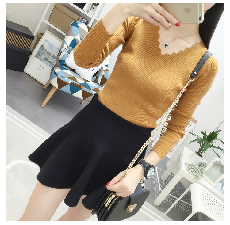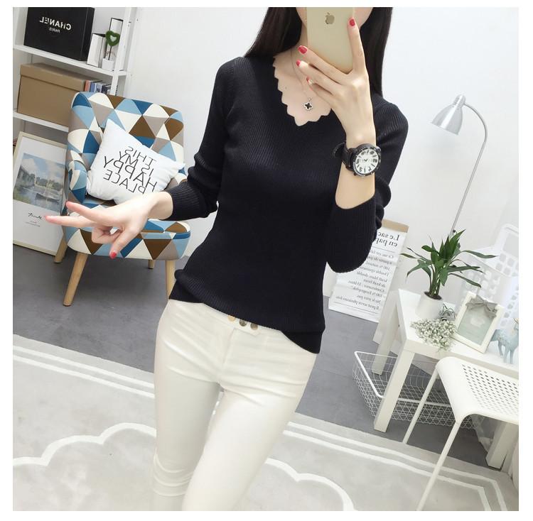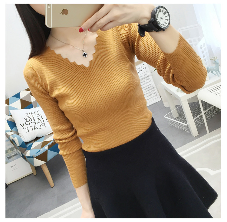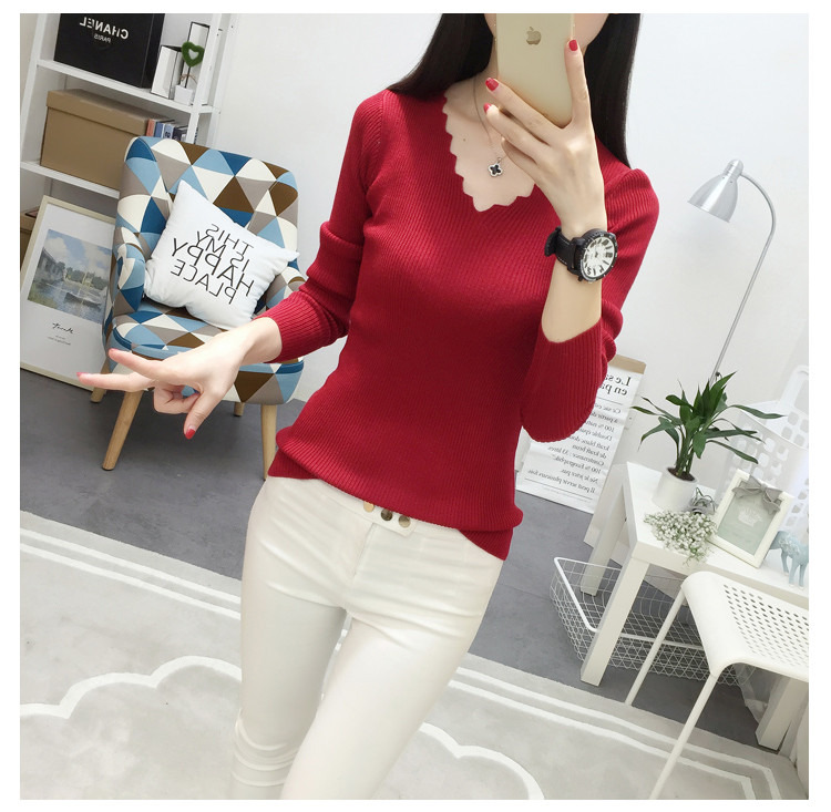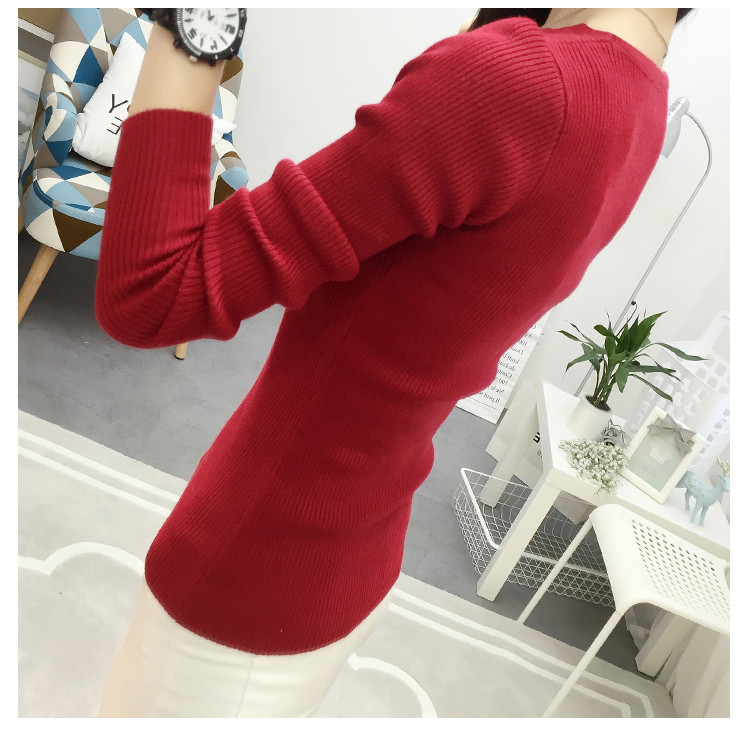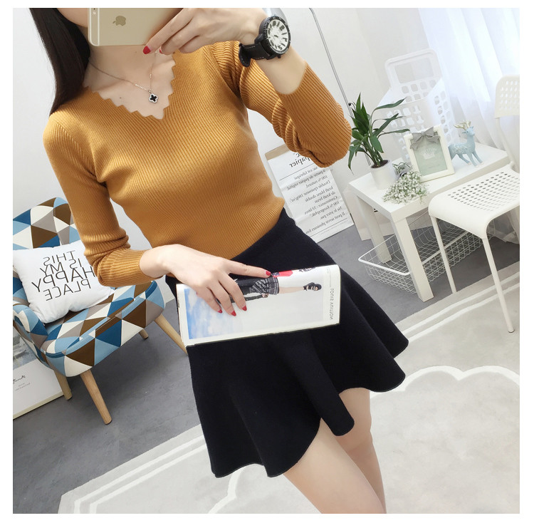 2019春季新款修身長袖V領打底針織衫韓版百搭套頭冬季毛衣女上衣