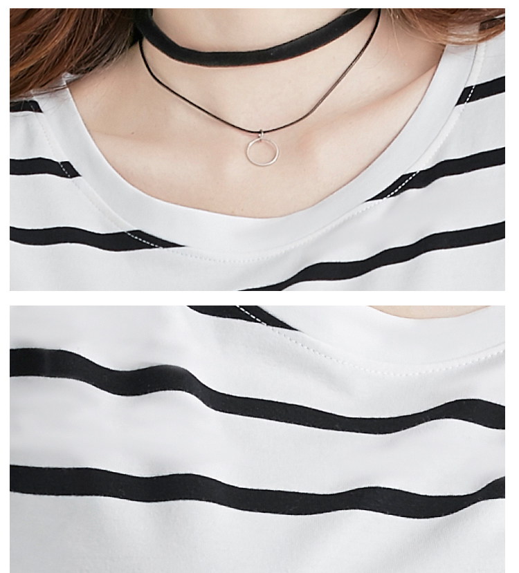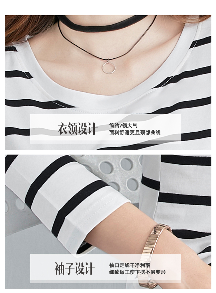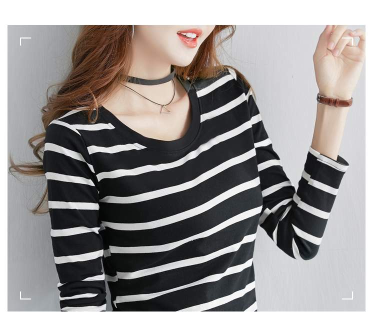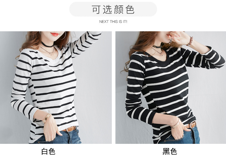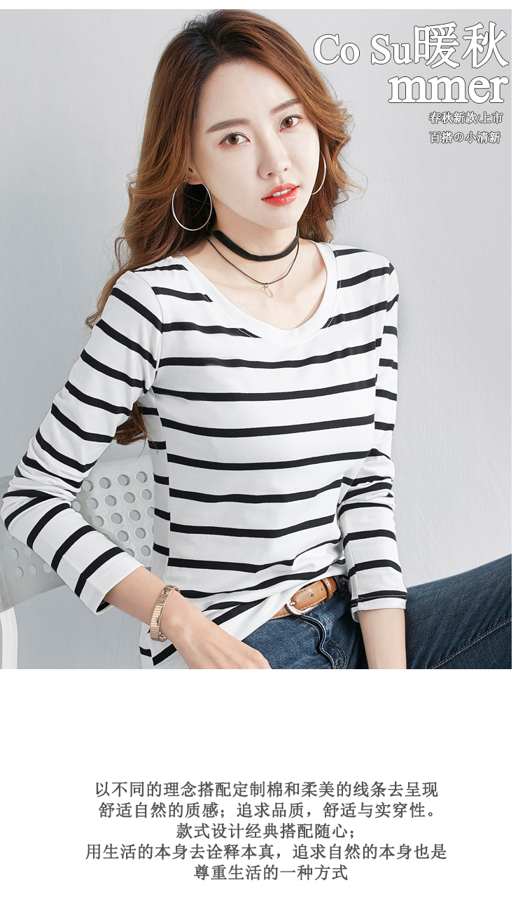 2019秋新款修身純棉上衣女韓版百搭長袖t恤圓領條紋時尚打底衫女