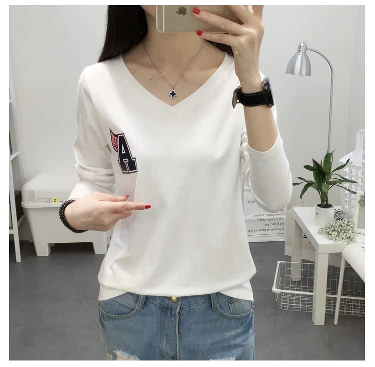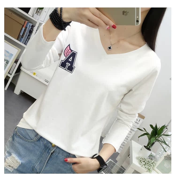 長袖t恤女寬松大碼韓版百搭顯瘦學生V領上衣秋裝秋衣外穿打底衫潮