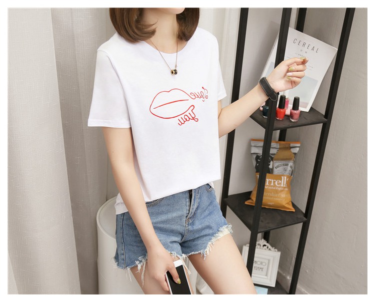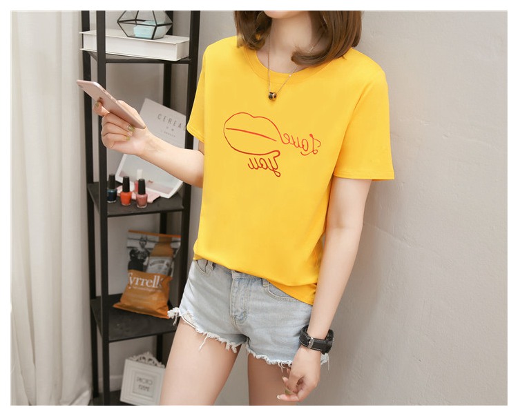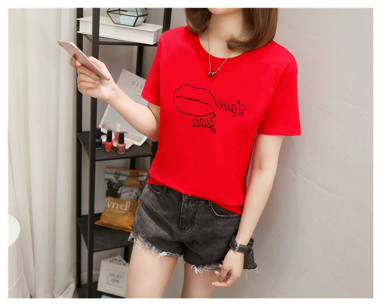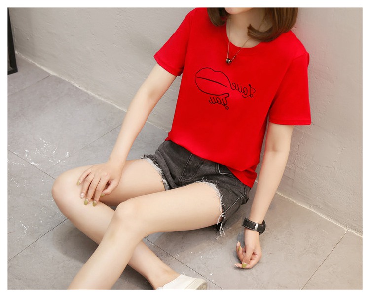 2019新款純棉t恤女短袖寬松韓版百搭韓范學生紅色字母半袖上衣