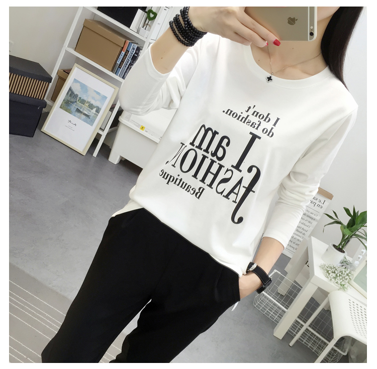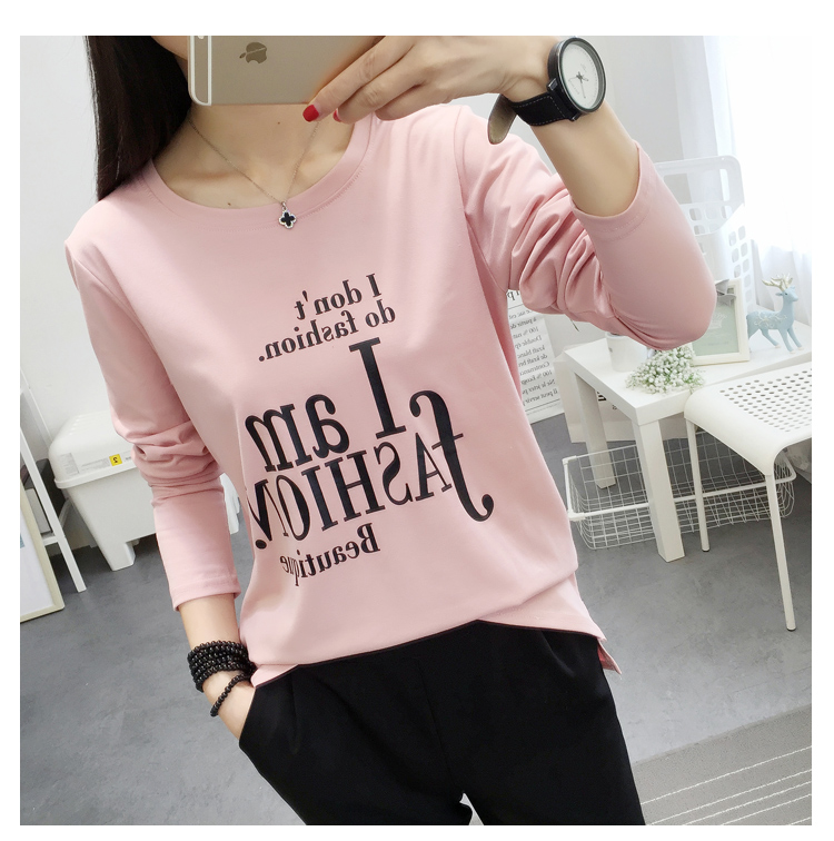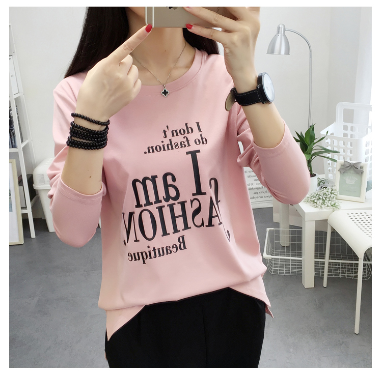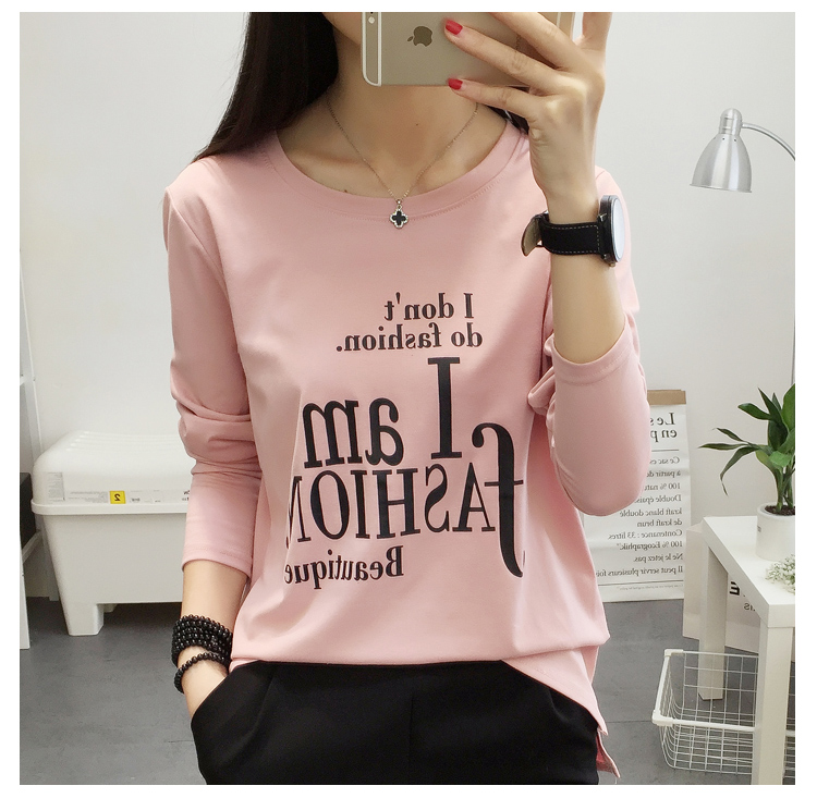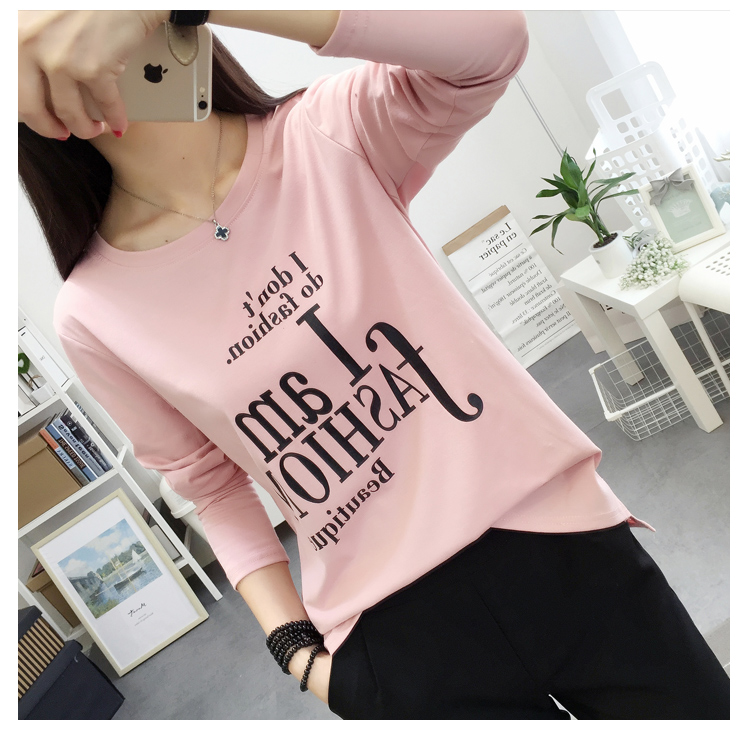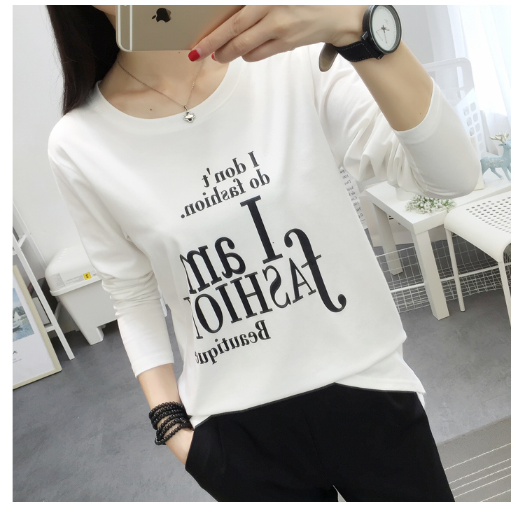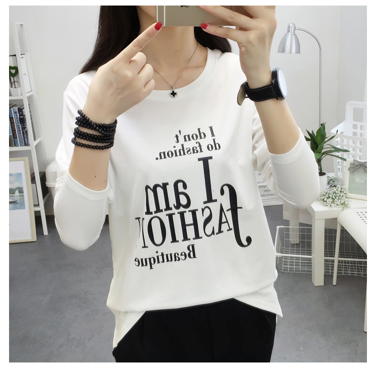 [2]t恤女長袖寬松學生韓版百搭2019新款春裝字母大碼打底衫春季上衣