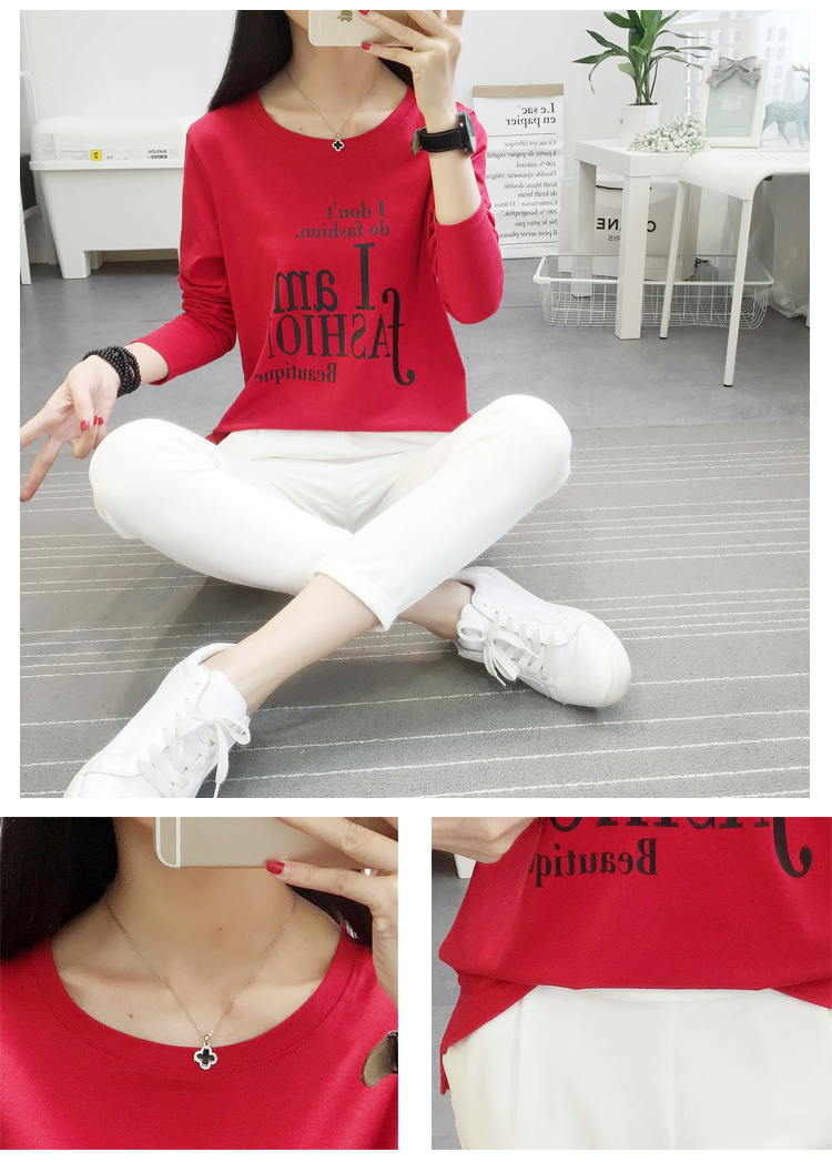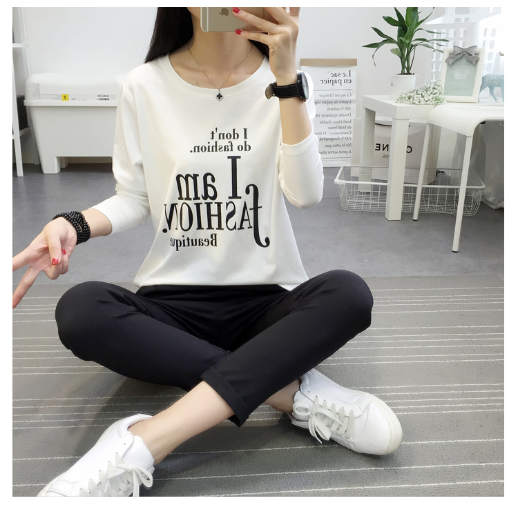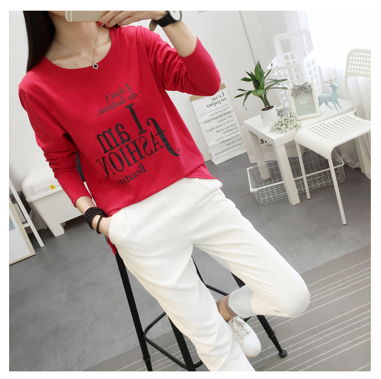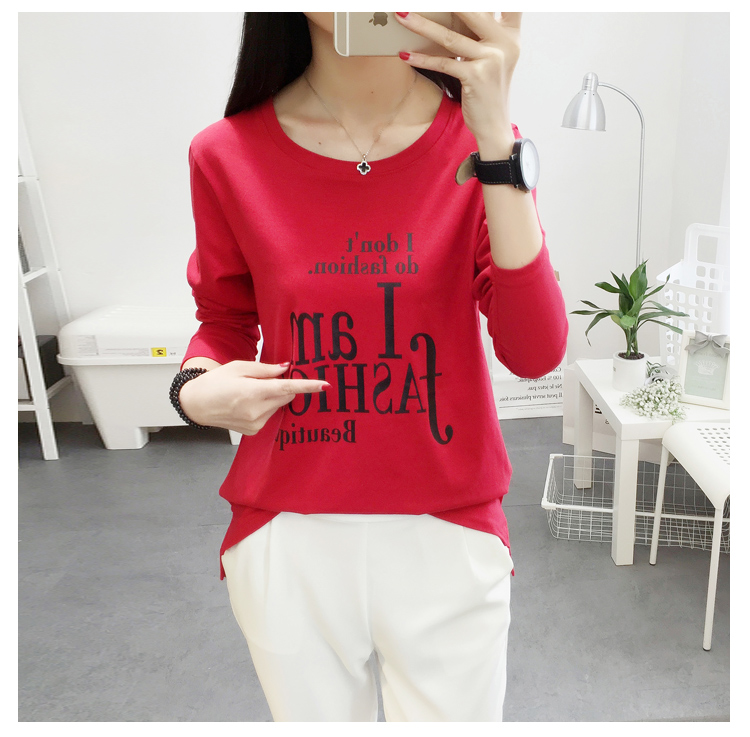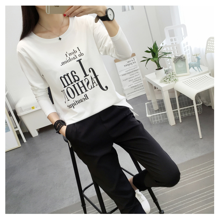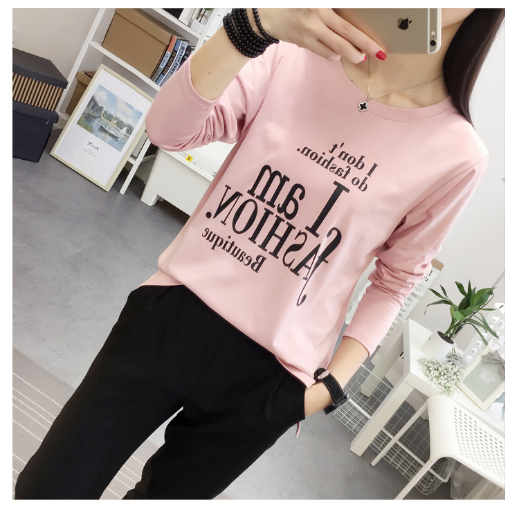[2]t恤女長袖寬松學生韓版百搭2019新款春裝字母大碼打底衫春季上衣