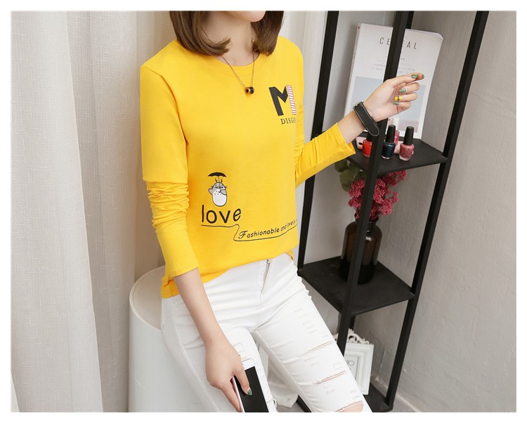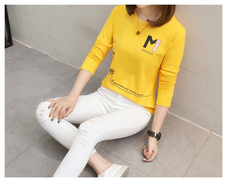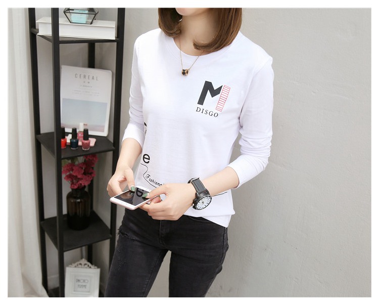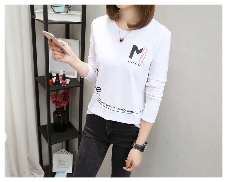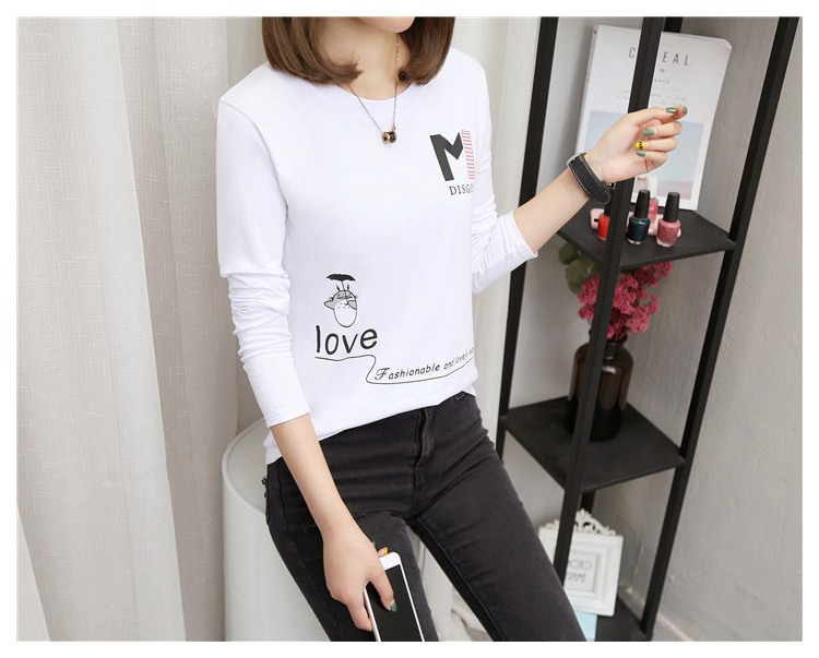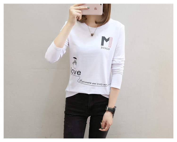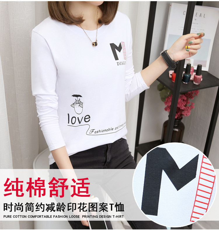 2019新款秋裝白色寬松學生韓版百搭潮長袖t恤女韓國打底衫上衣